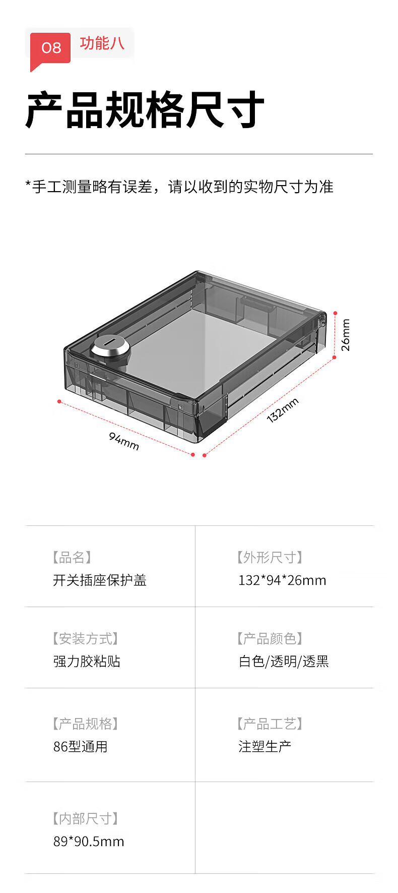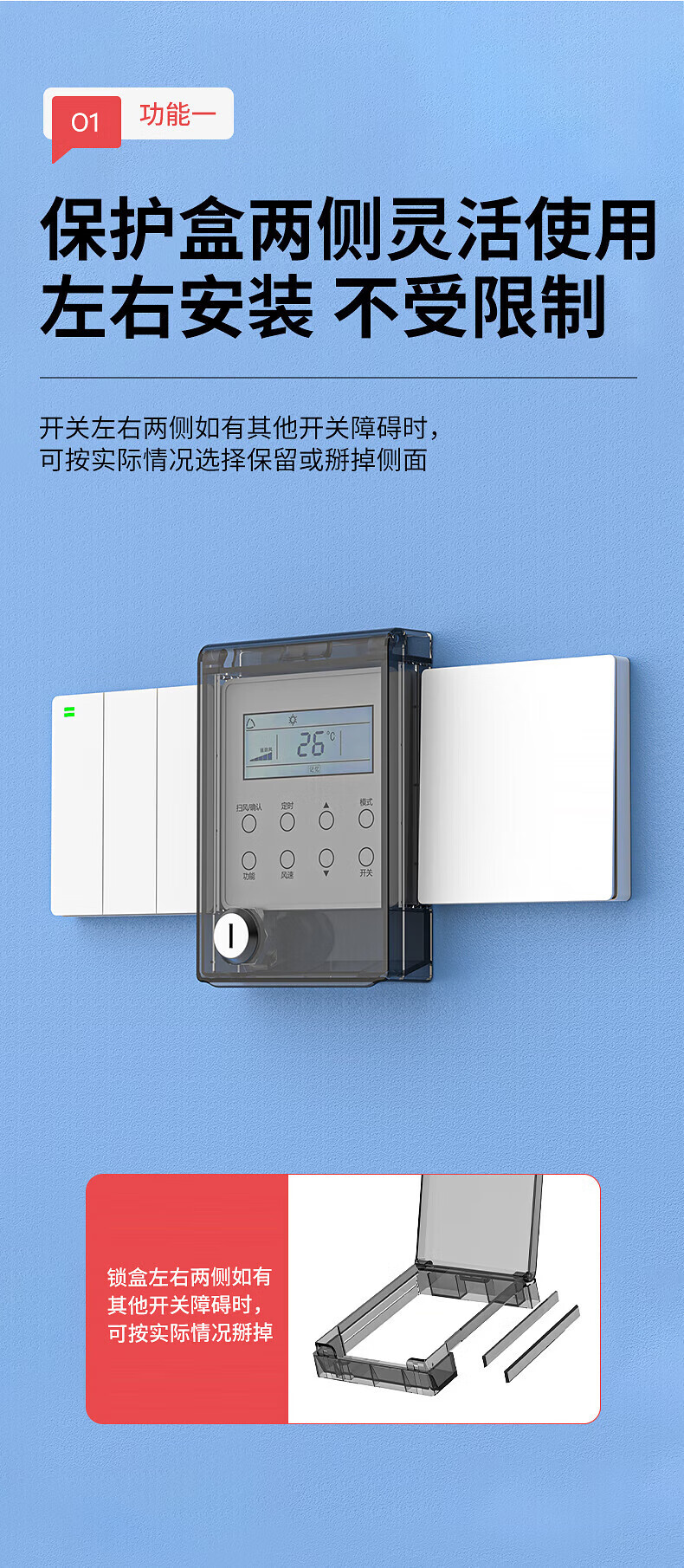 国际电工中央空调开关保护盒插座面板保护盖插座保护套防误触粘贴式防水盒 黑透-自带锁粘贴防水盒