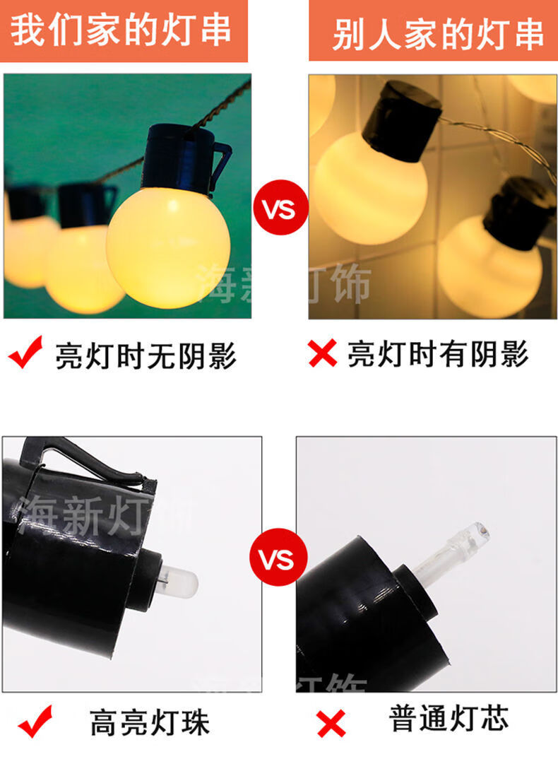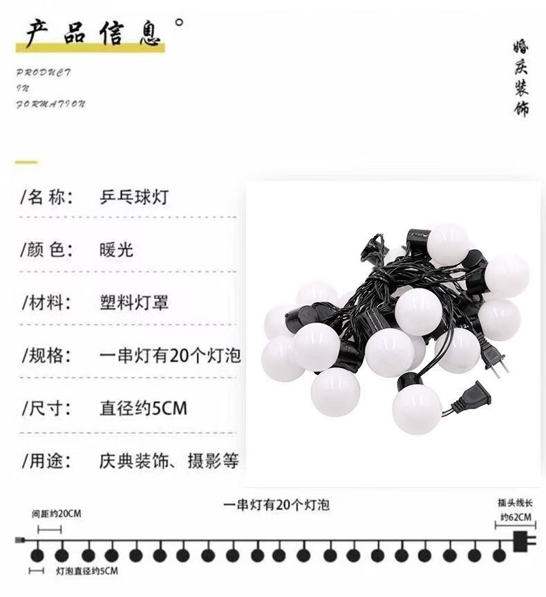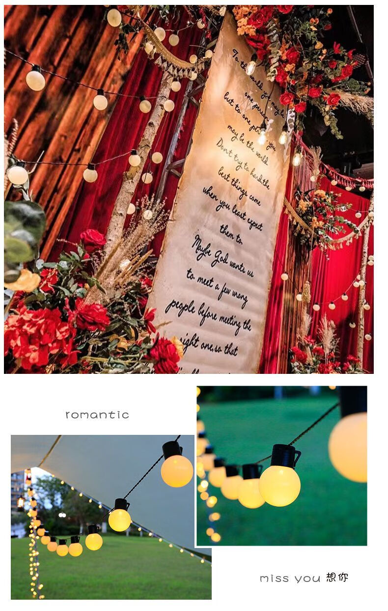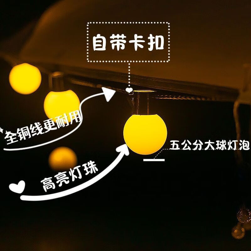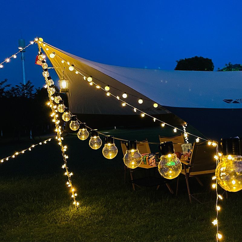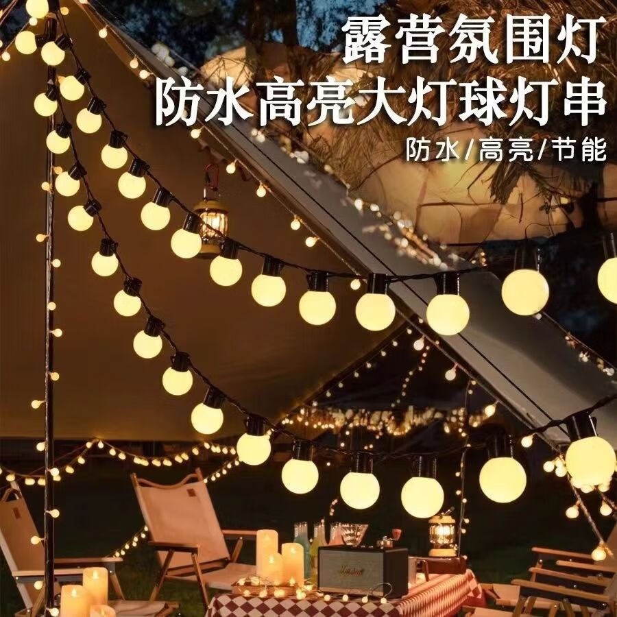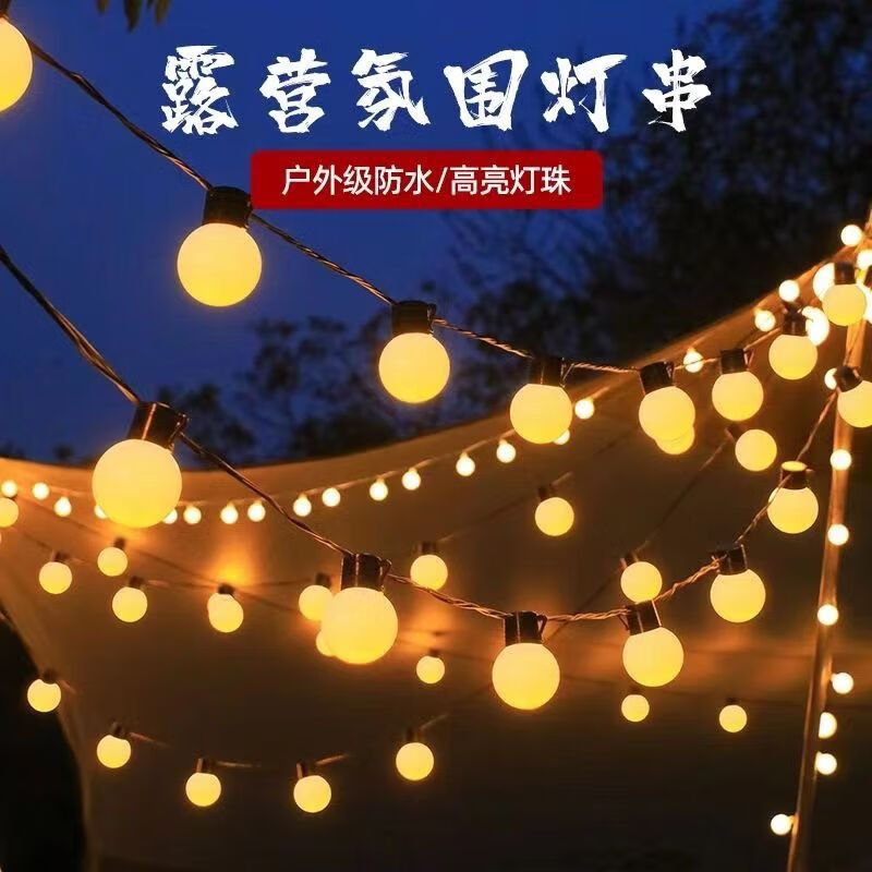 OYKTN户外露营氛围灯大圆球灯串led彩灯带天幕帐篷装饰灯野营太阳能 暖白雾面球 5米20灯插电可连接