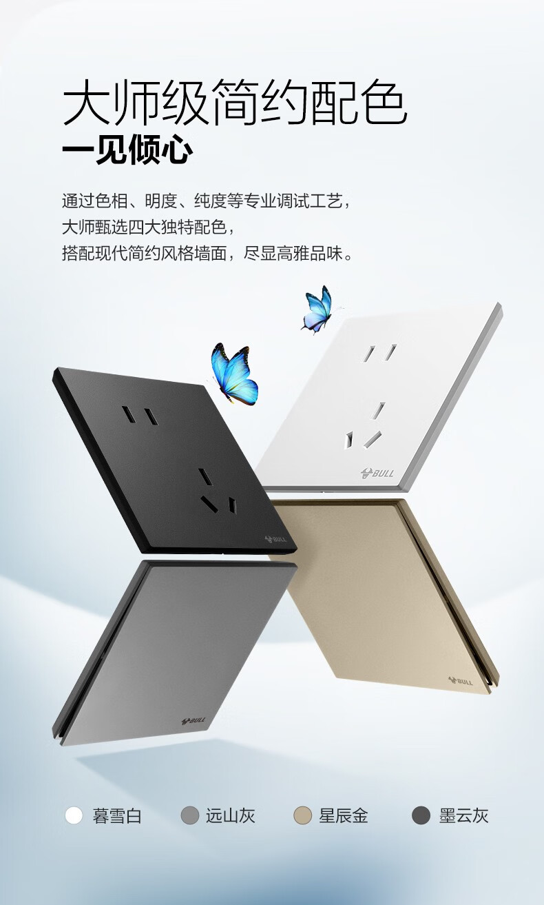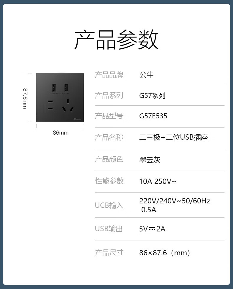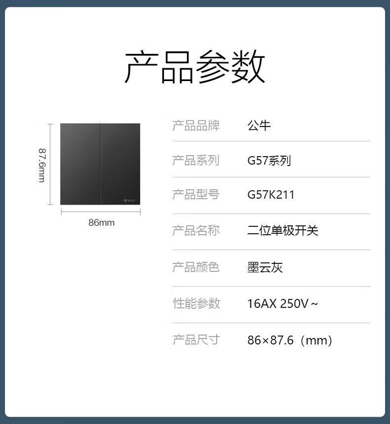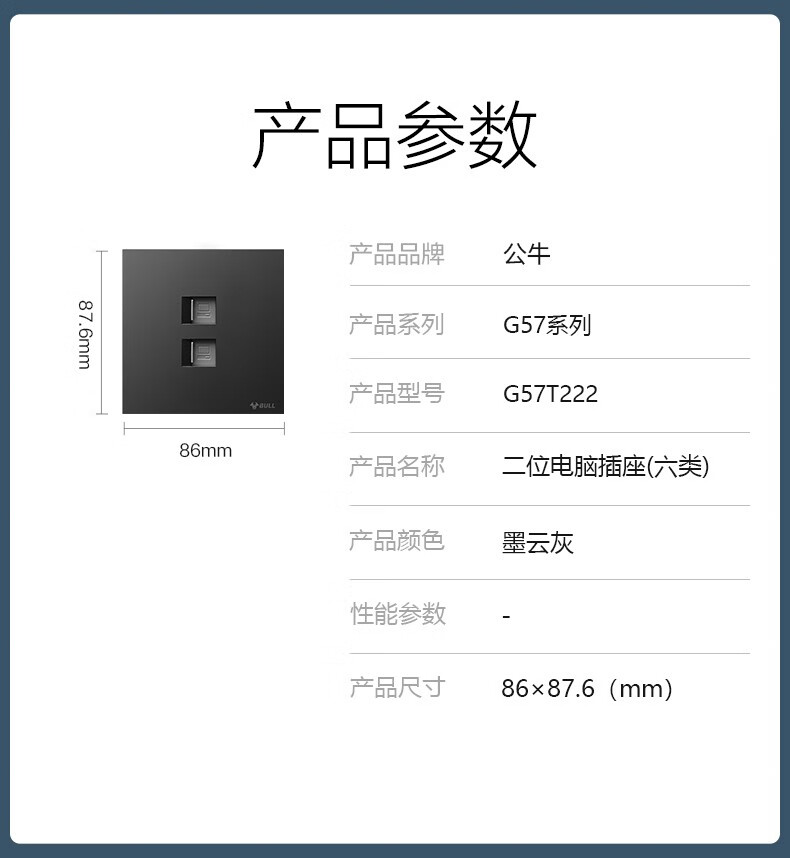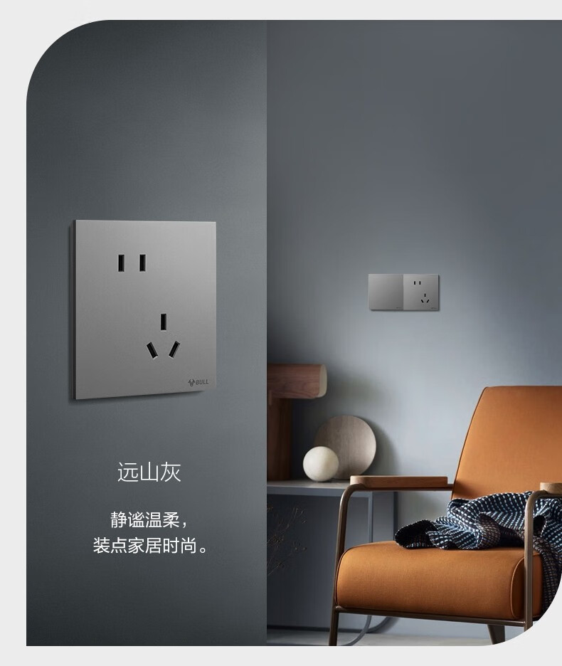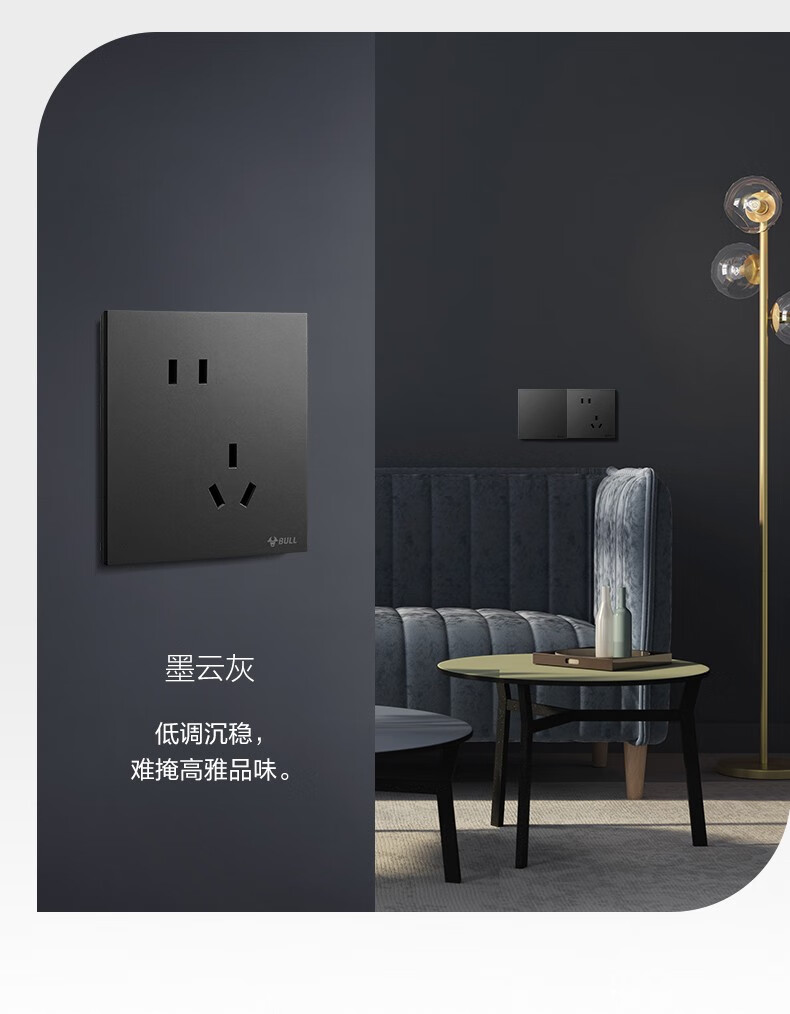 公牛(BULL)G57墨云灰色带开关插座 86型蝶翼超薄墙壁暗装面板电源家用奶油风 电视插座(闭路TV) 官方室内装修装饰专用全屋套餐