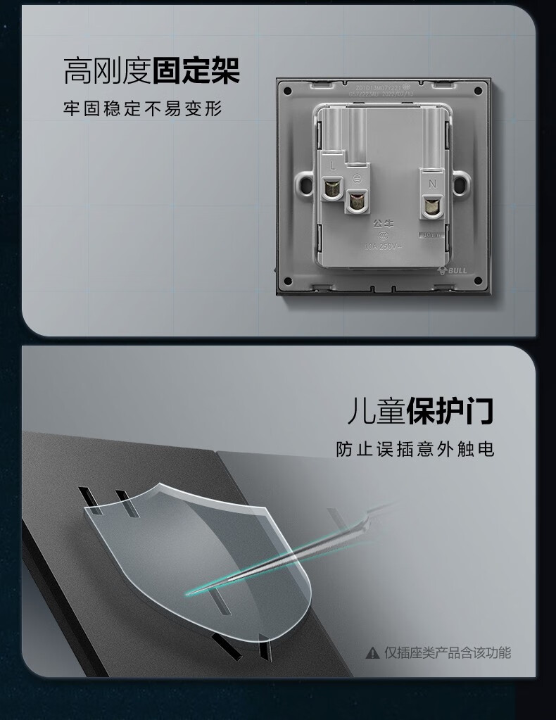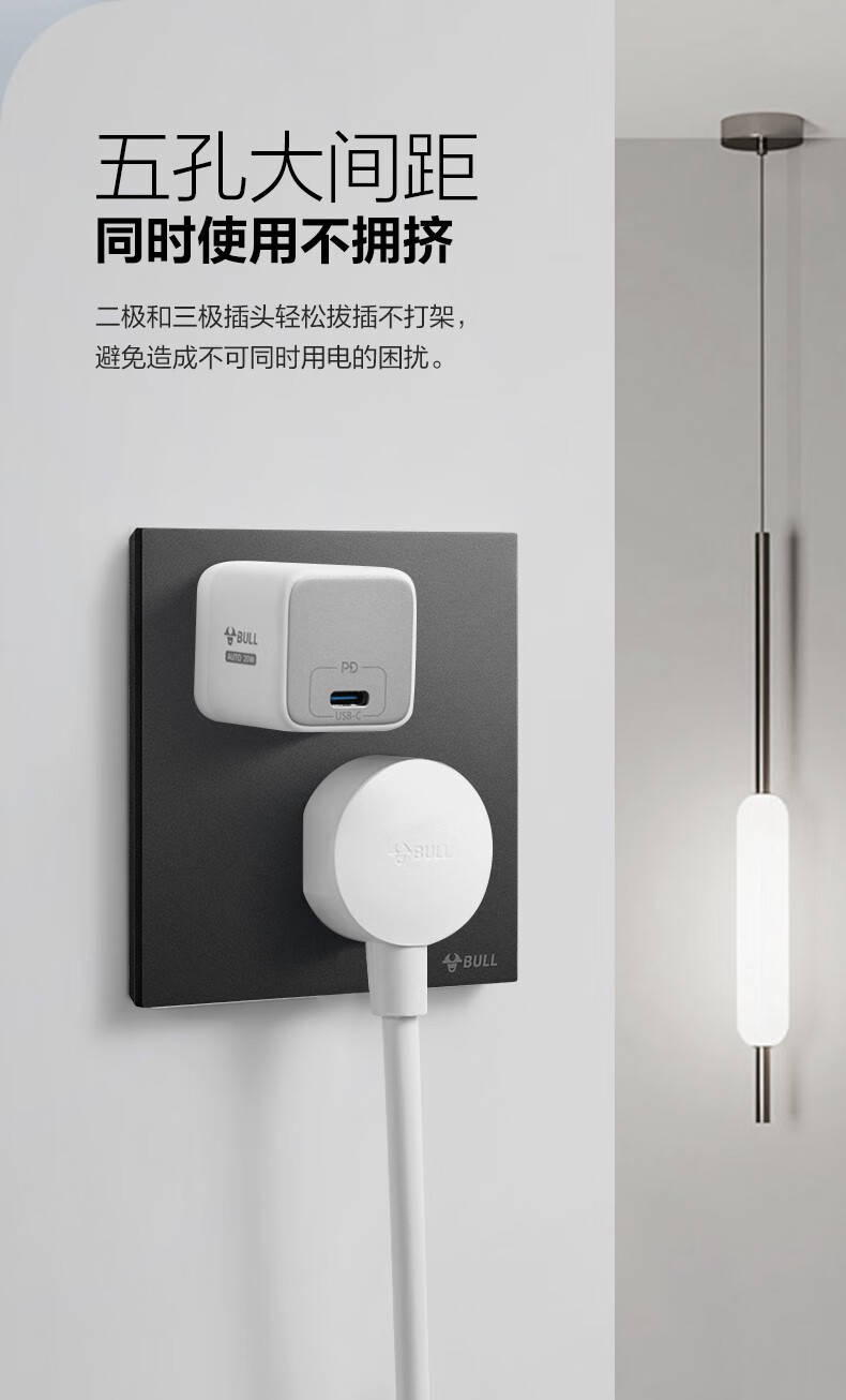 公牛(BULL)热水器插座防水防漏电16a一开五孔双控大功率空调专用热水器灯座 五孔插座
