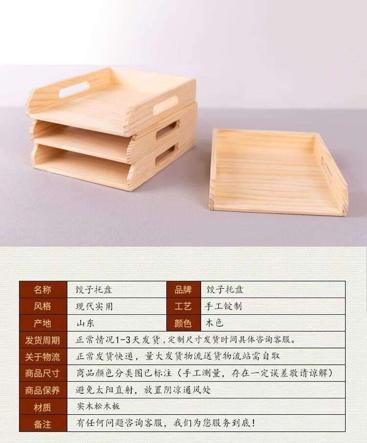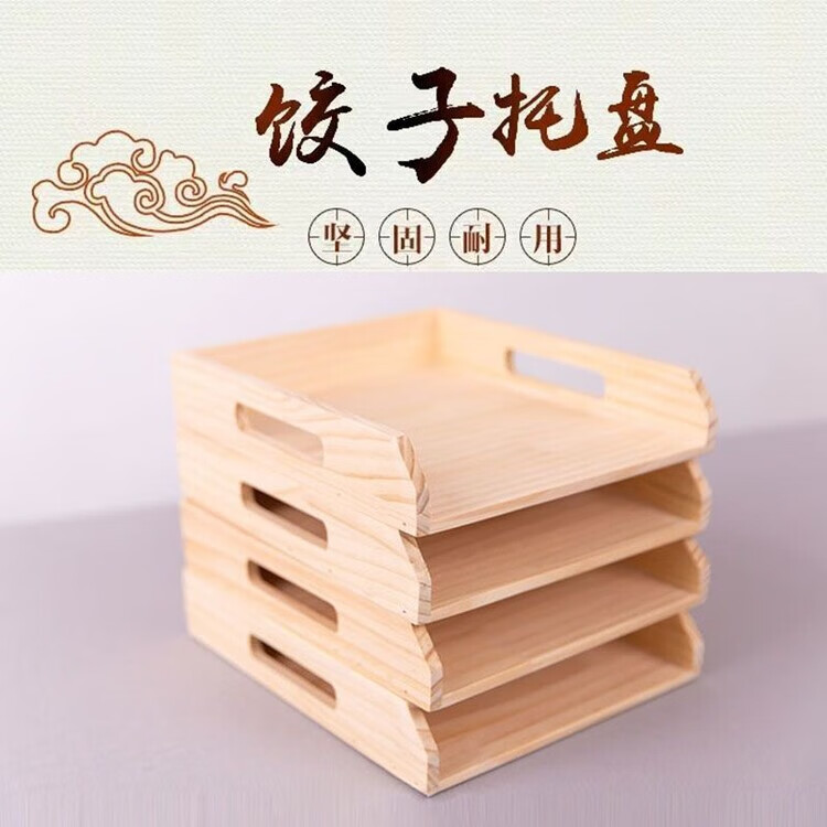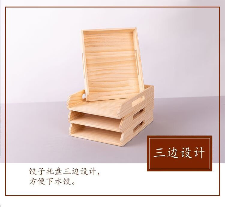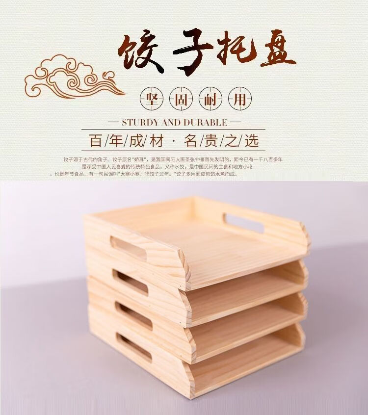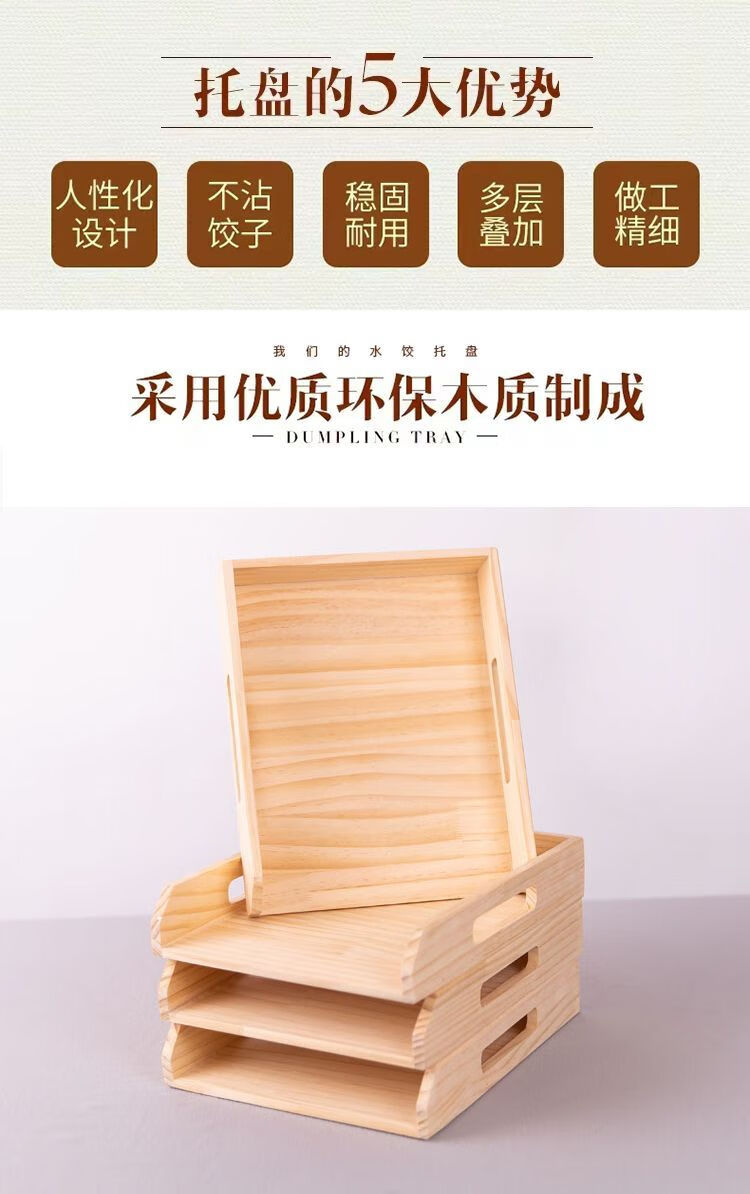 简漾松木水饺托盘家用多层可叠放饺子混沌收纳盒冰箱速冻盒盖帘饺子帘 自助店20*15一盘放6个饺子【一套2个】 默认