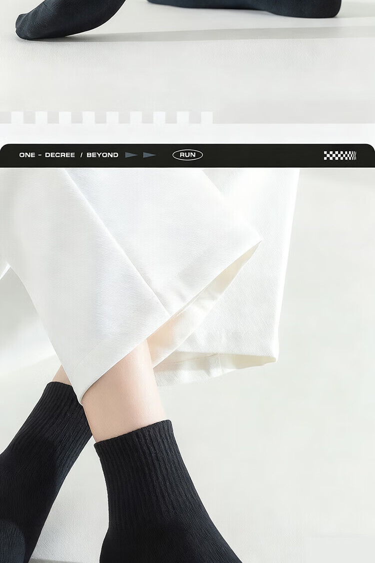 雅鹿袜子女中筒袜日系学院风黑白撞色条纹袜口长筒袜秋冬休闲百搭袜子 颜色混搭 5双 均码