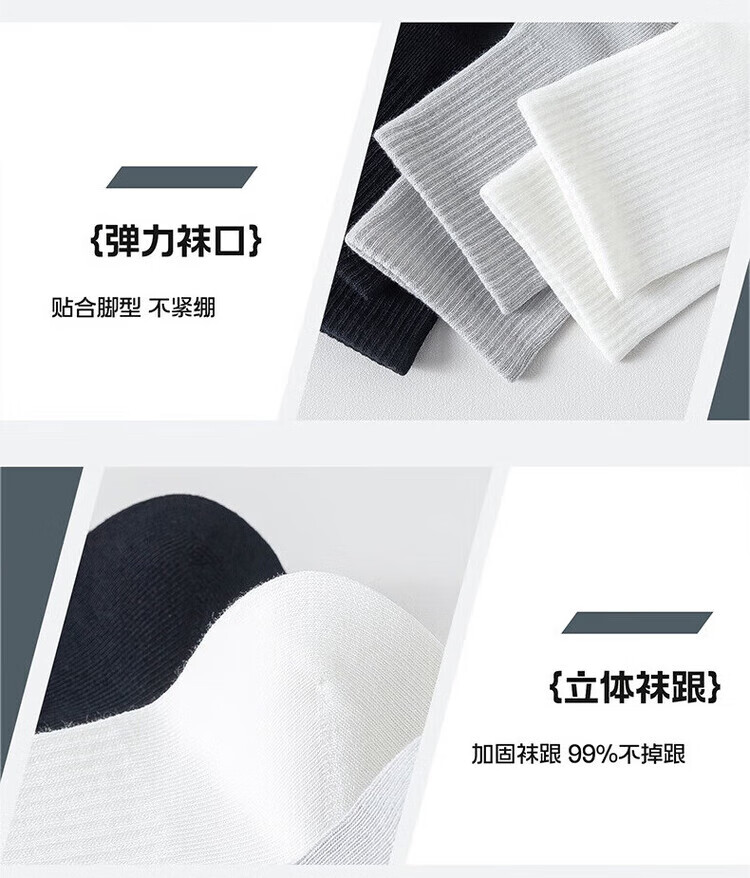 雅鹿潮流男士袜子四季款短袜低帮浅口防臭吸汗运动船袜舒适透气高弹袜 五色各十【50双】 均码 雅鹿 10A抑菌/高弹透气/抗起球