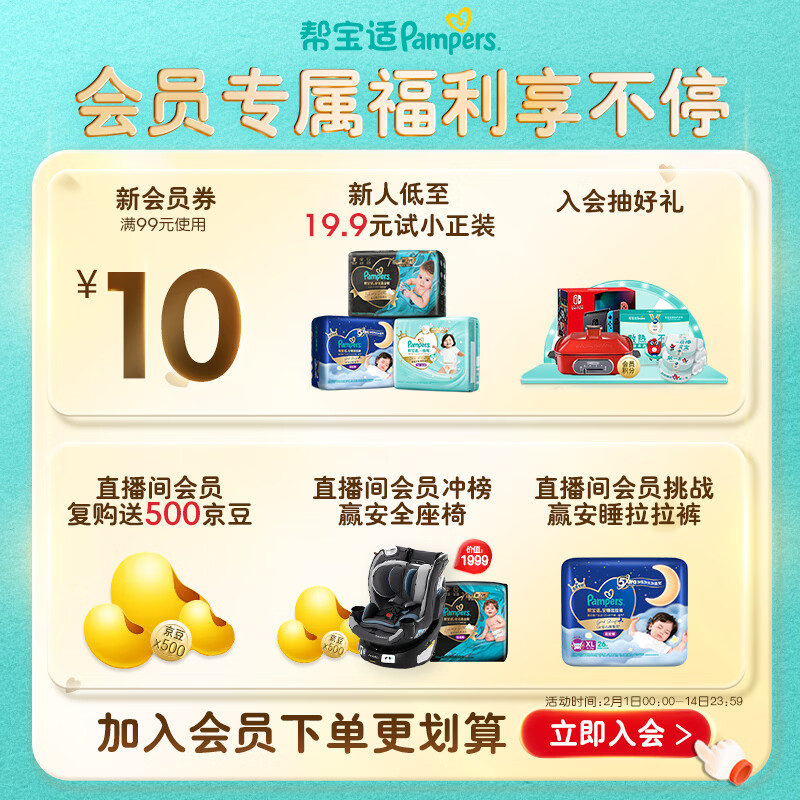 帮宝适护臀级一级帮纸尿裤新生儿婴儿尿不湿添加类胎脂精华超薄透气XL50