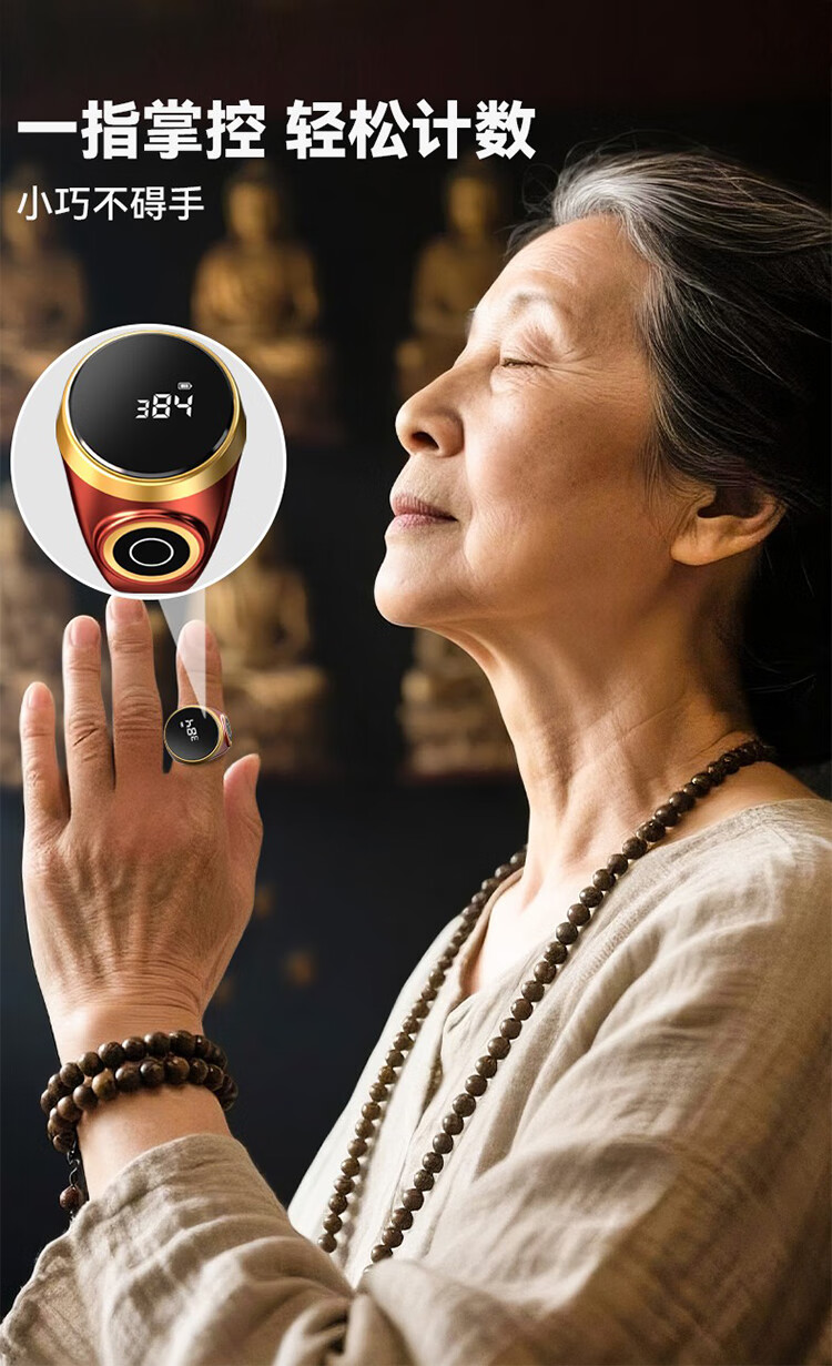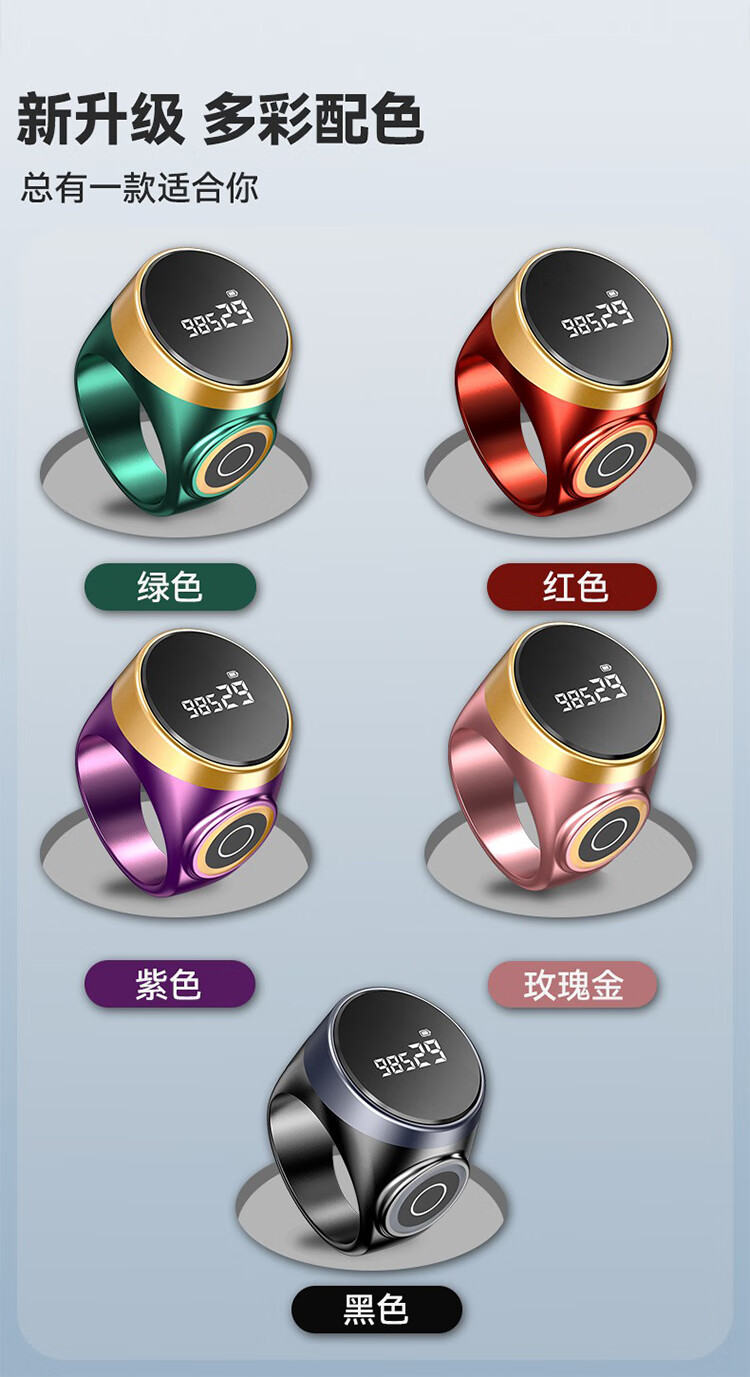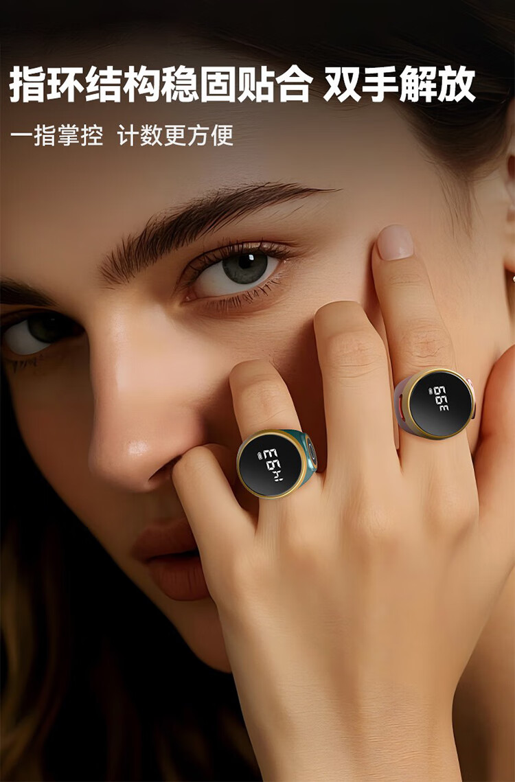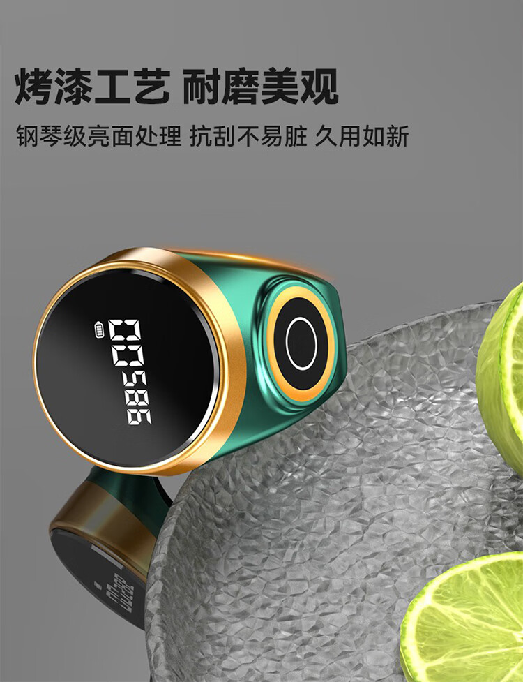 筏芯德国念数计数器新款触摸夜光屏手按戒指充电智能数显手动记数器 触摸款祖母绿