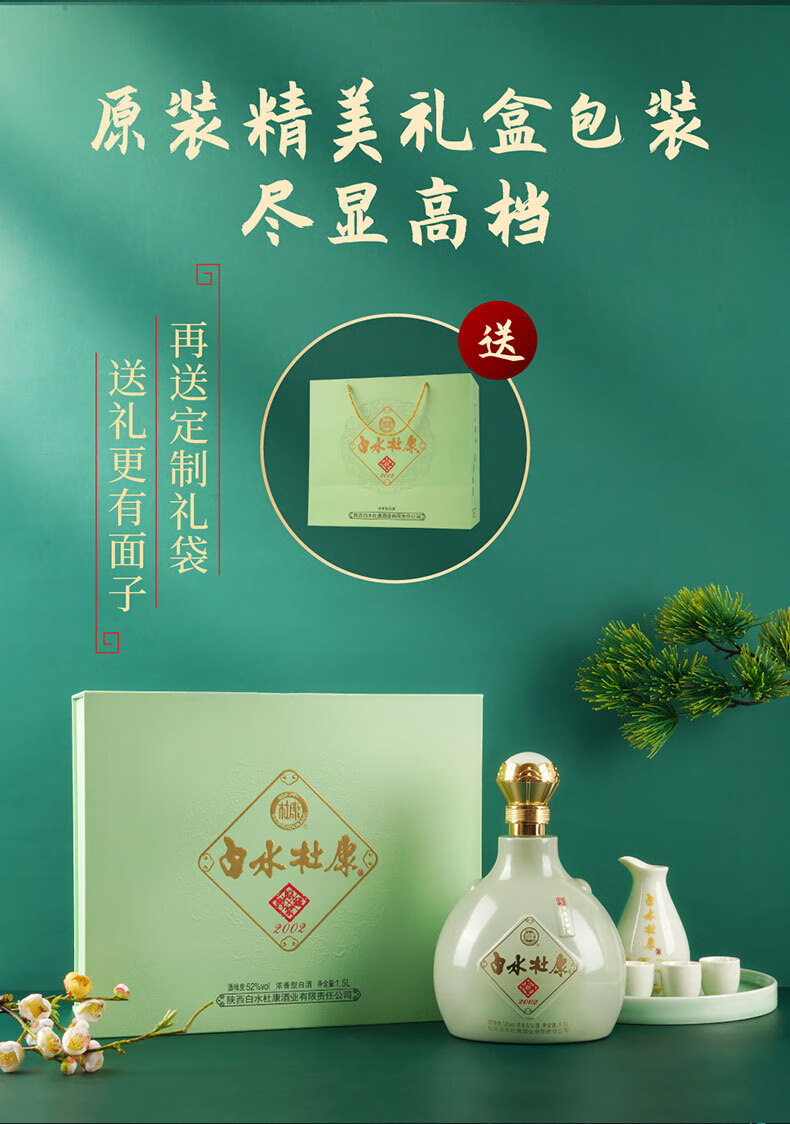 白水杜康窖藏原浆2002酒带酒具粮食礼盒装 52度 1.5L 1盒 浓香型