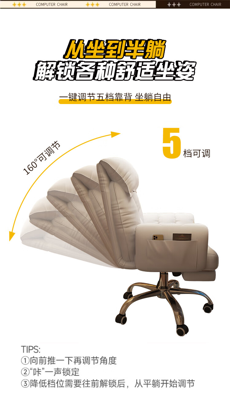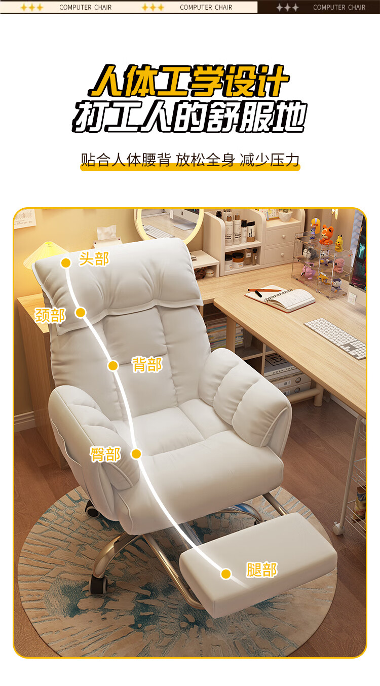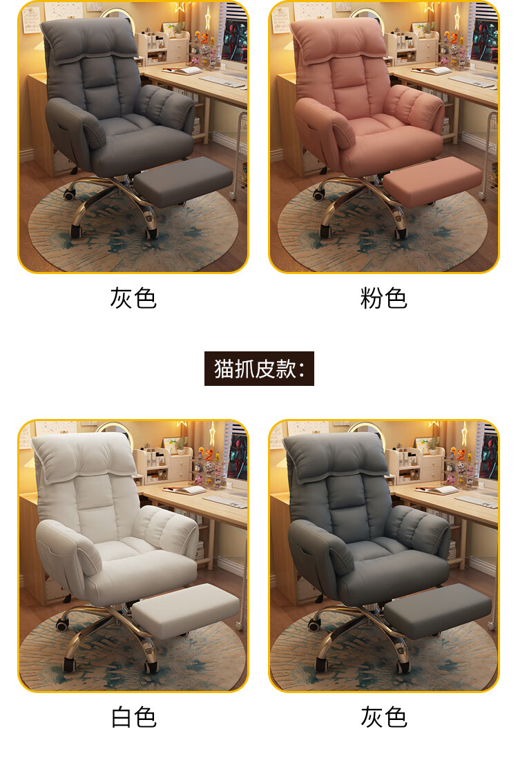 科幻猩电脑沙发椅电竞椅卧室舒适久坐单人躺椅懒人主播直播宿舍椅 【质感猫爪皮】-灰色+脚踏【靠背五档调节】