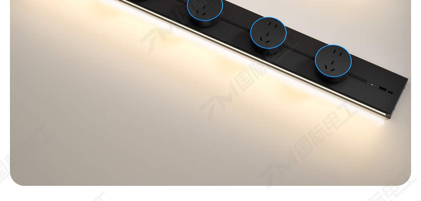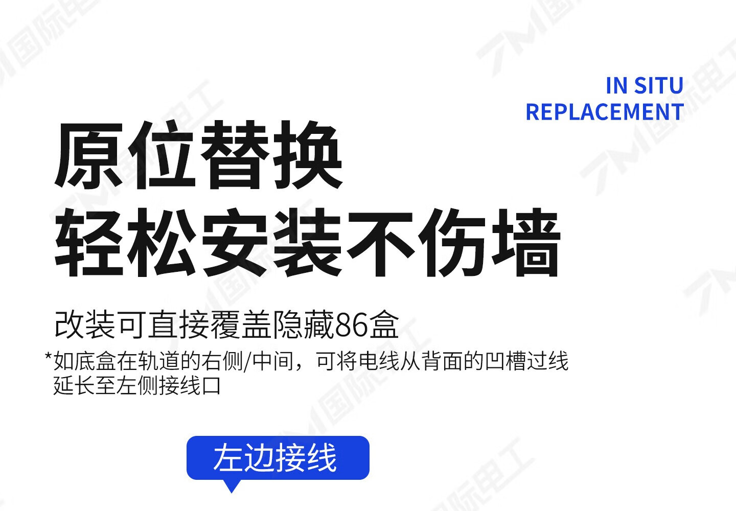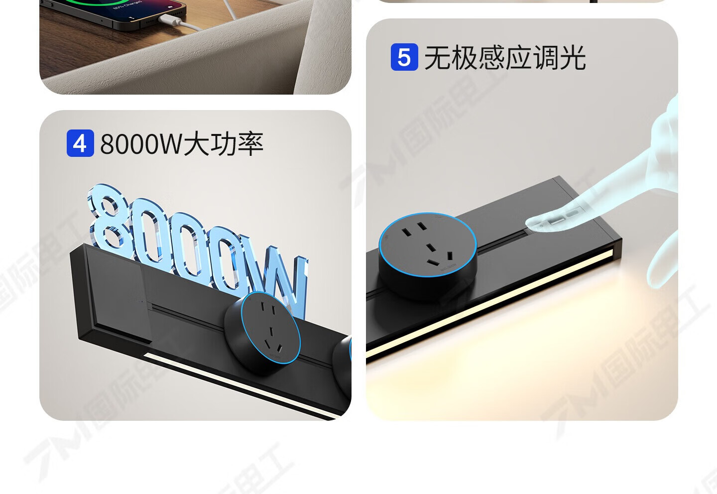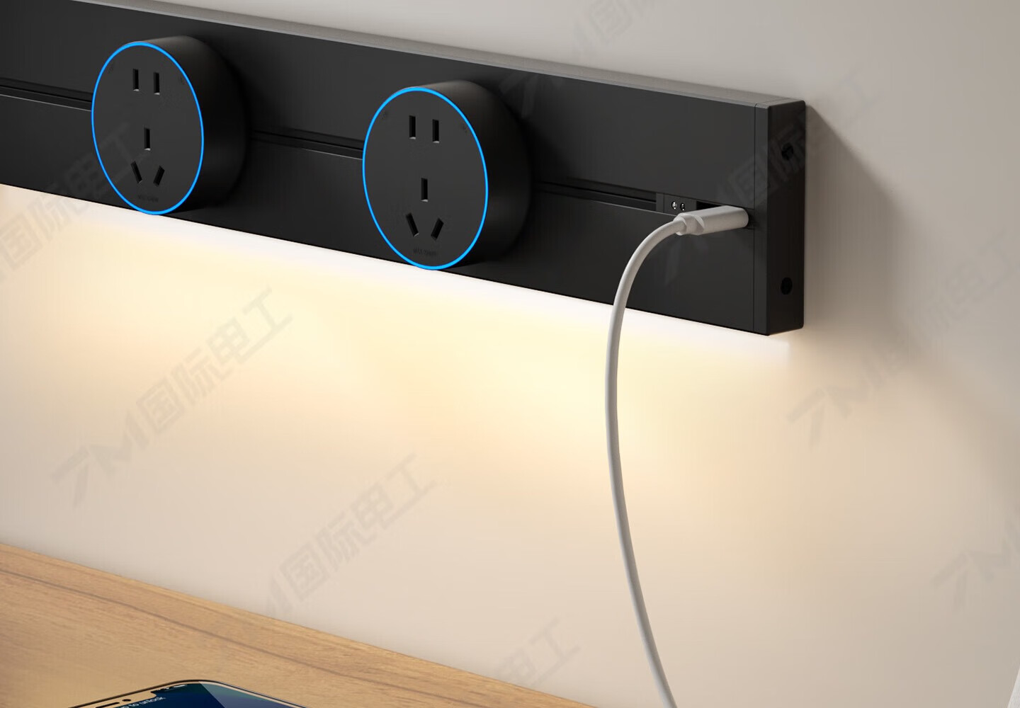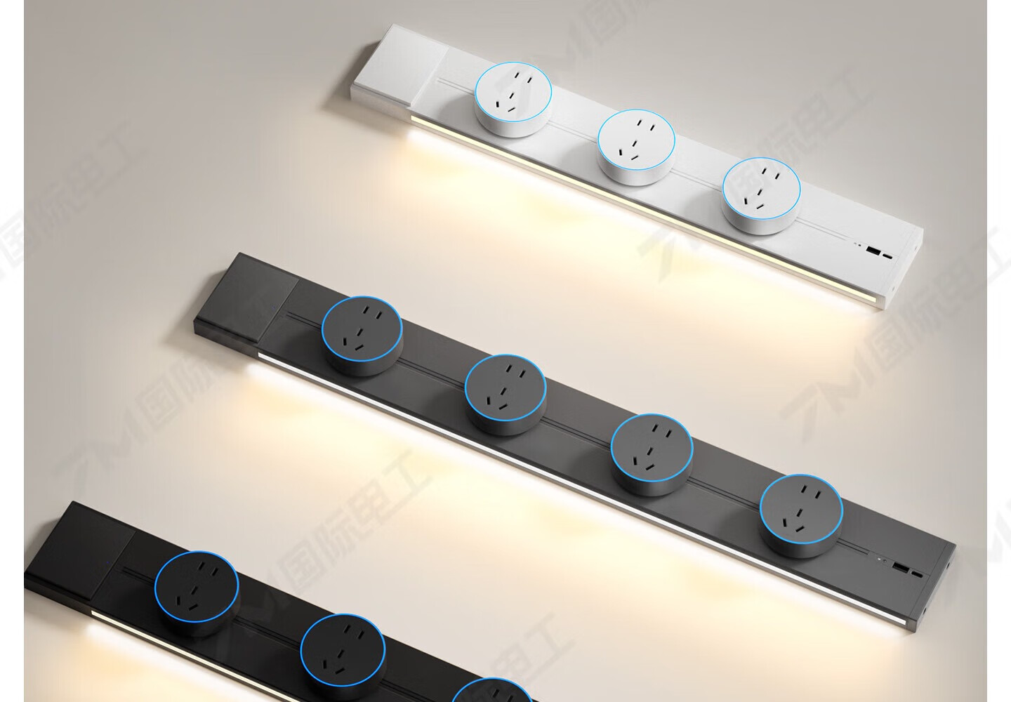 国际电工明装山丘感应灯轨道插座可移动壁挂式电力导轨玄关餐边柜滑动电源 (白色)USB+Type-c蓝灯适配器