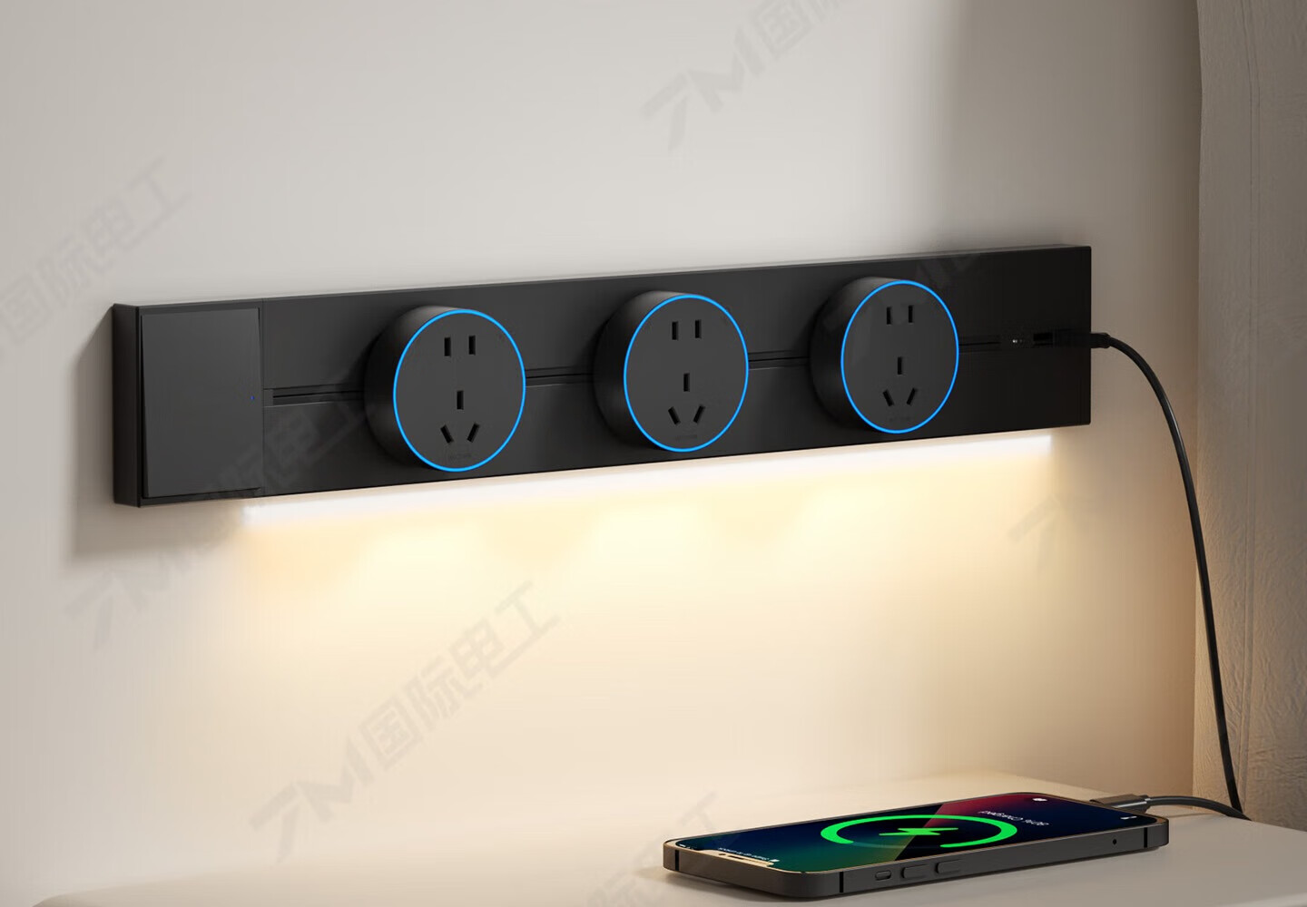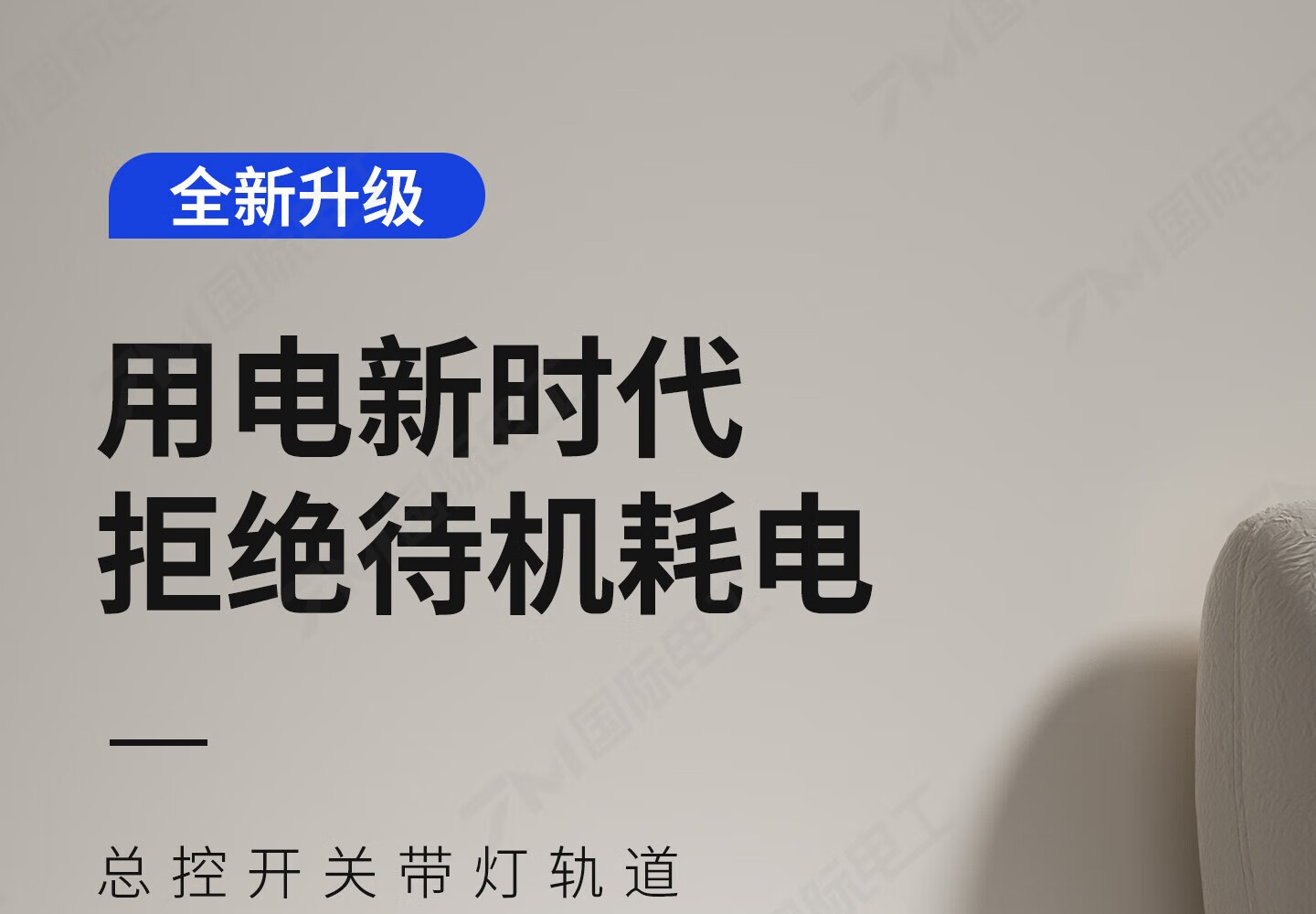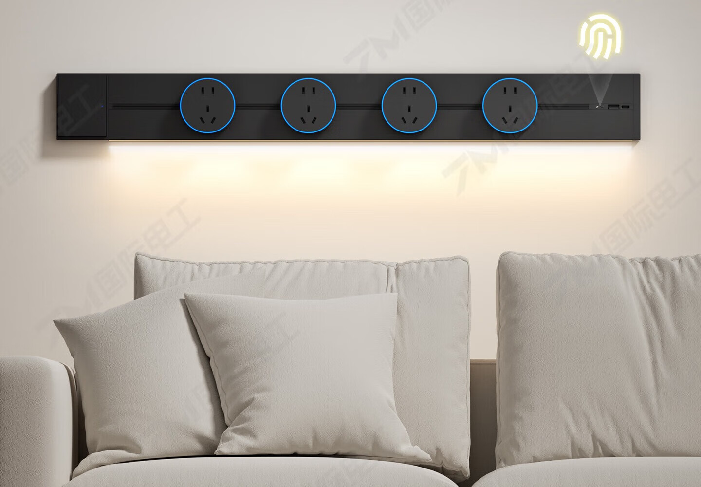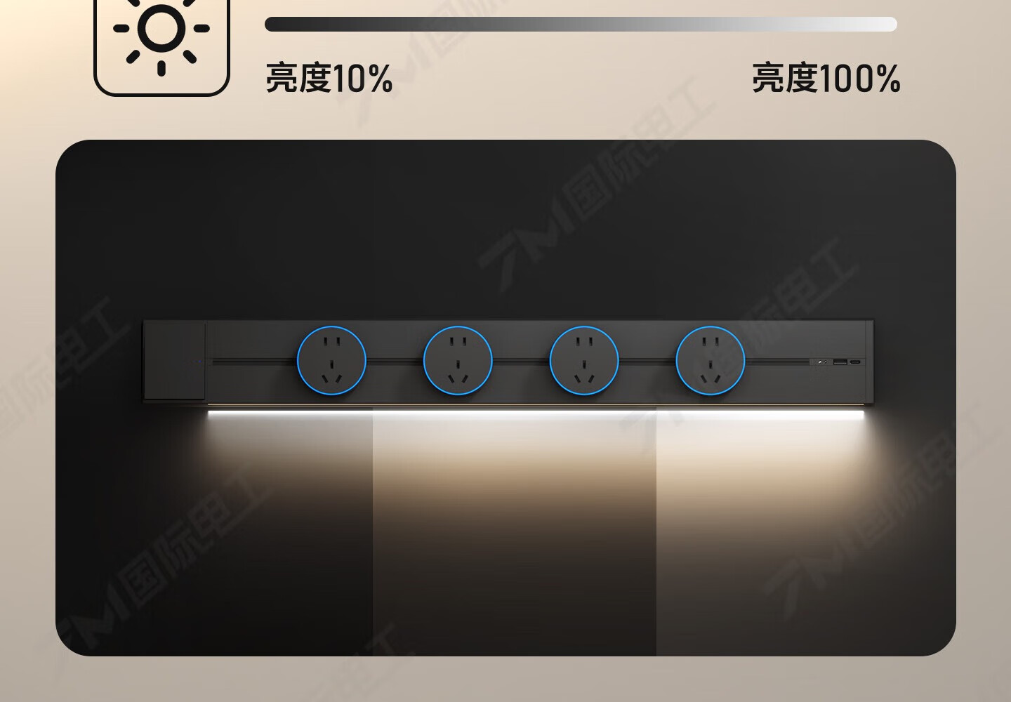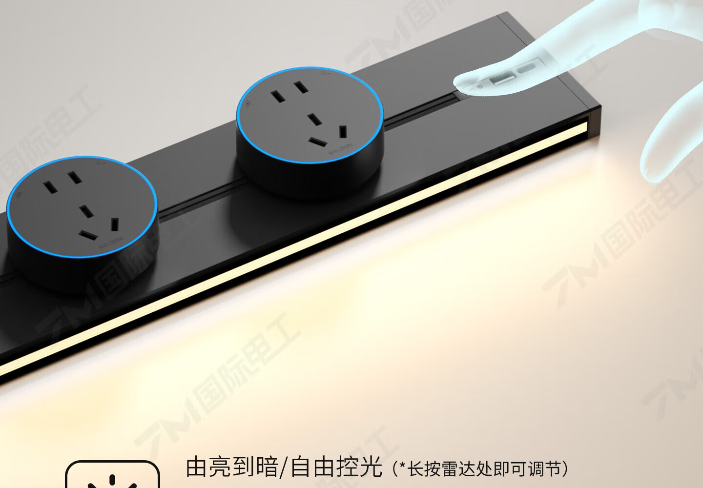 7M国际电工明装一键开关轨道插座带感应灯可移动USBC口滑动壁挂式扩展插排 星耀灰-感应灯轨道40CM【送2插大间距】
