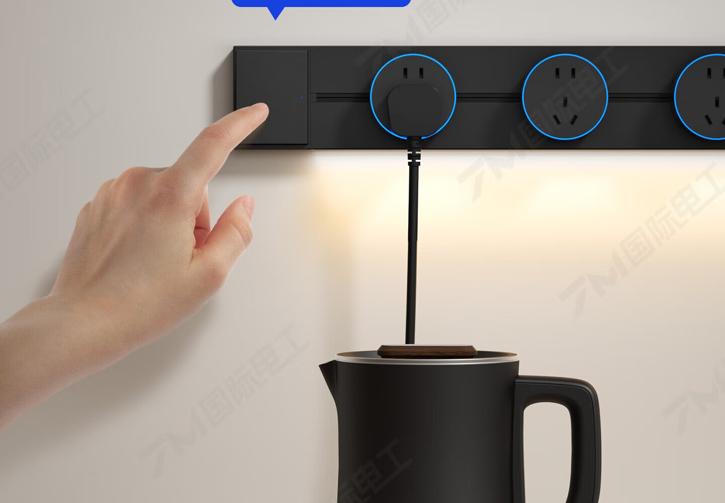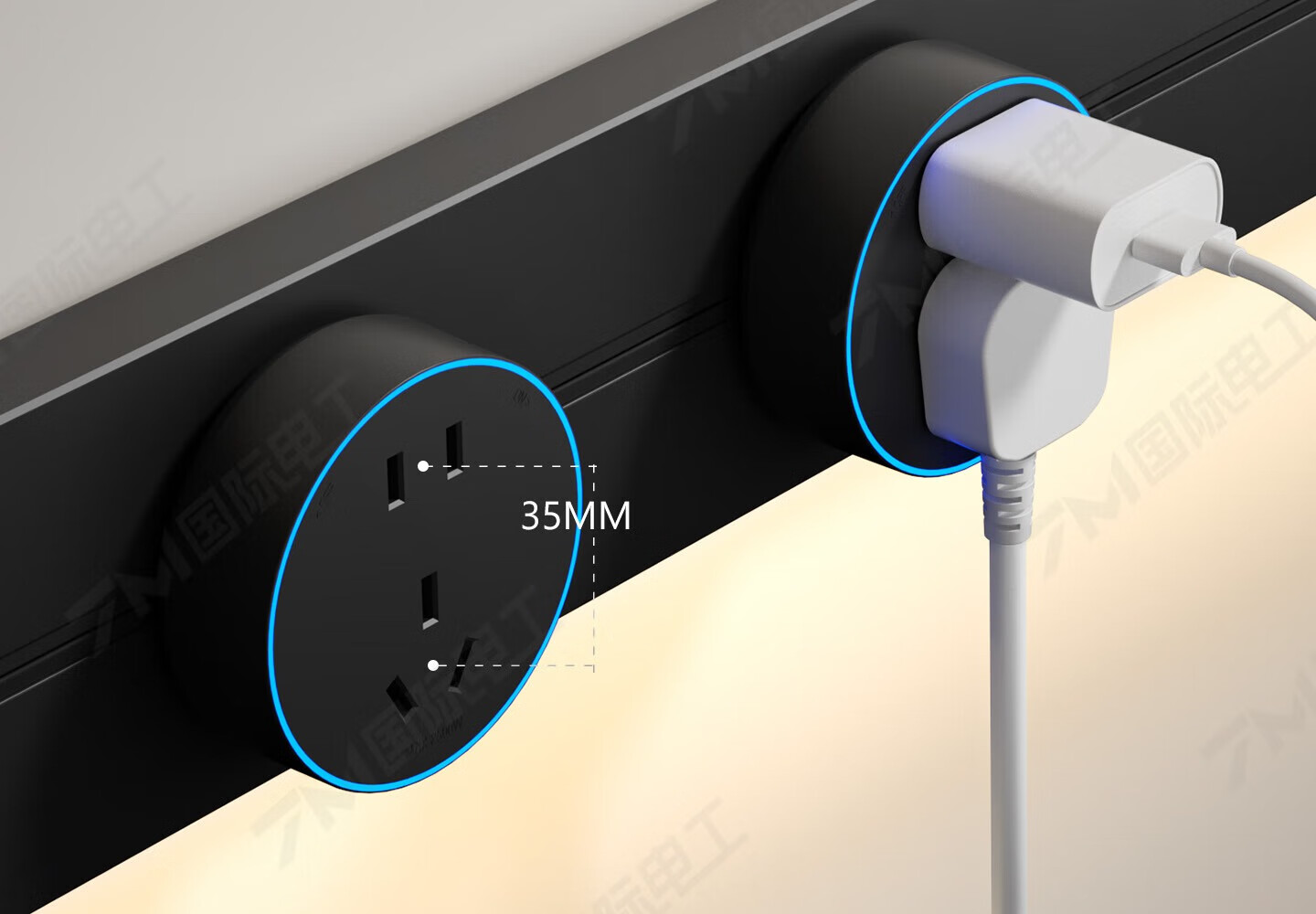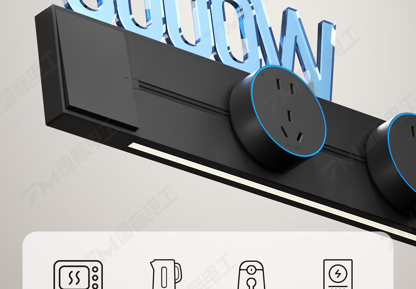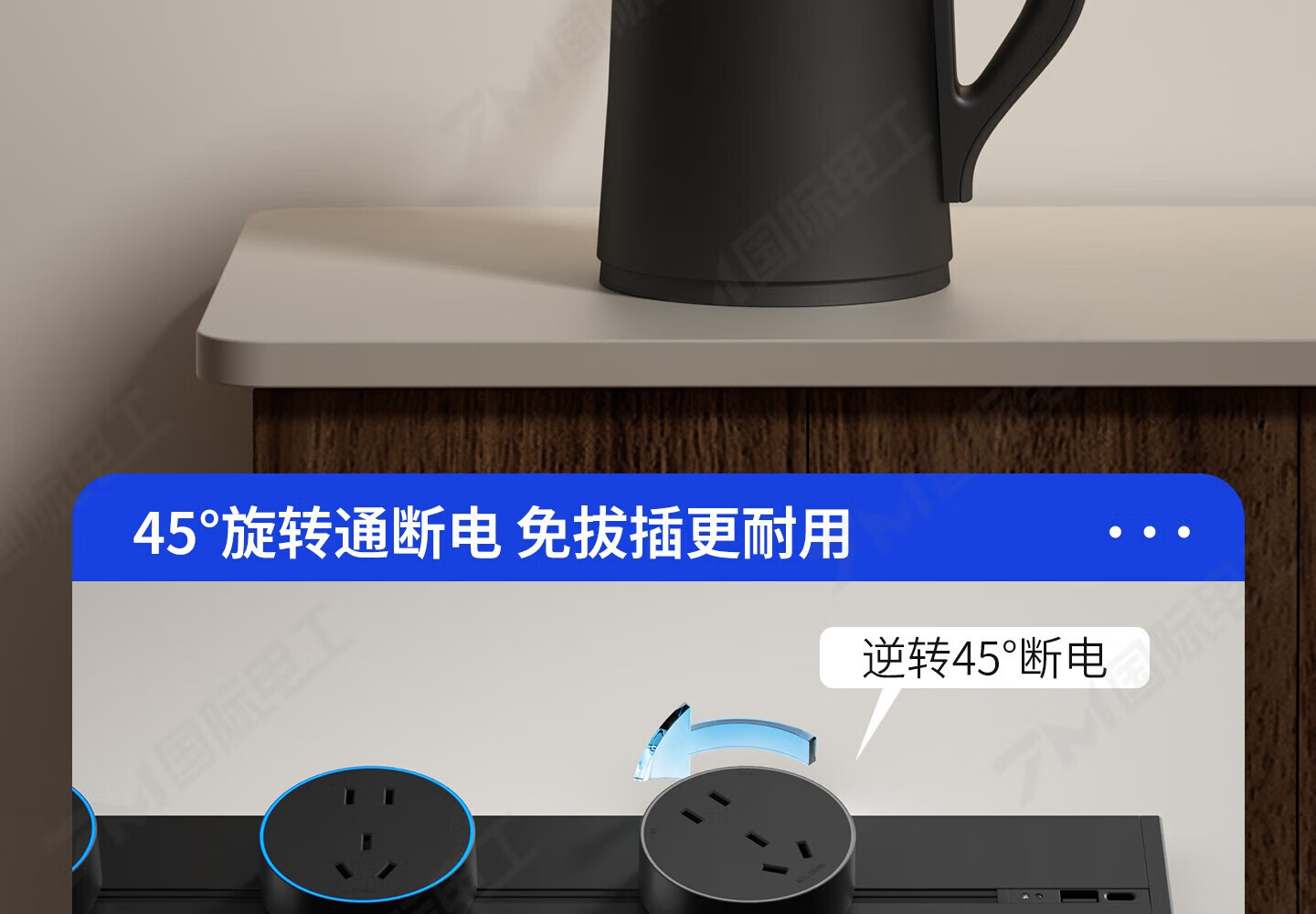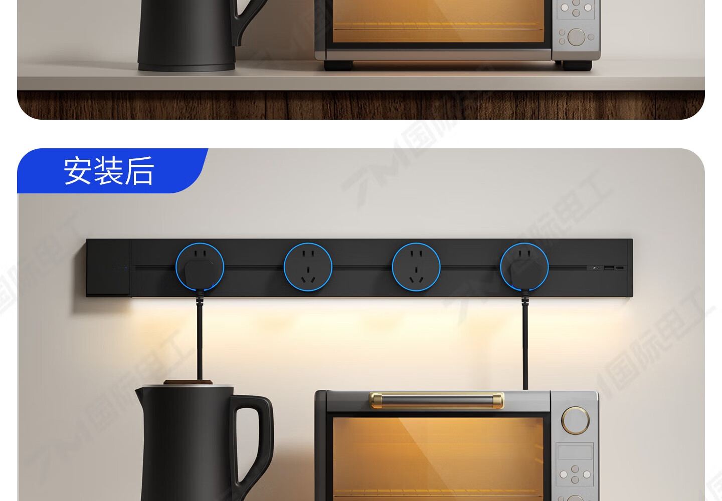 国际电工快充usb-c带开关轨道插座可移动滑轨黑明装电力插排餐柜家用厨房 黑色【快充U/C】带总控-30厘米+2个大五孔