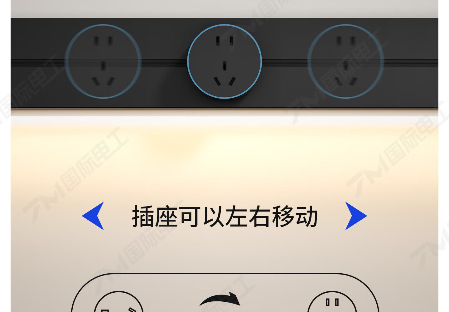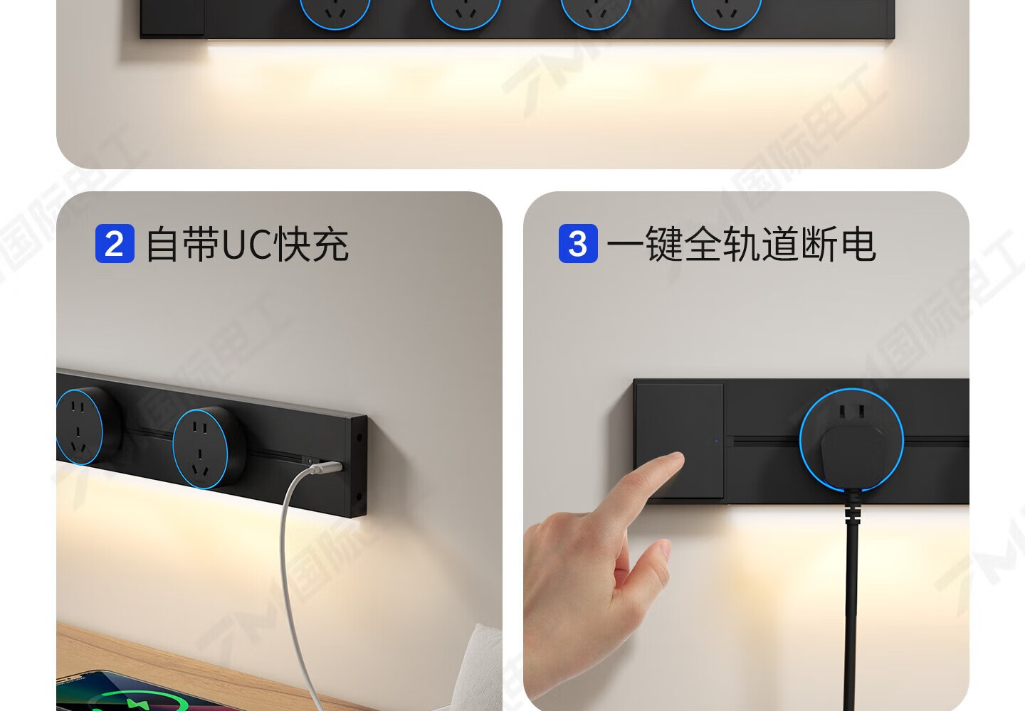 国际电工可移动快充轨道插座家用厨房餐边柜滑轨滑动导轨插排usb+c明装 白色【快充U/C】带总控-30厘米+2个大五孔