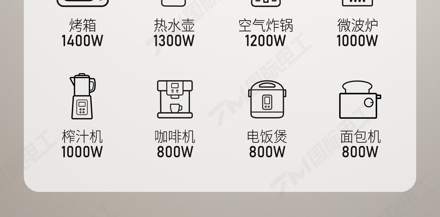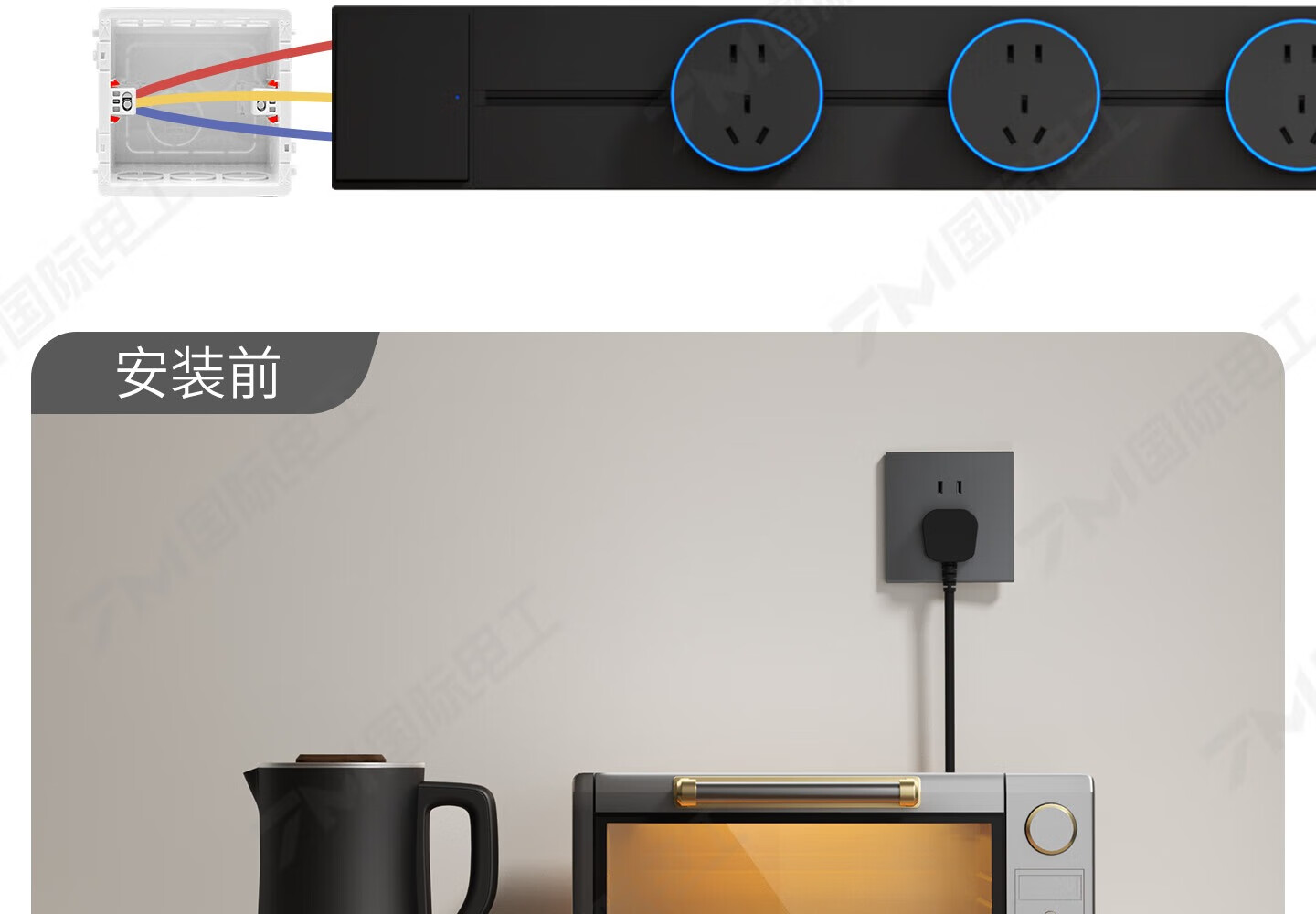 国际电工床头插座扩展转换器多功能客厅餐边柜扩展插头厨房短线插排插线板 向左扩展【三开21孔】白色短线