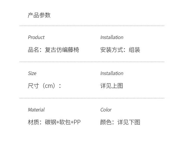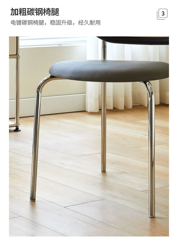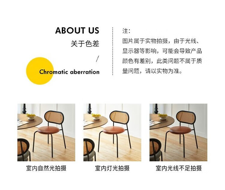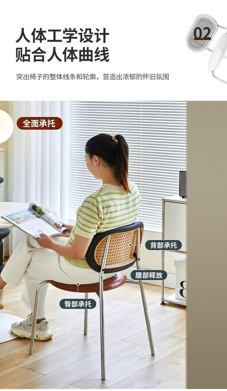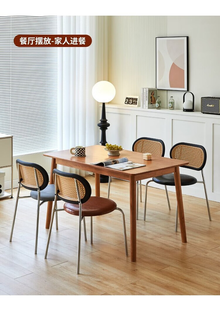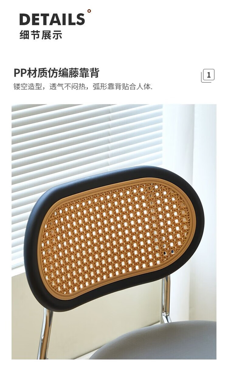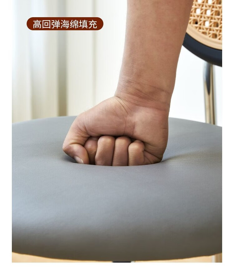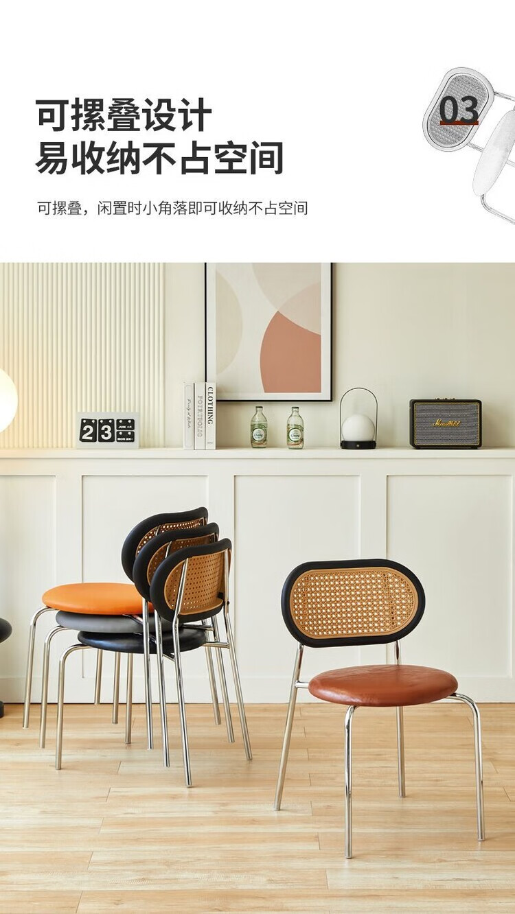 弘星隆北欧奶油网红ins家用中古藤编椅子餐椅简约阳台休闲靠背椅复古 注塑靠背-棕色皮革坐垫-黑色烤漆架