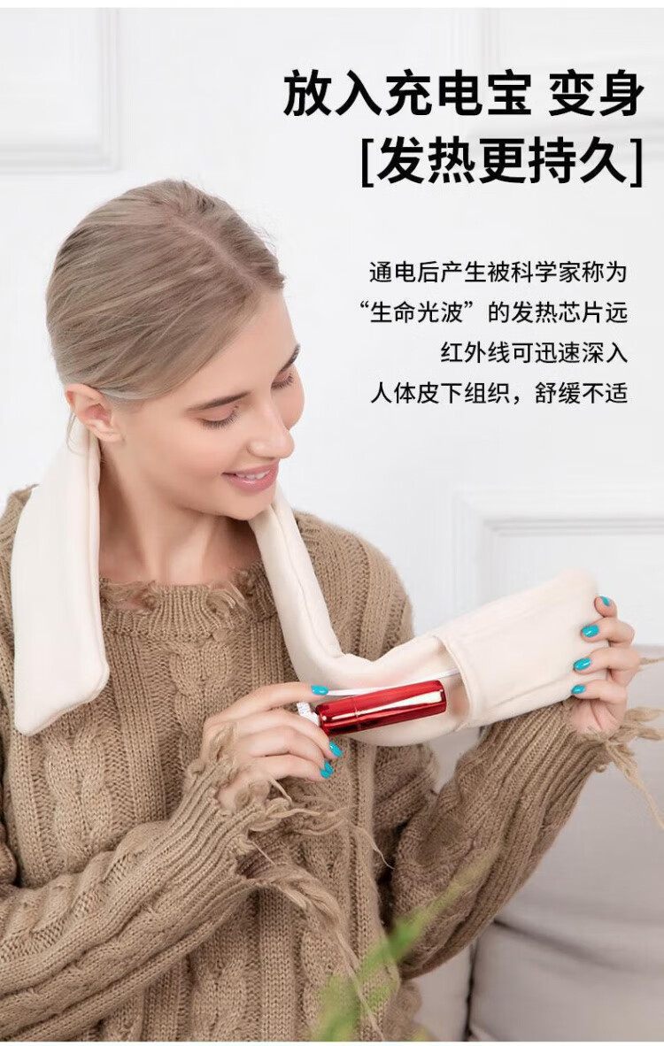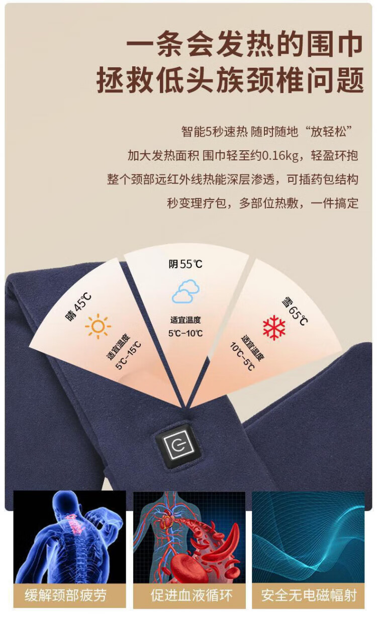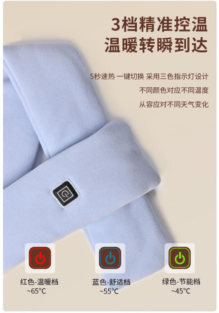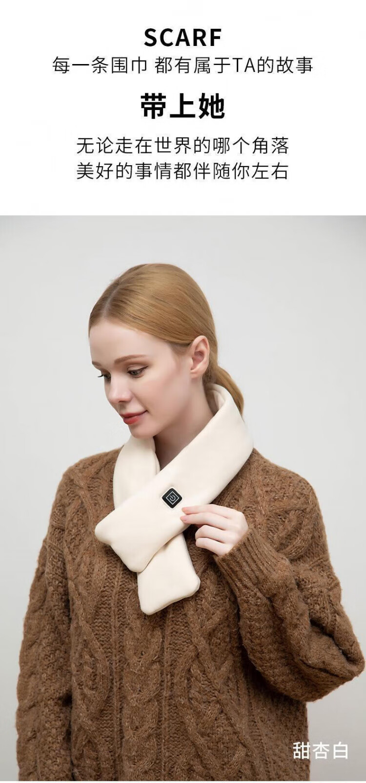 WCZ德国石墨烯发热智能充电围巾男女颈椎脖子护肩护颈围脖自发热保暖 米白色-3档控温+精美礼盒 5s速热 智能控温 护肤德绒