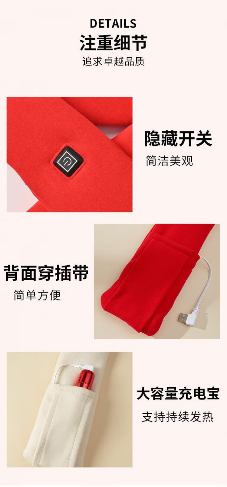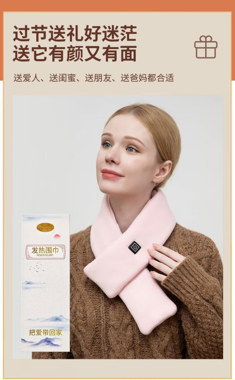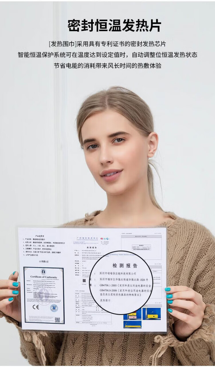 WCZ德国石墨烯发热智能充电围巾男女颈椎脖子护肩护颈围脖自发热保暖 米白色-3档控温+精美礼盒 5s速热 智能控温 护肤德绒