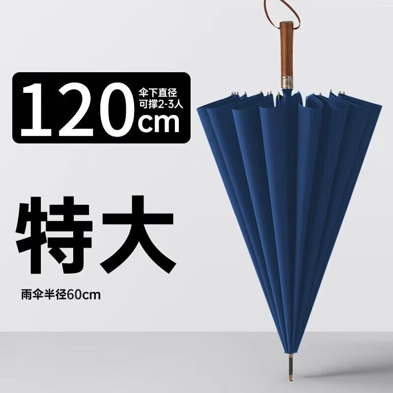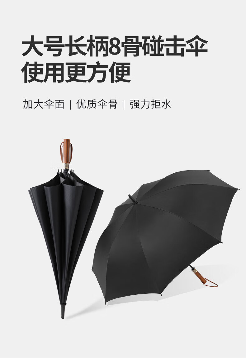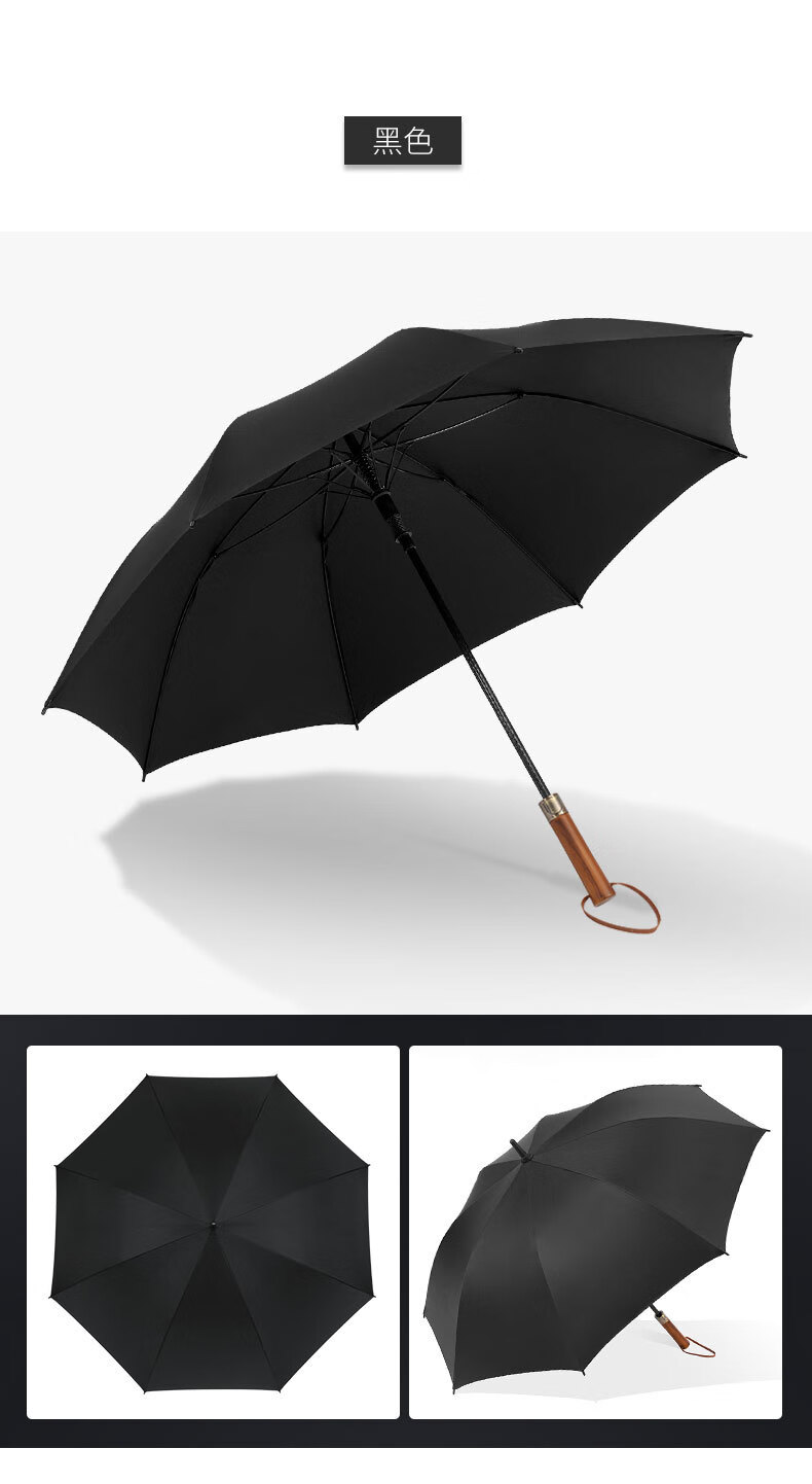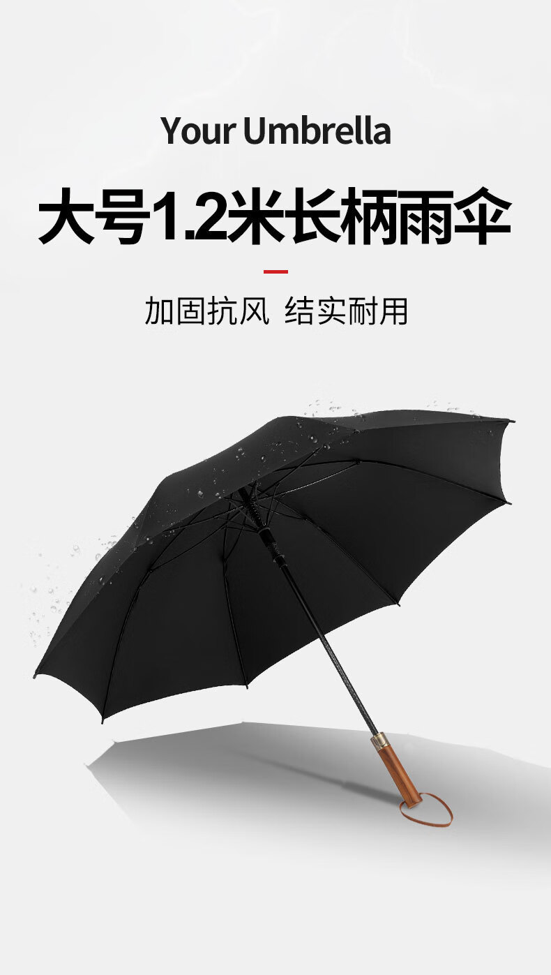 印象城可定制印刷高档实木长柄伞雨伞晴雨两用超大120CM大伞面结实抗风 黑色