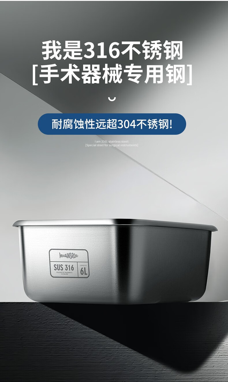 米膳葆(MISANBROO)抗菌316不锈钢饺子收纳盒大容量冰箱水饺真空食品级冷冻保鲜盒 抗菌316钢-3000ml(1个) 1层