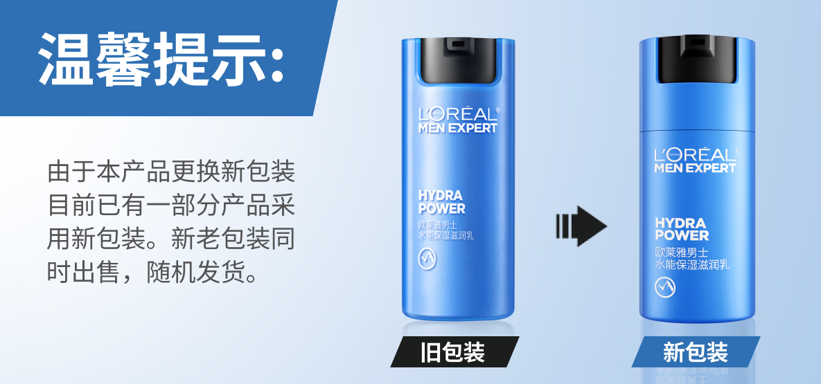 欧莱雅男士水能润肤滋润乳50ml*2补水保湿乳液套装护肤品礼物送男友