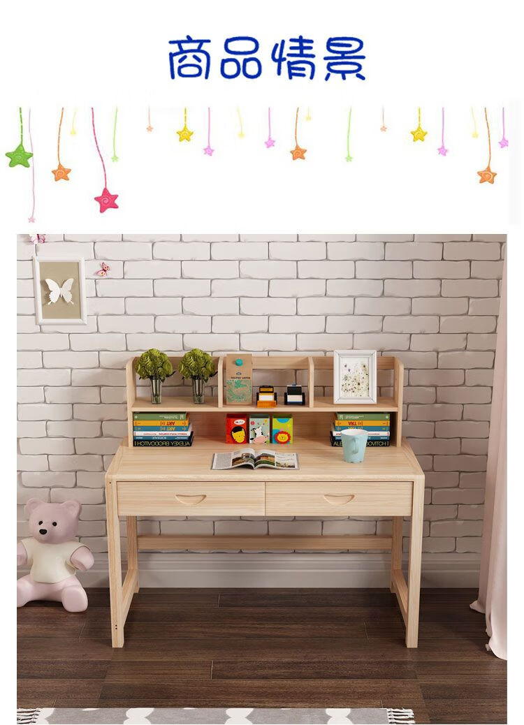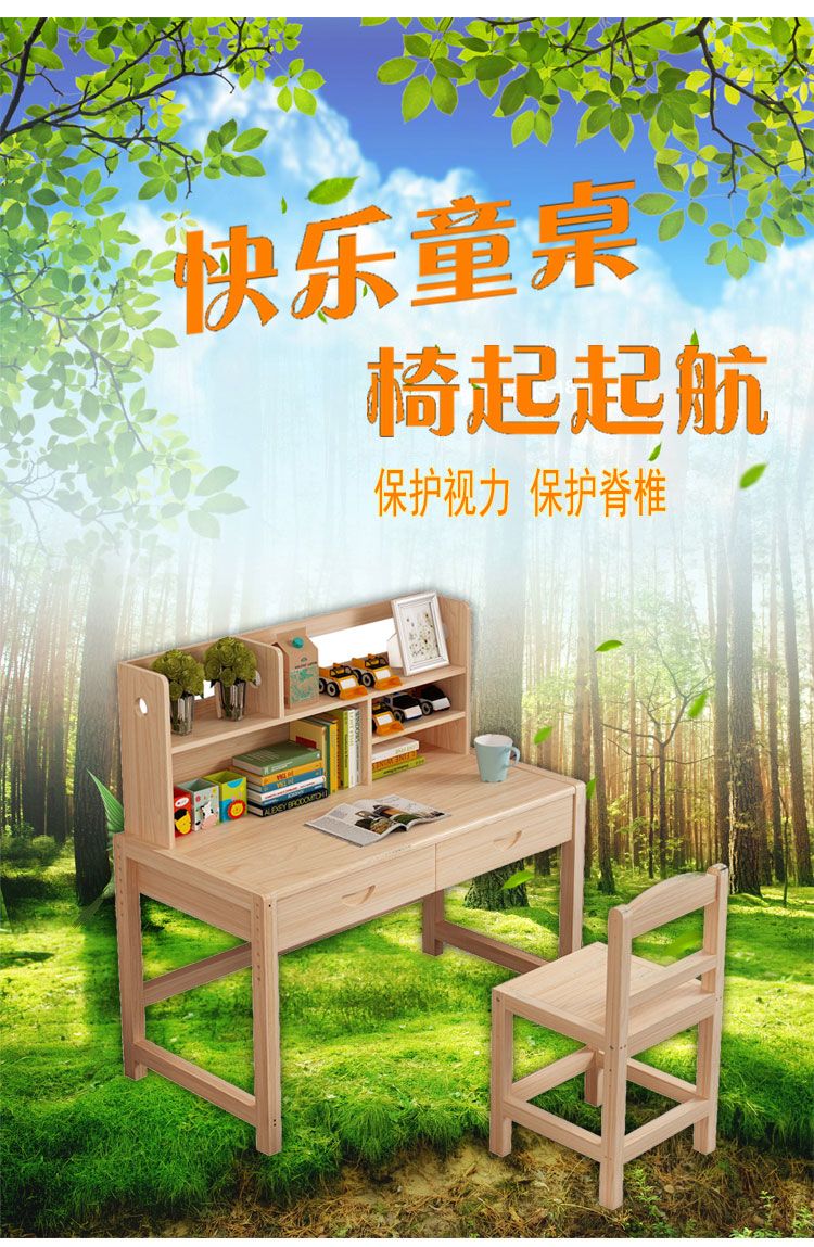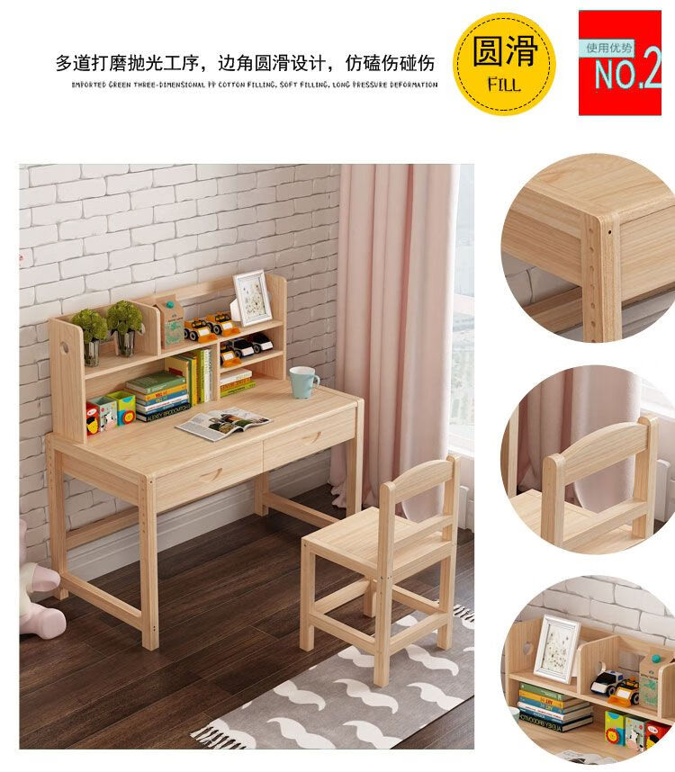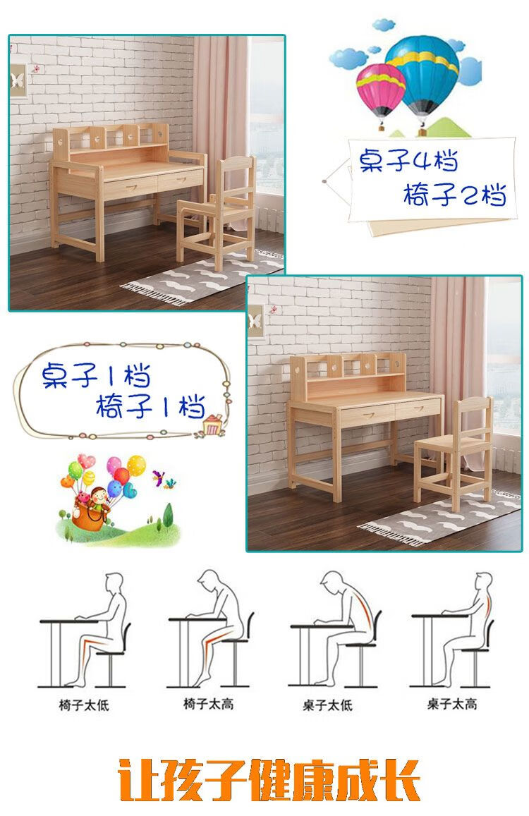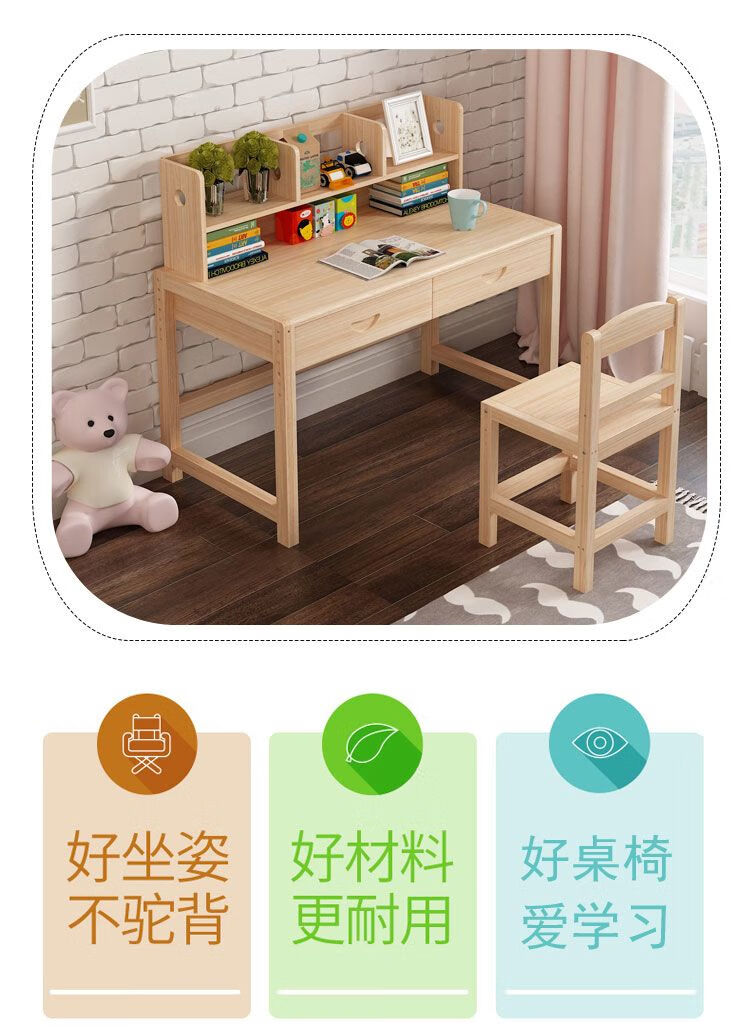 弘星隆儿童实木松木学习桌椅套装可升降小学生书桌椅课桌写字桌学生家用 天然原木无漆(001)款 升降80*50*75桌椅一套送礼品