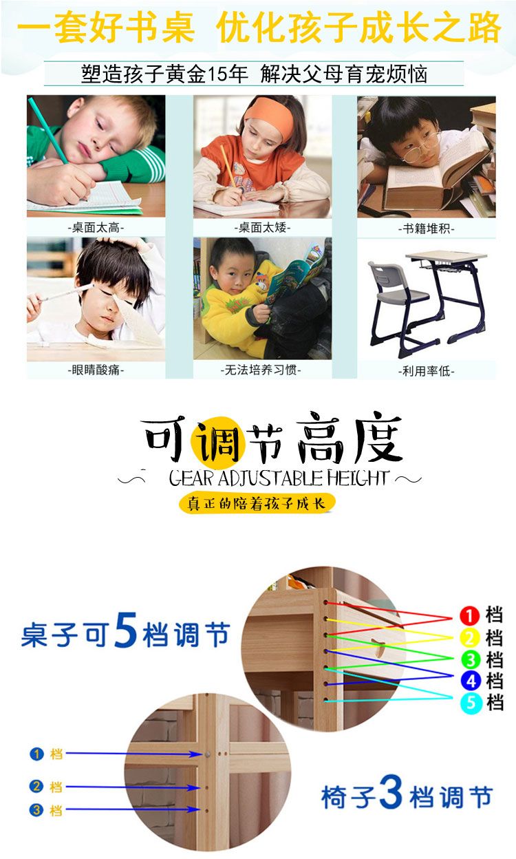 海诗圣堡免安装小学生家用书桌可升降儿童学习桌椅培训班写字桌学校课桌椅 学校同款单椅下单备注 颜色 长60x宽40x高76 cm