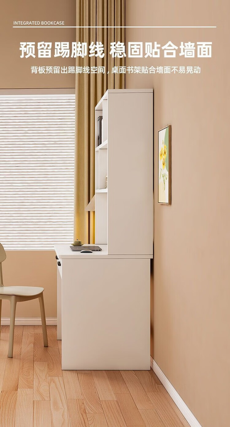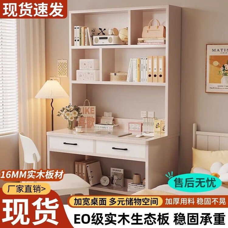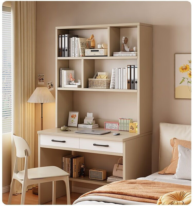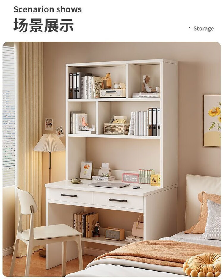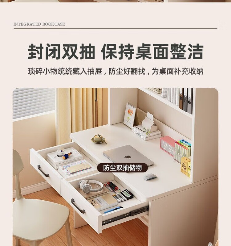 倘然之家实木书桌书架一体小户型学习桌书柜学生卧室电脑桌台式家用写字桌 【实木+送货上门】奶白色单桌 60x50x183cm