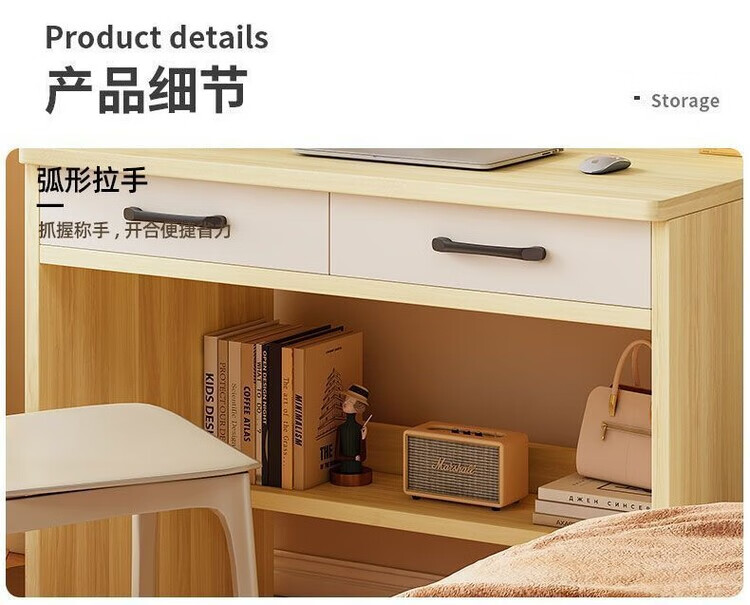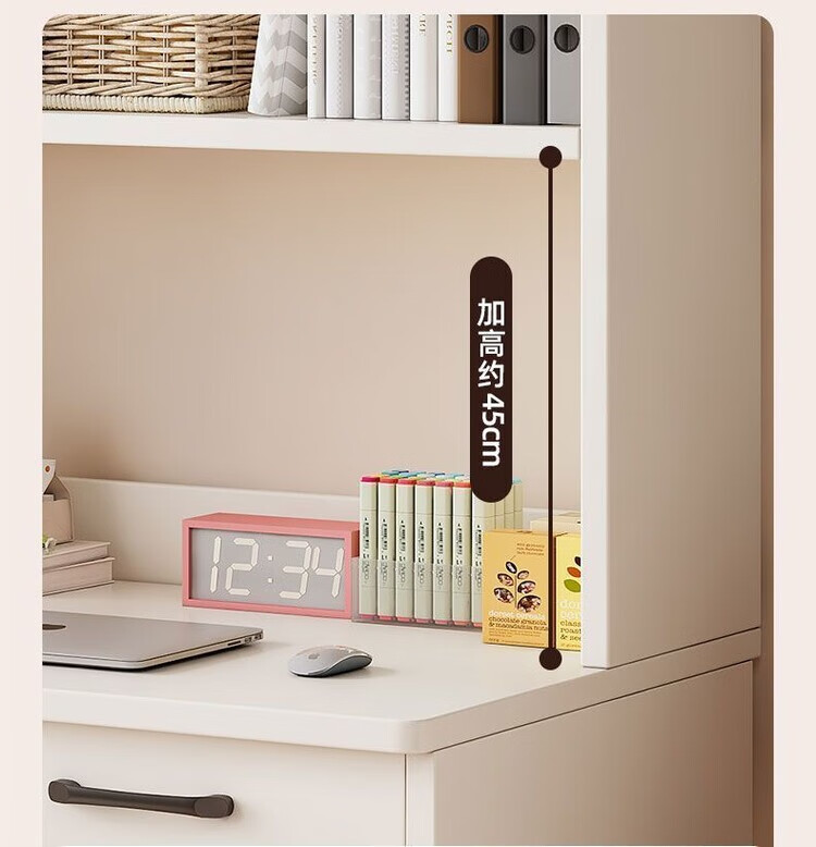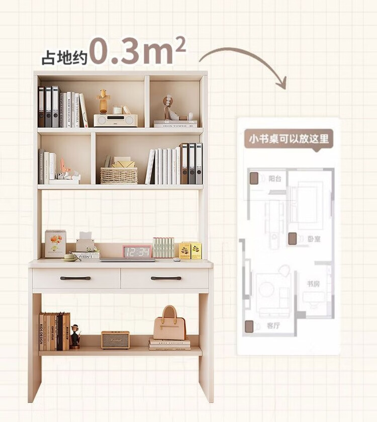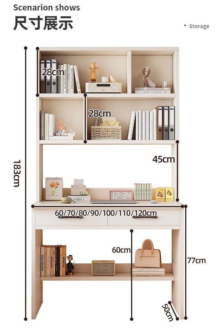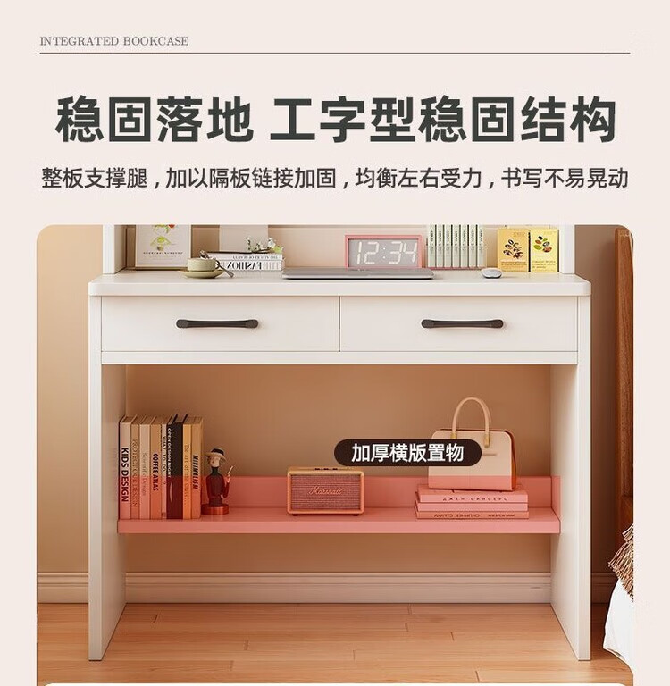 倘然之家实木书桌书架一体小户型学习桌书柜学生卧室电脑桌台式家用写字桌 【实木+送货上门】奶白色单桌 60x50x183cm
