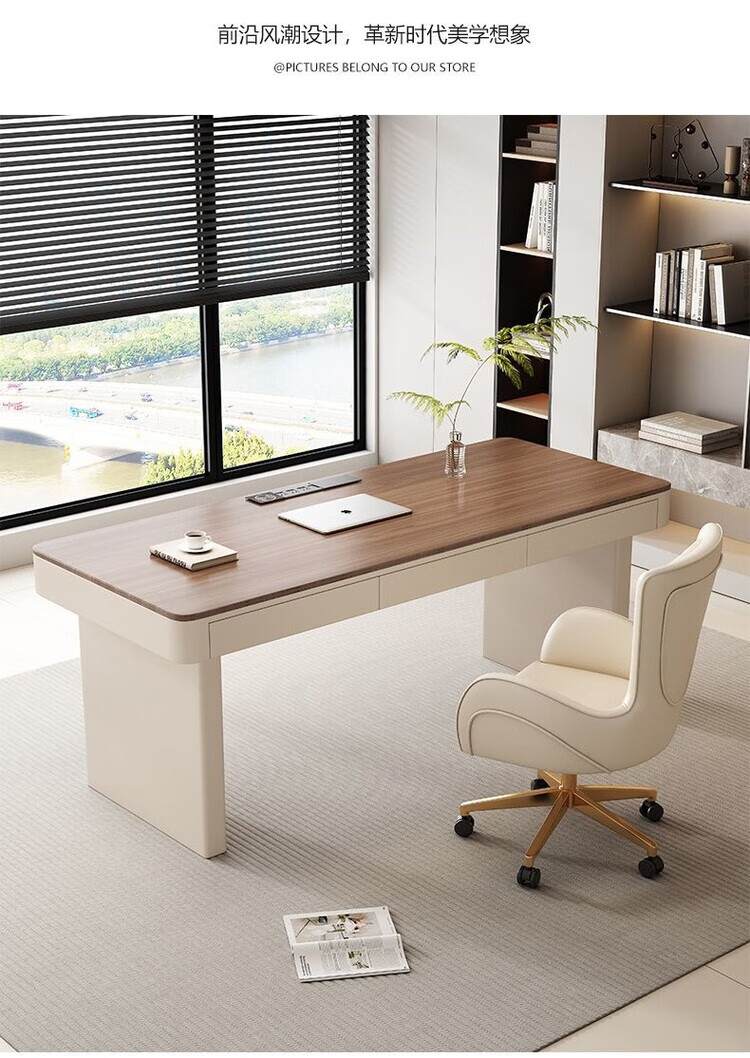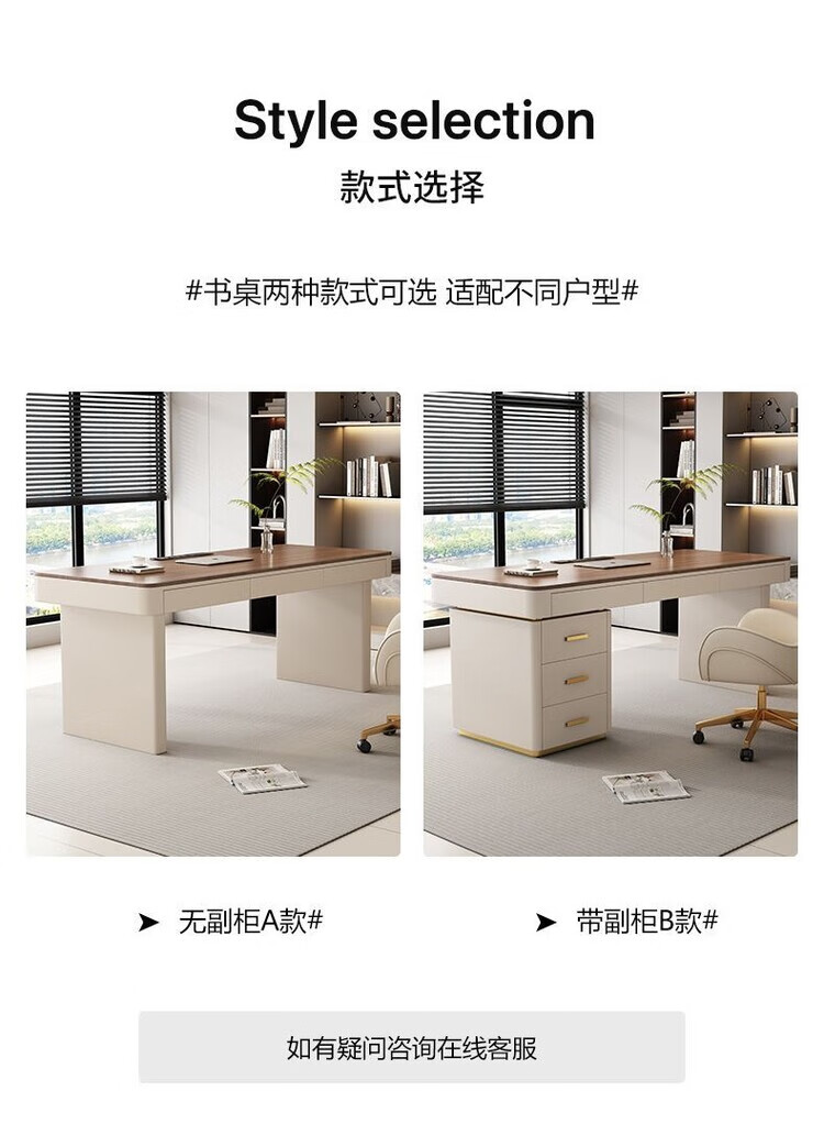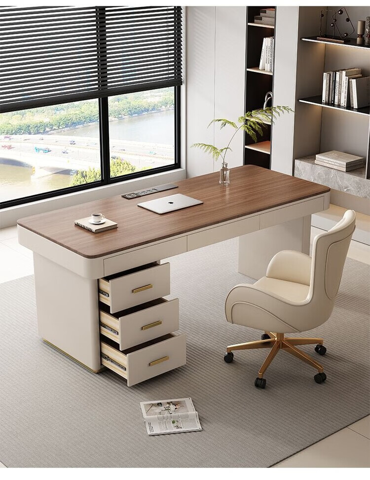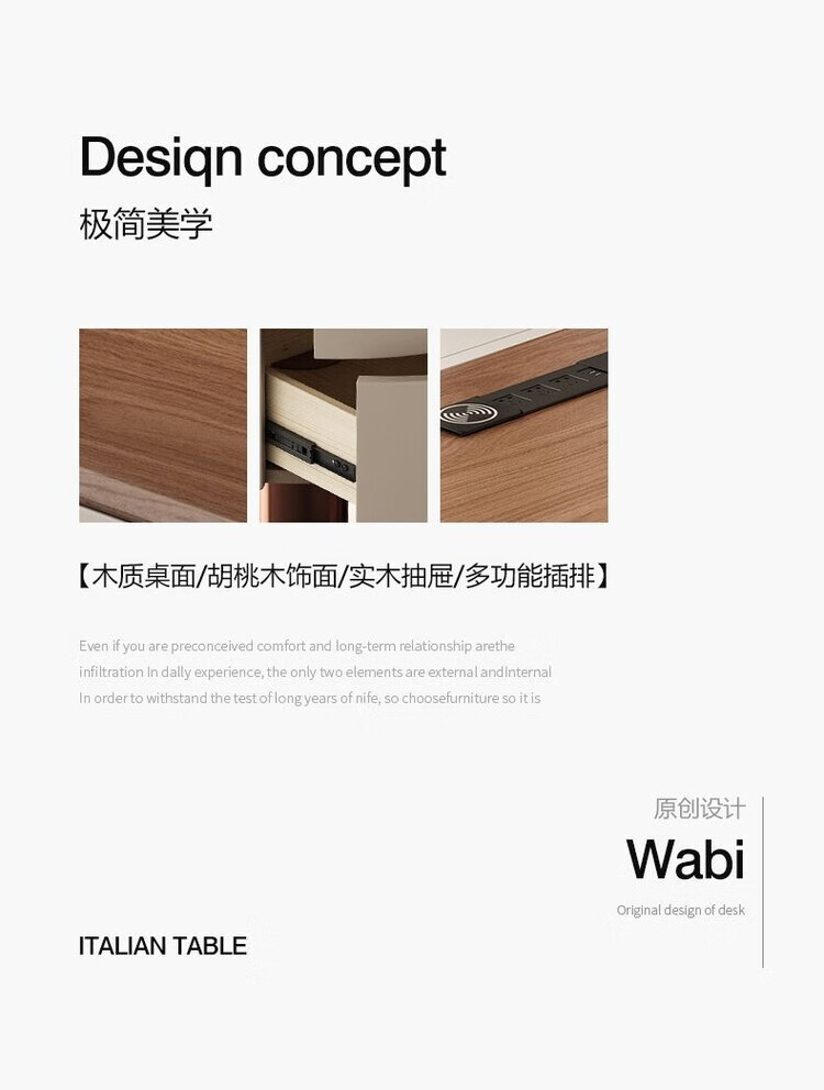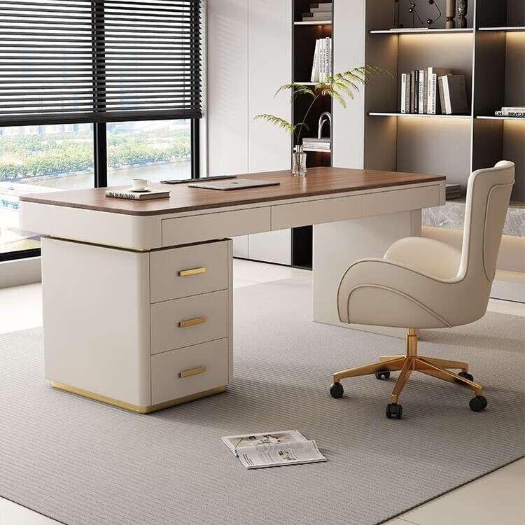 迈途森意式极简岩板书桌书房电脑桌椅组合轻奢现代写字台医美咨询办公桌 胡桃木书桌【不带柜】 【E0级实木桌】120*70*75cm