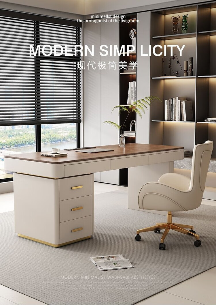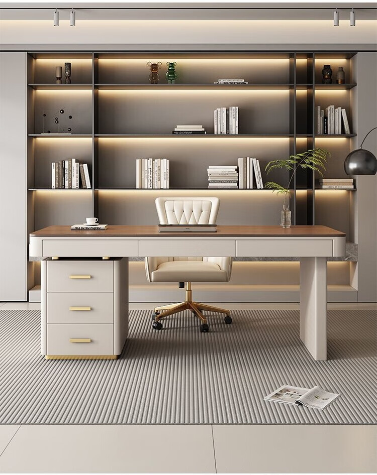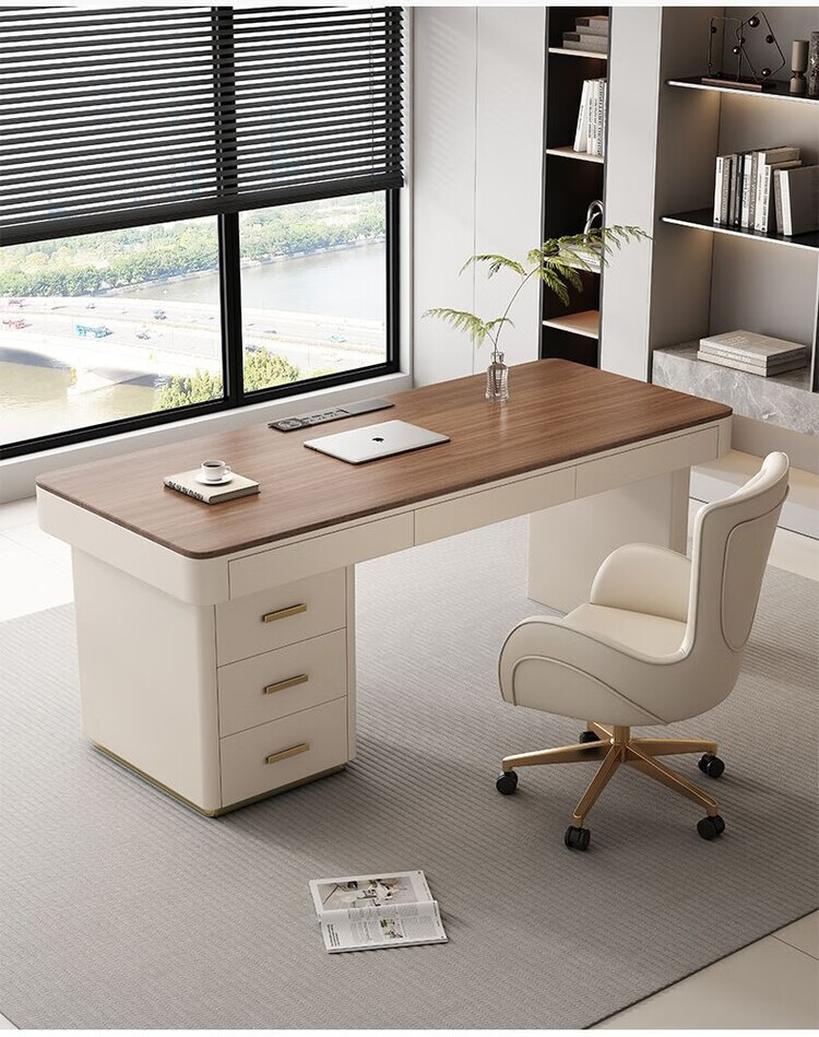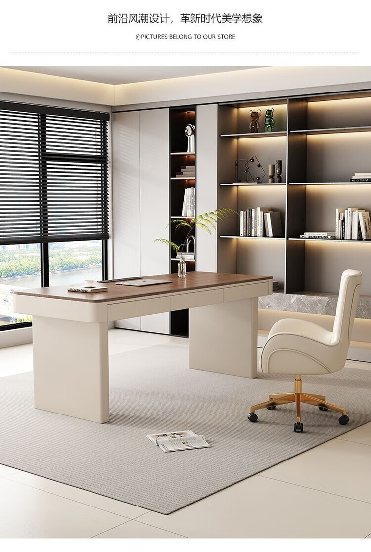 迈途森意式极简岩板书桌书房电脑桌椅组合轻奢现代写字台医美咨询办公桌 胡桃木书桌【不带柜】 【E0级实木桌】120*70*75cm