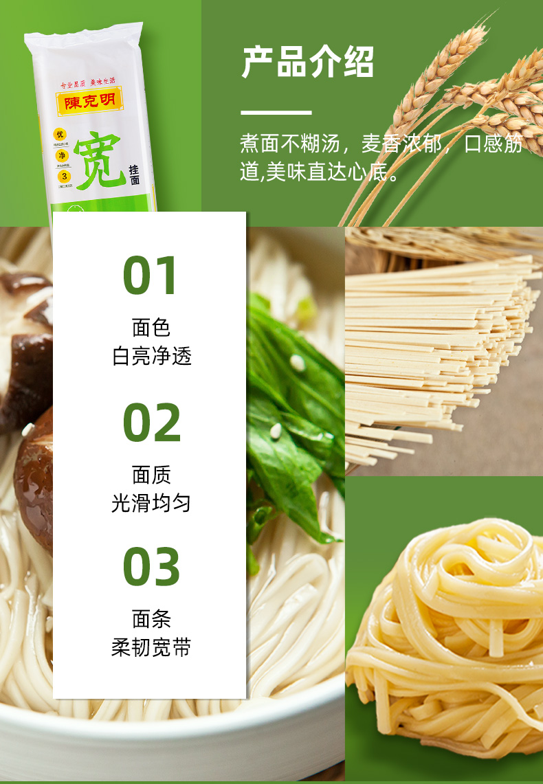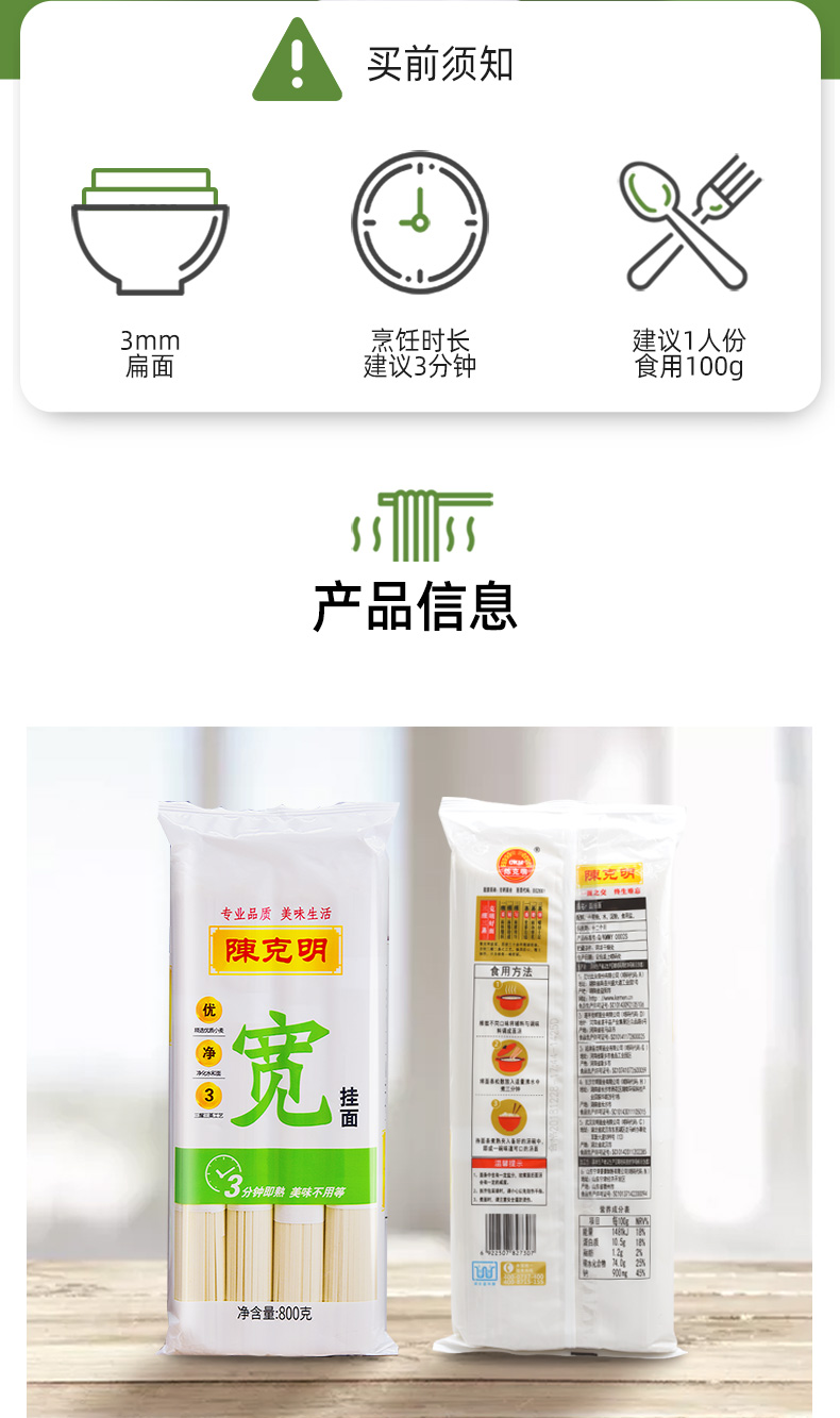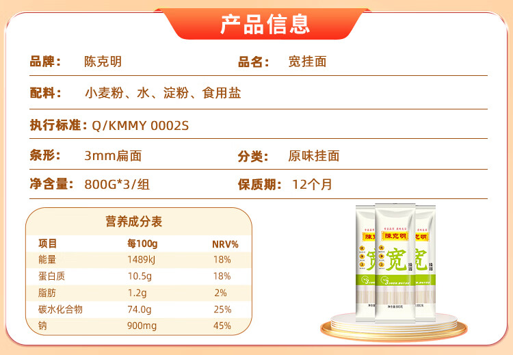 陈克明面条 宽挂面800g*3包 拌面汤面劲道速食面烩面宽面条营养早餐面