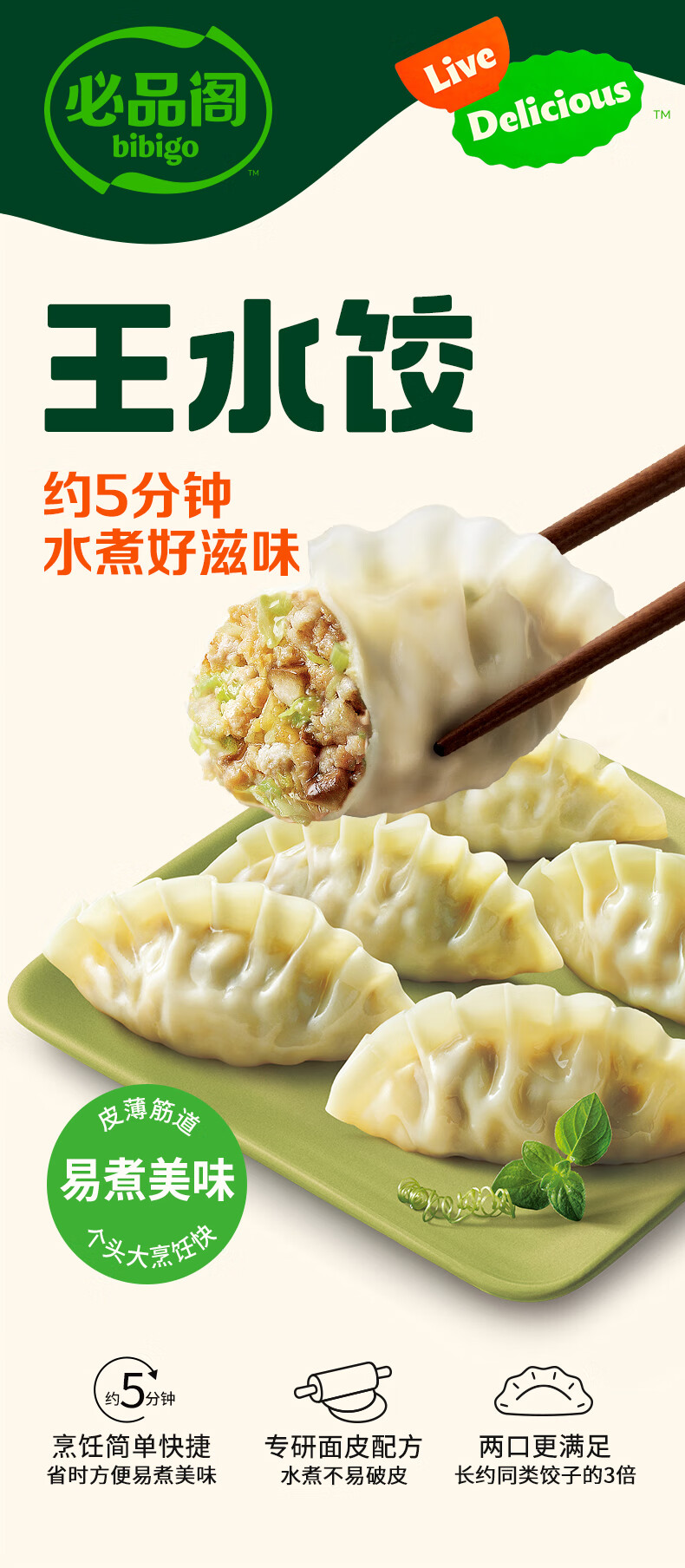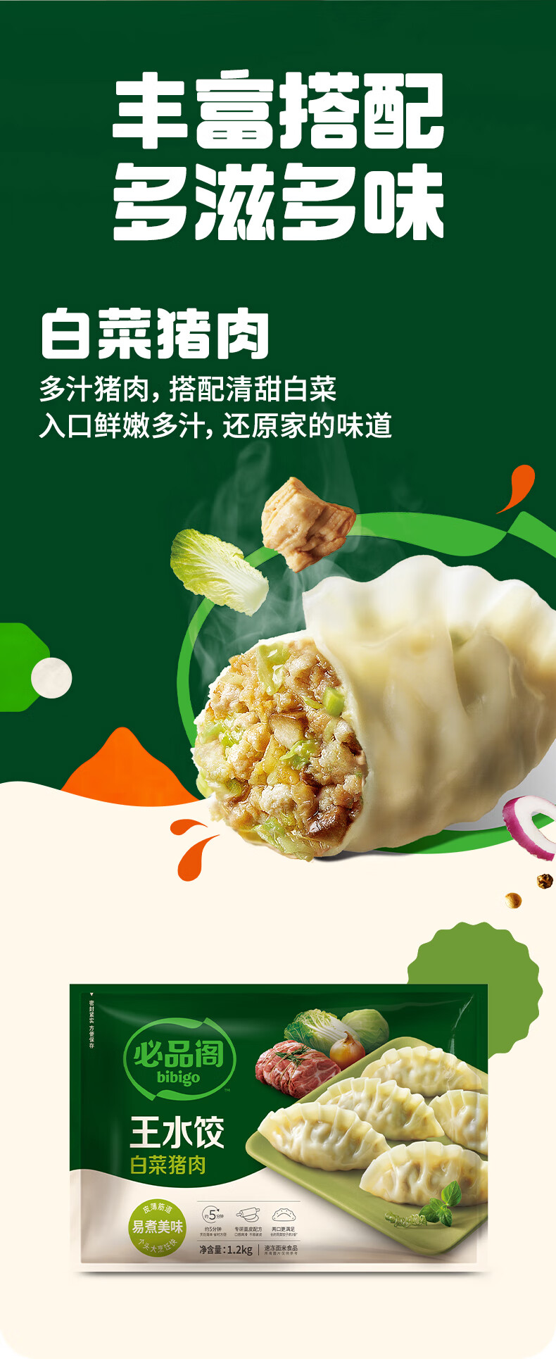 必品阁(bibigo)【会员专享】王水饺 白菜猪肉1200g 约48只 早餐 夜宵 生鲜速食