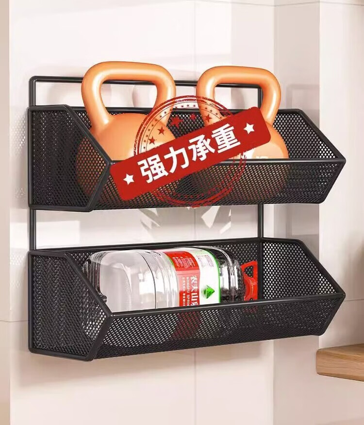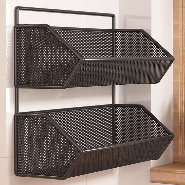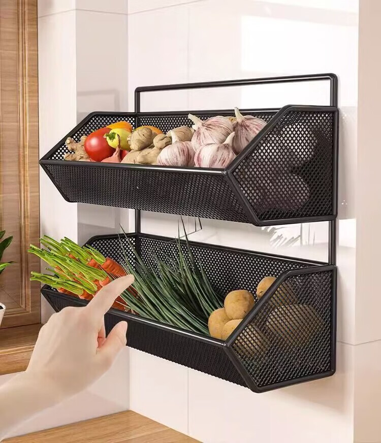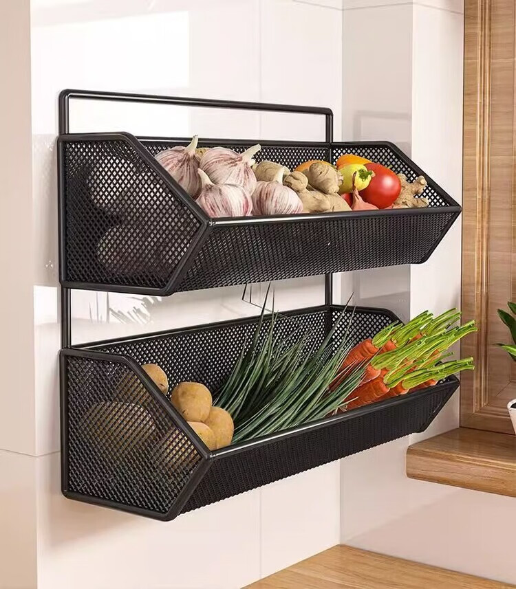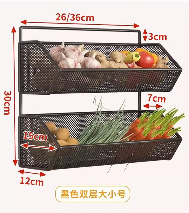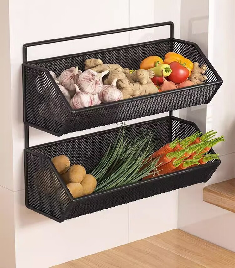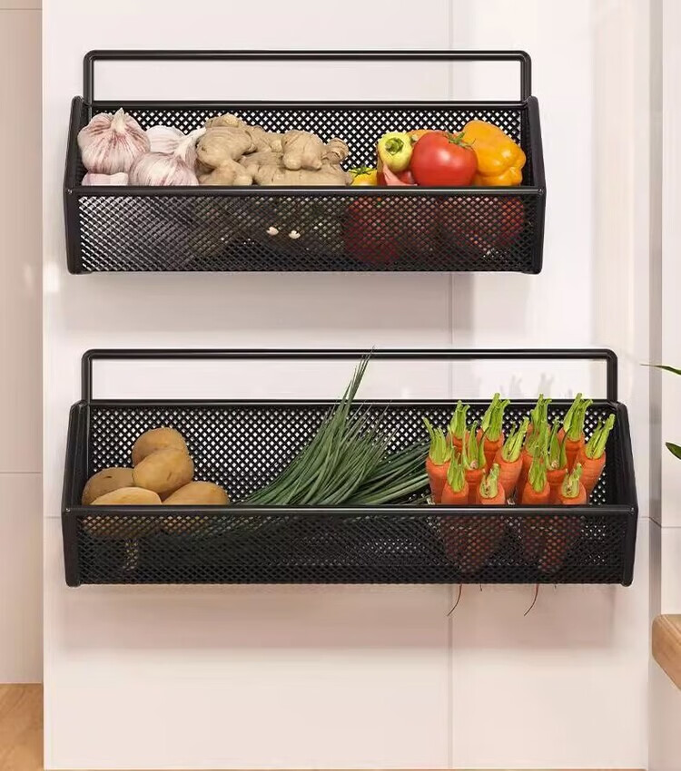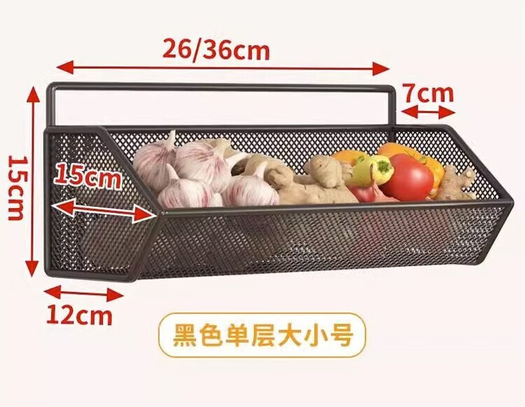 花沐禧厨房置物架姜蒜收纳筐墙上免钉壁挂挂篮多功能蔬菜调料沥水架神器 【密網/小号】黑色1层