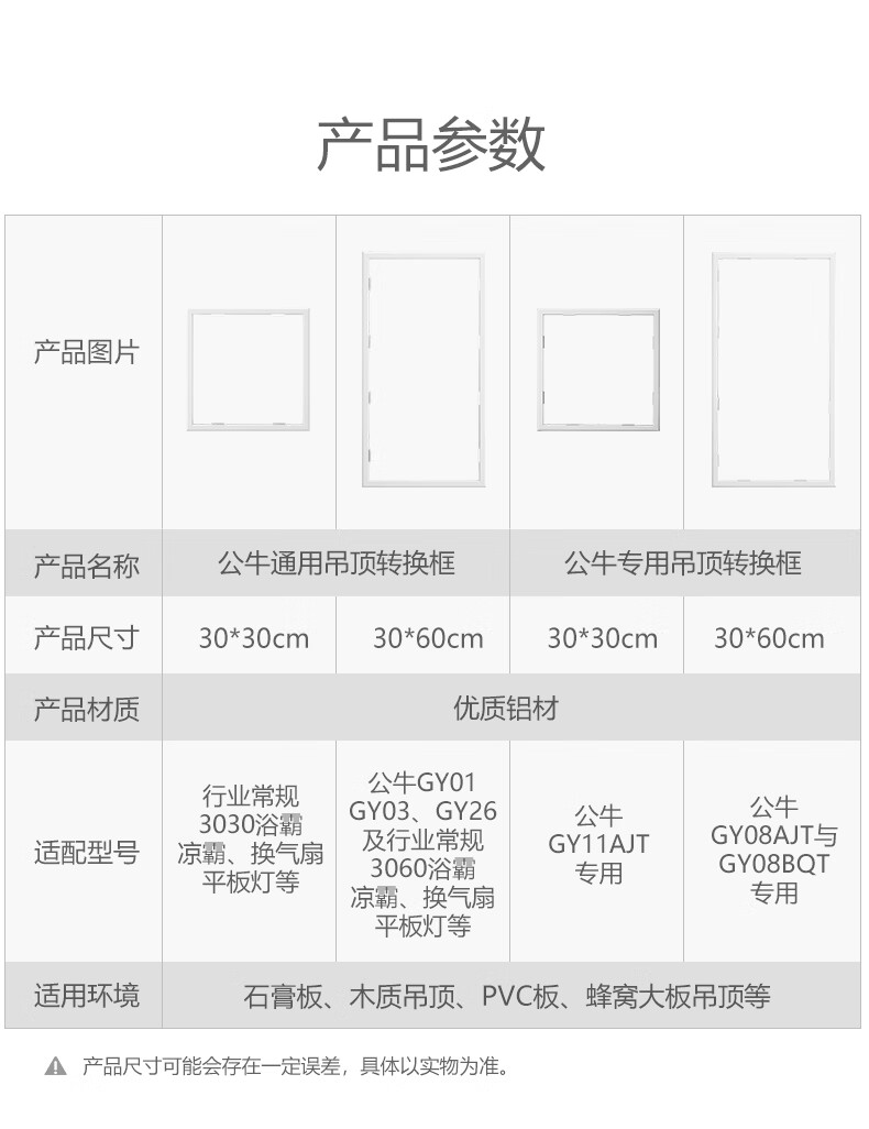 公牛浴霸转换框30x60吊顶转接框铝合金边框配件 白色 通用吊顶转换框30*60