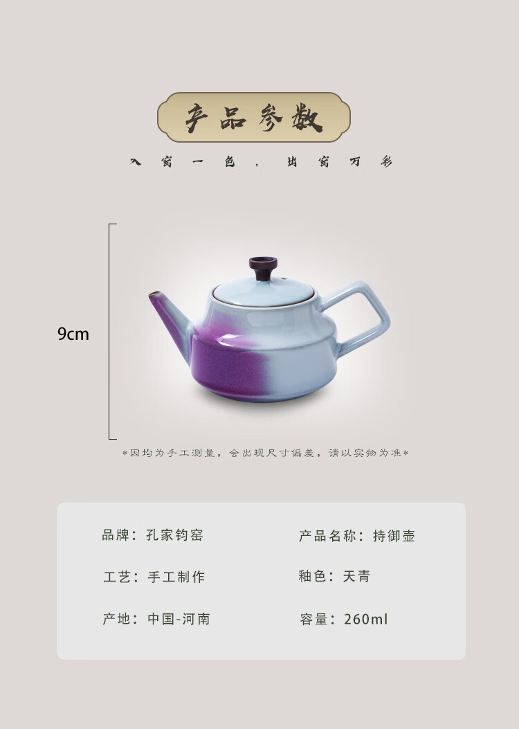 孔家钧窑官窑钧瓷持御壶功夫茶具家用泡茶壶 【套装 一壶六杯】 260ml
