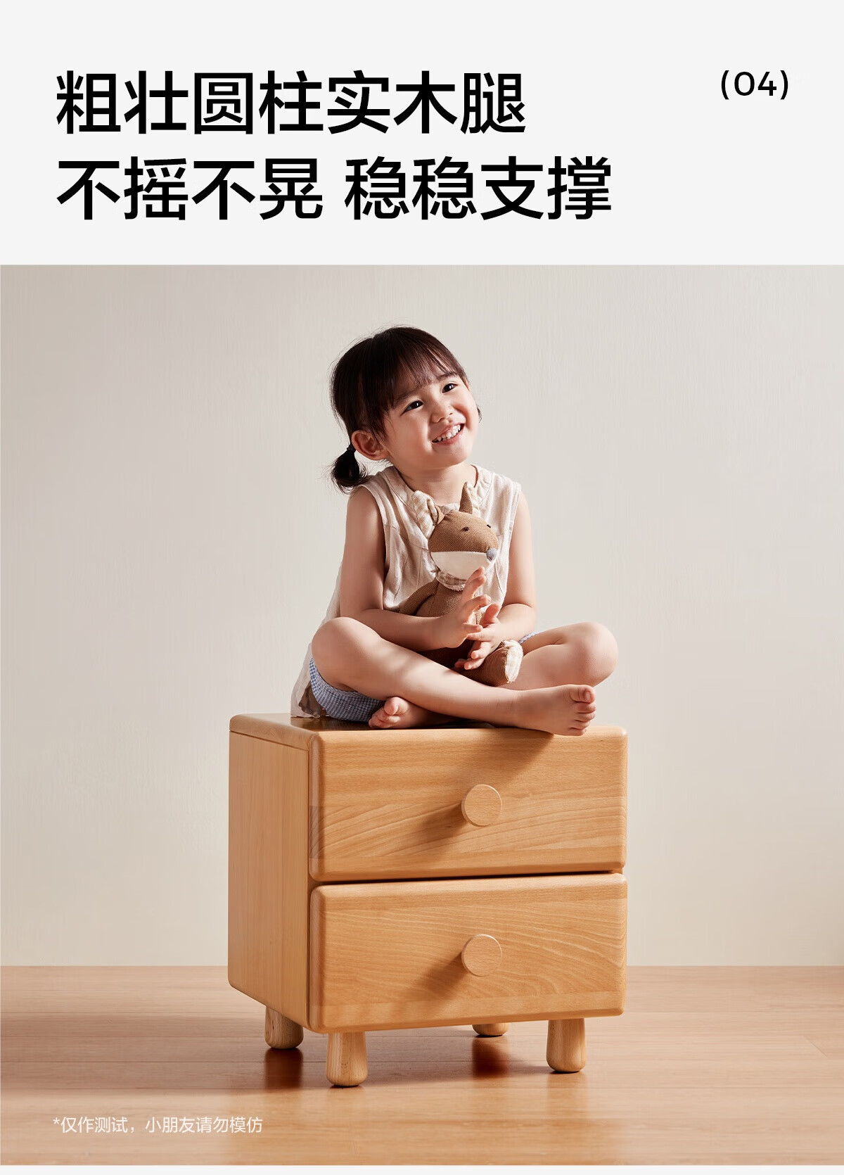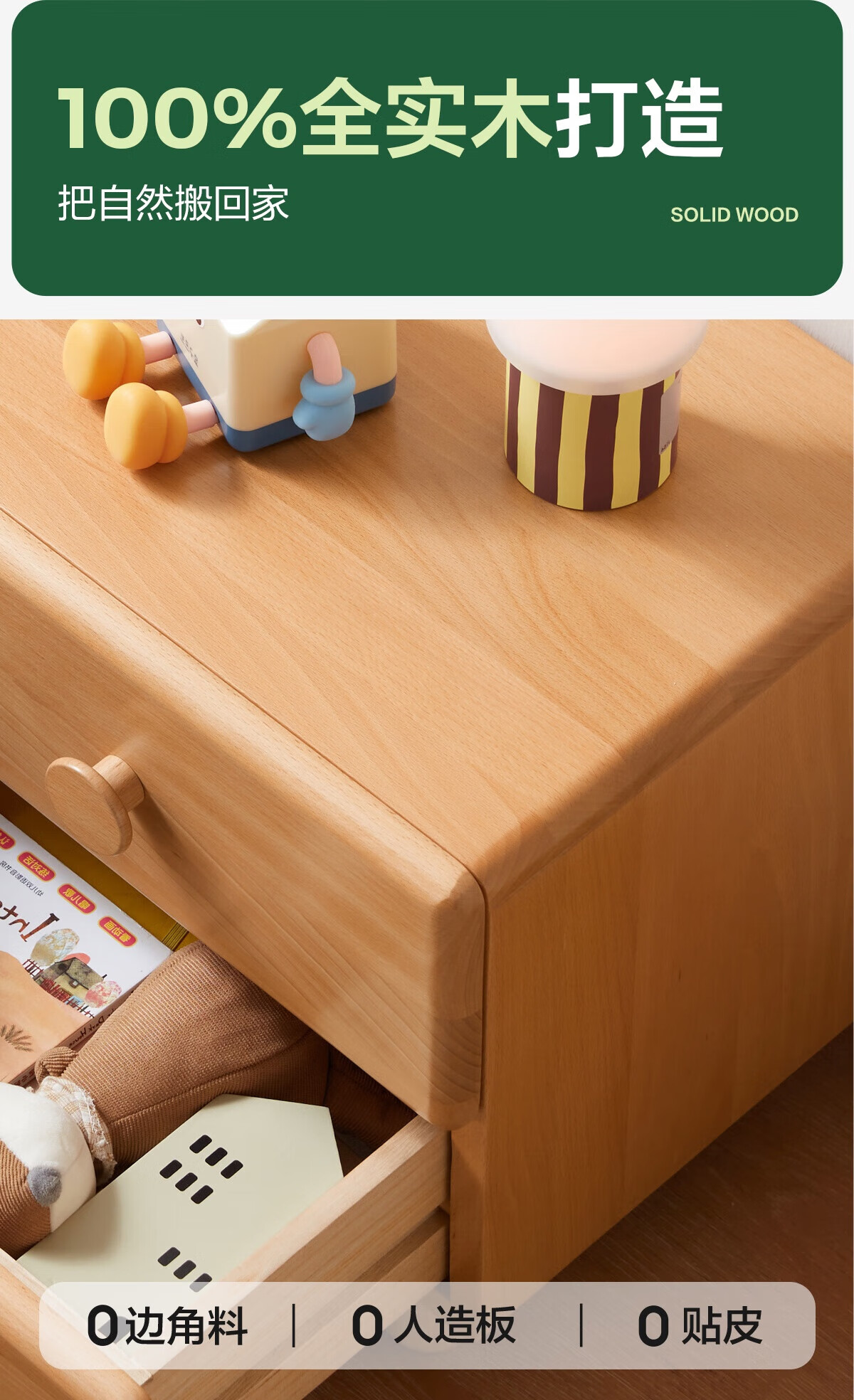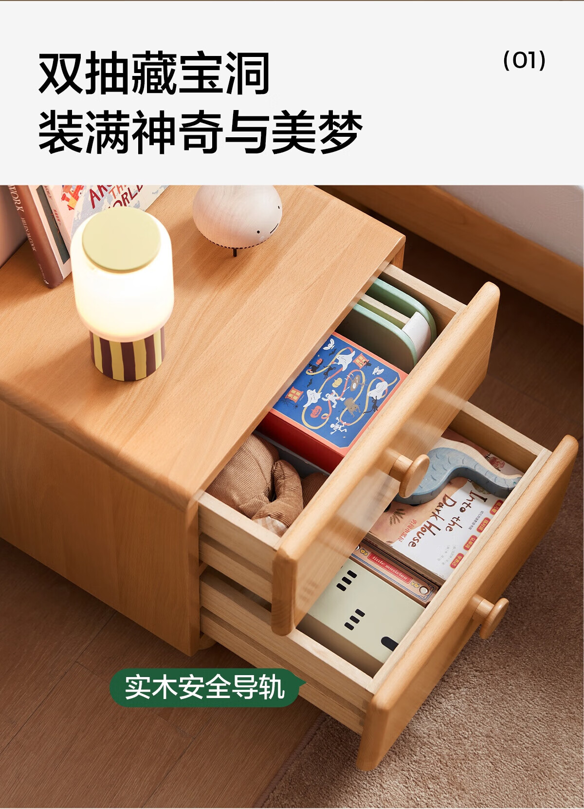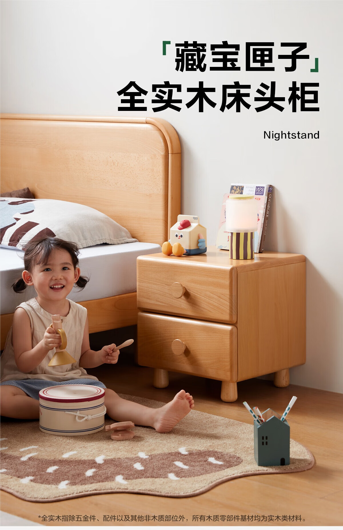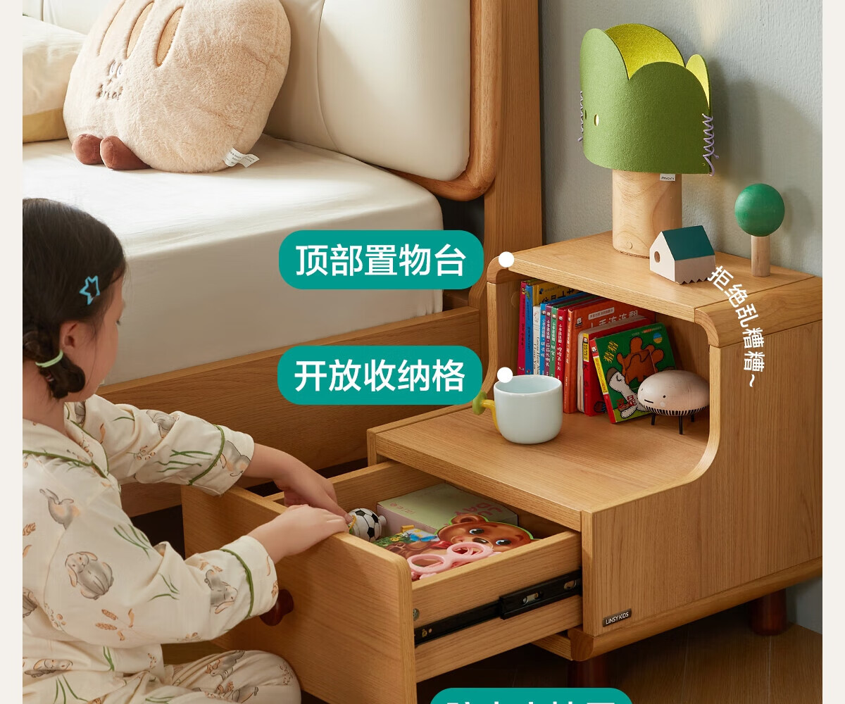 LINSY KIDS儿童床头柜家用卧室2025新款现代简约床头书柜林氏木业RL1B 【原木色】双抽床头柜