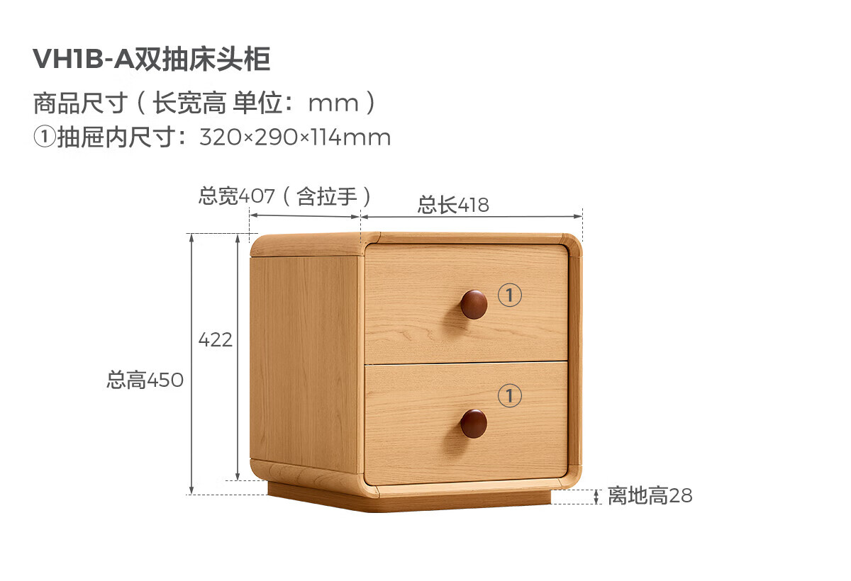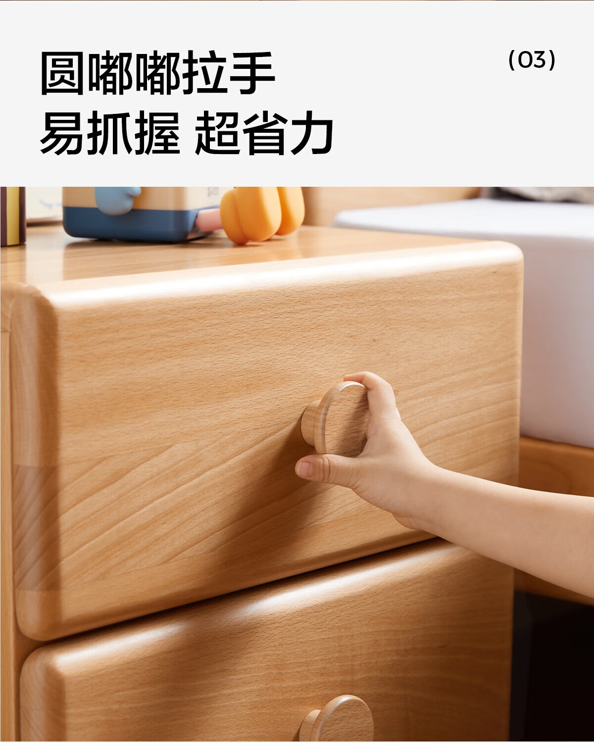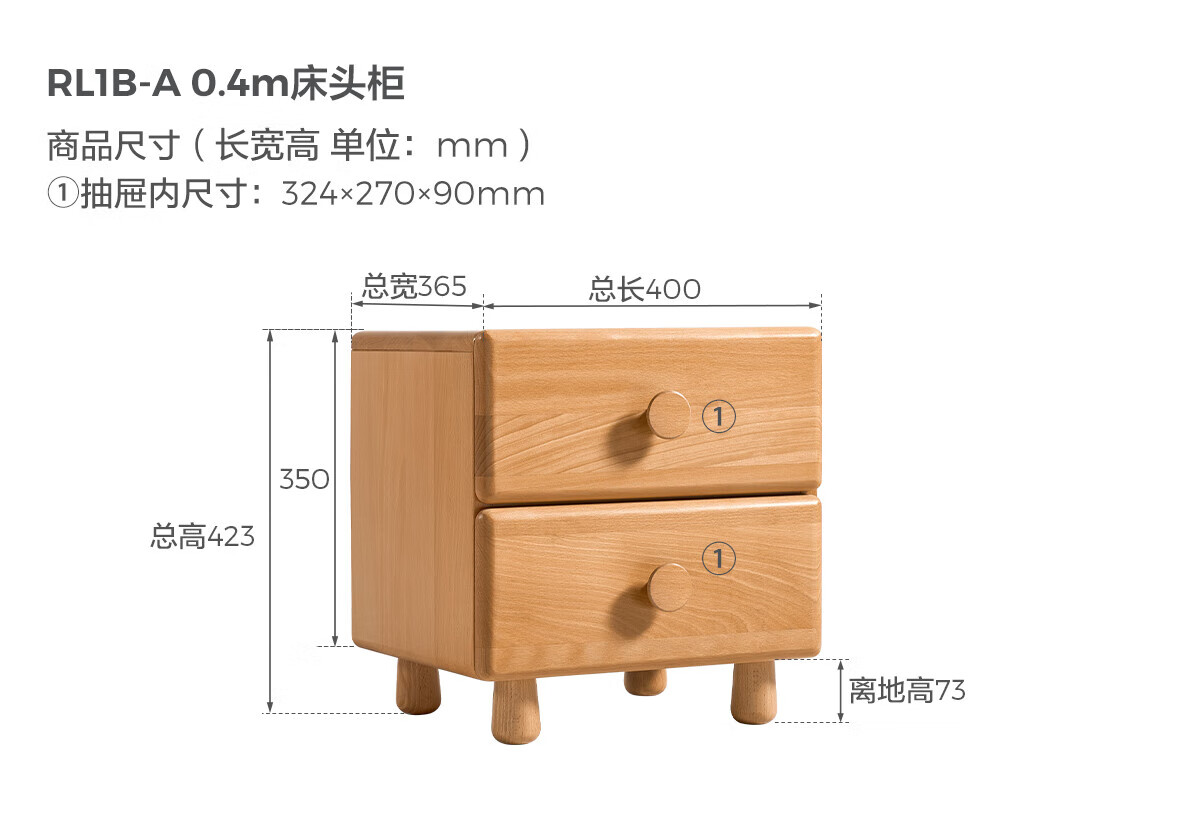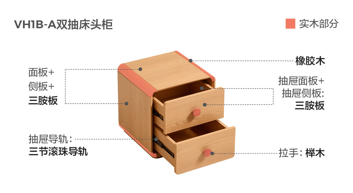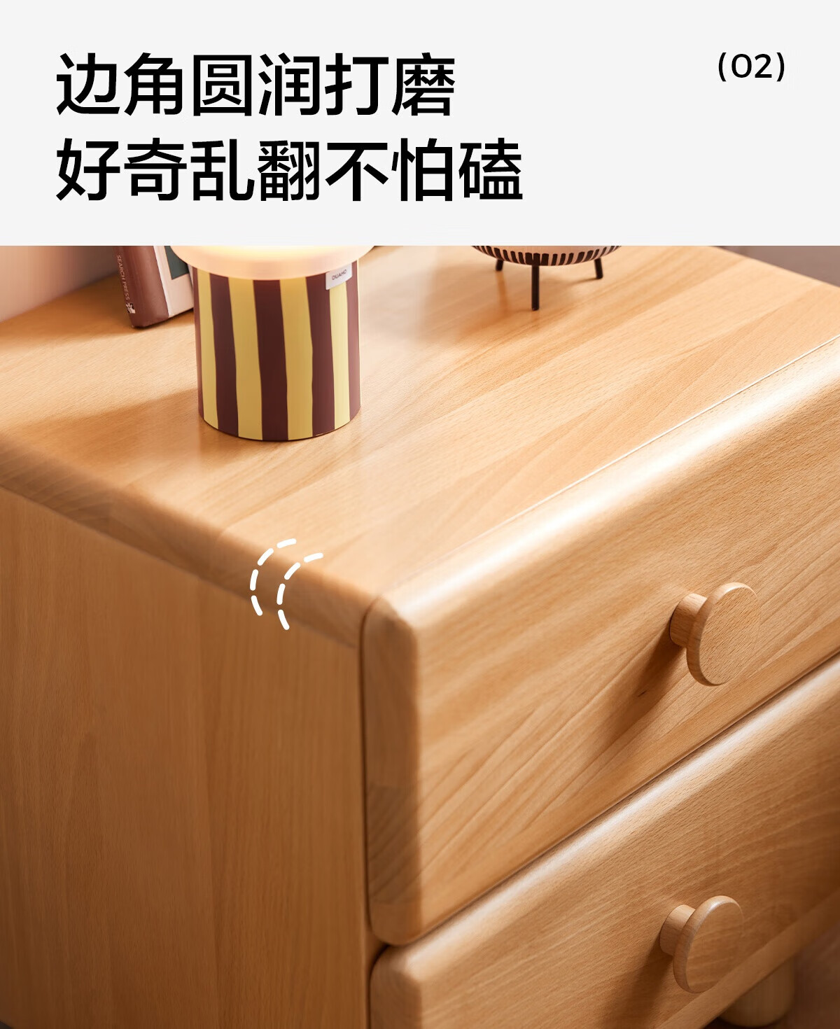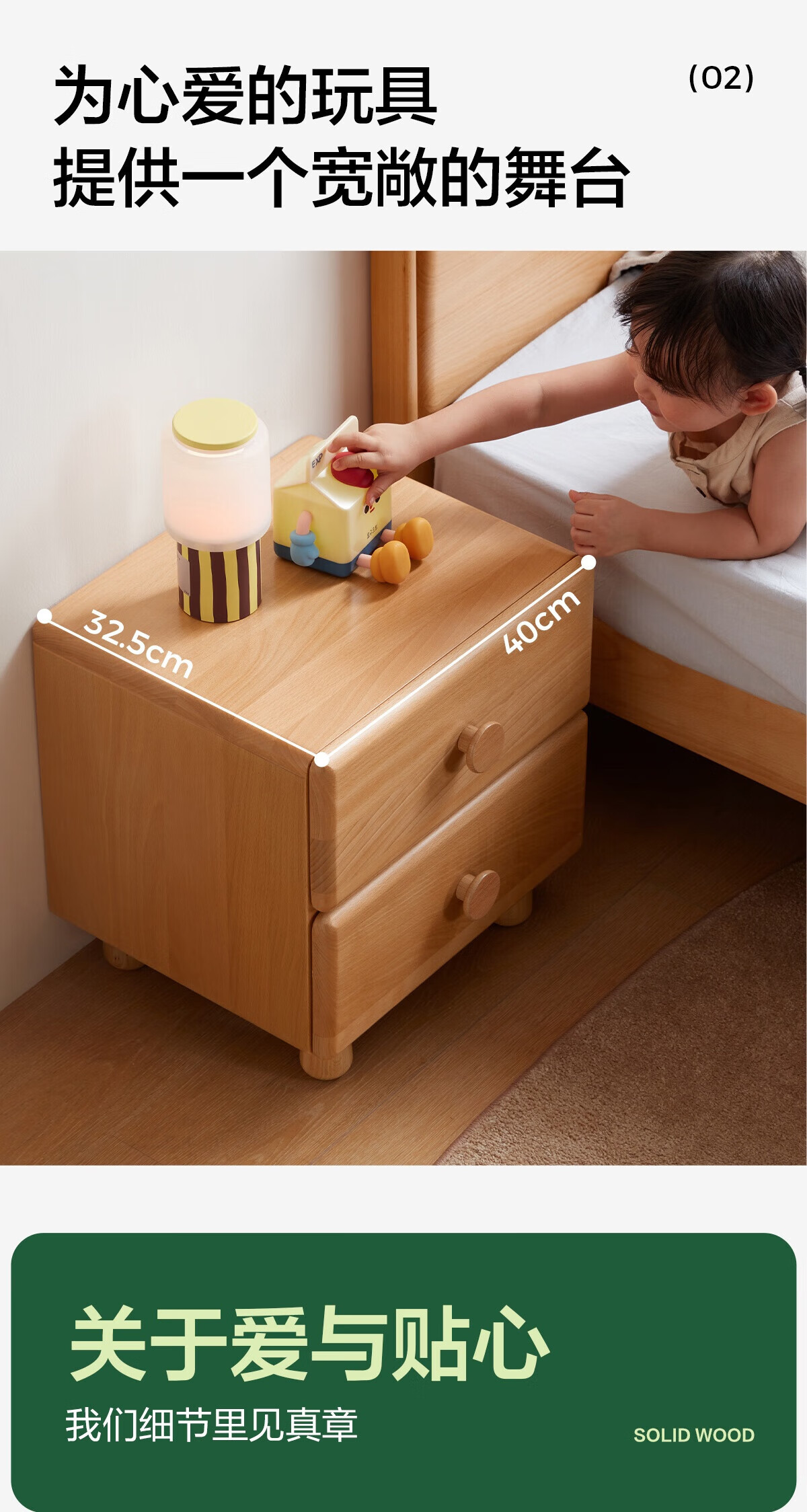 LINSY KIDS儿童床头柜家用卧室2025新款现代简约床头书柜林氏木业RL1B 【原木色】双抽床头柜