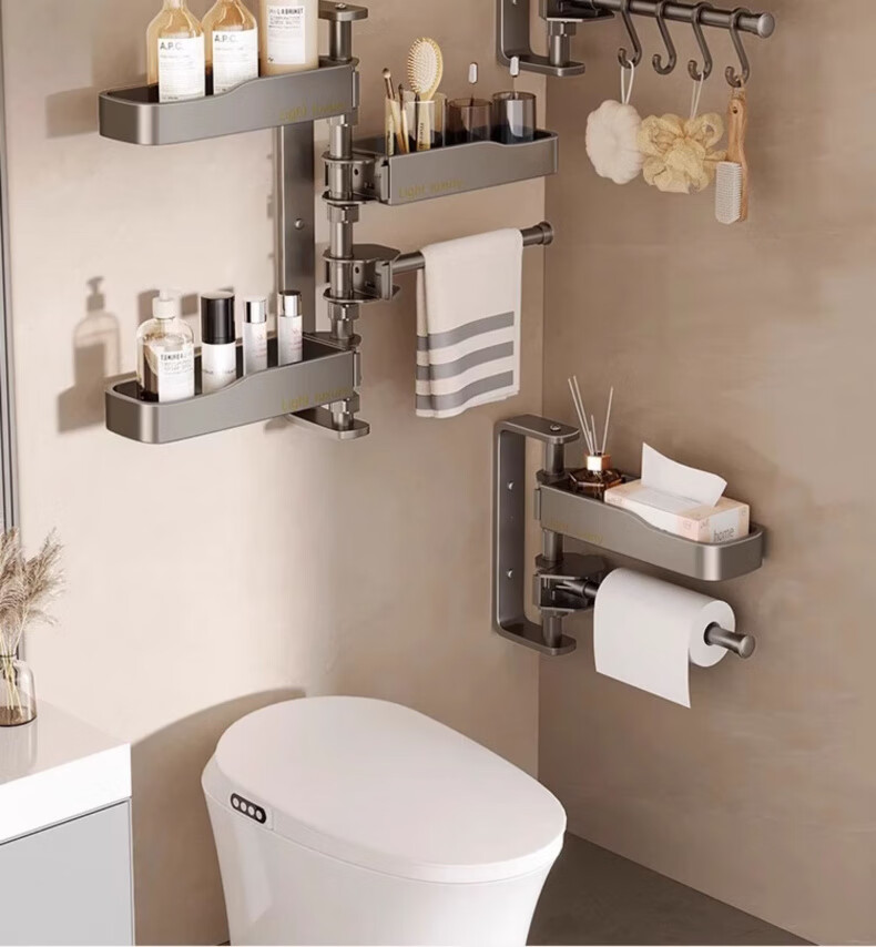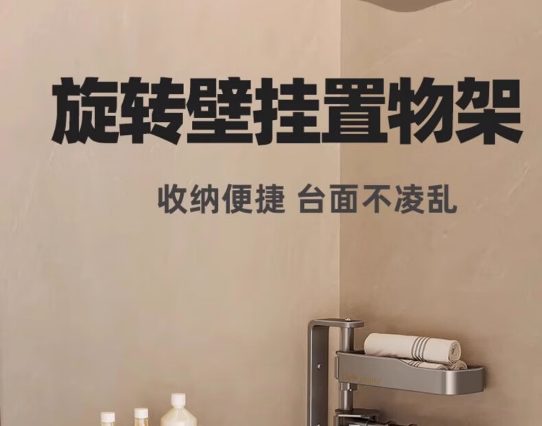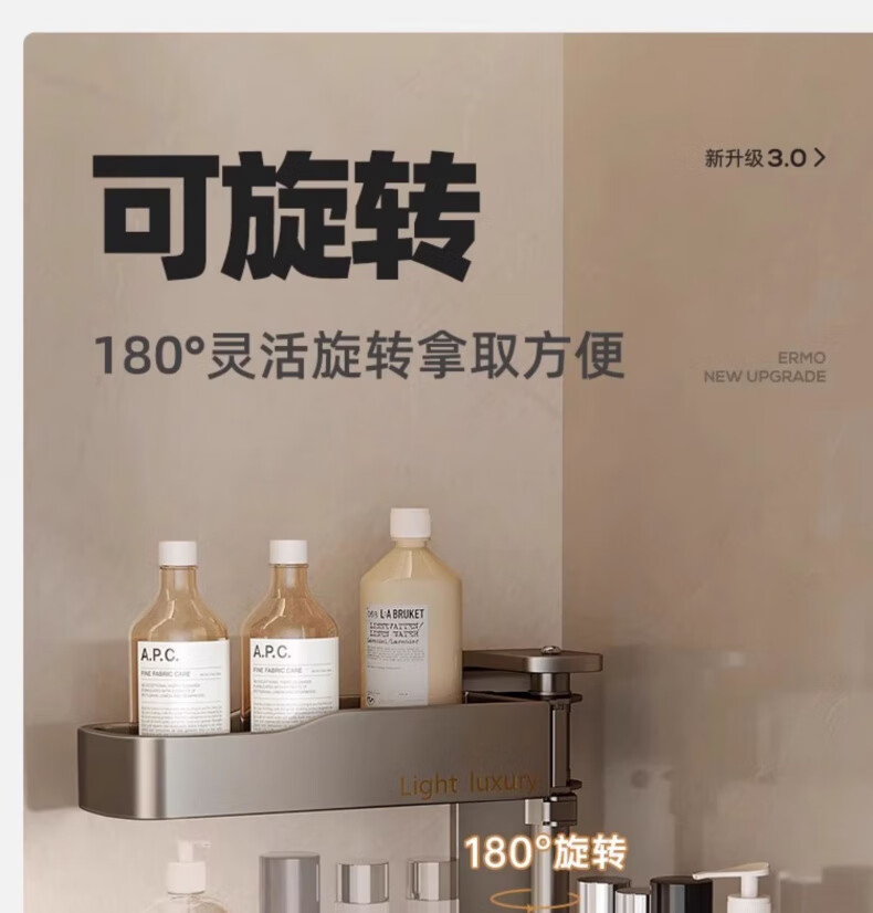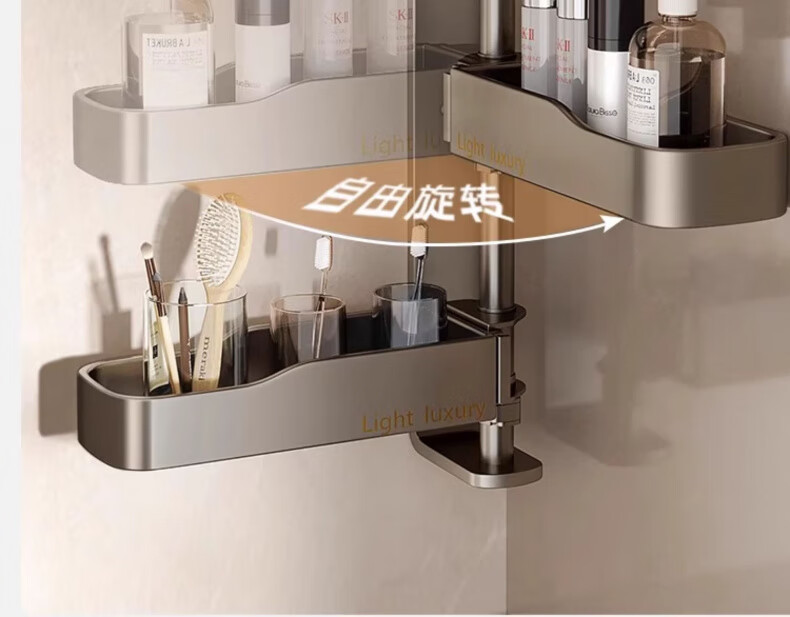 户璃德国旋转卫生间置物架浴室架子免打孔厕所洗漱台三角壁挂洗澡墙上 【瑞舍】灰色条纹【经济款】 100x120厘米【加厚防滑】