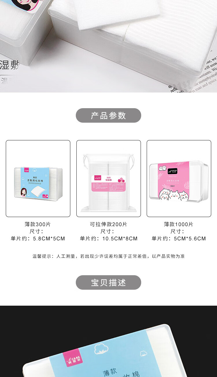 阿嚓热(ACARE)化妆棉C1pq931-易上手卸妆棉片女拍爽肤水薄款湿 薄款 300片 1盒