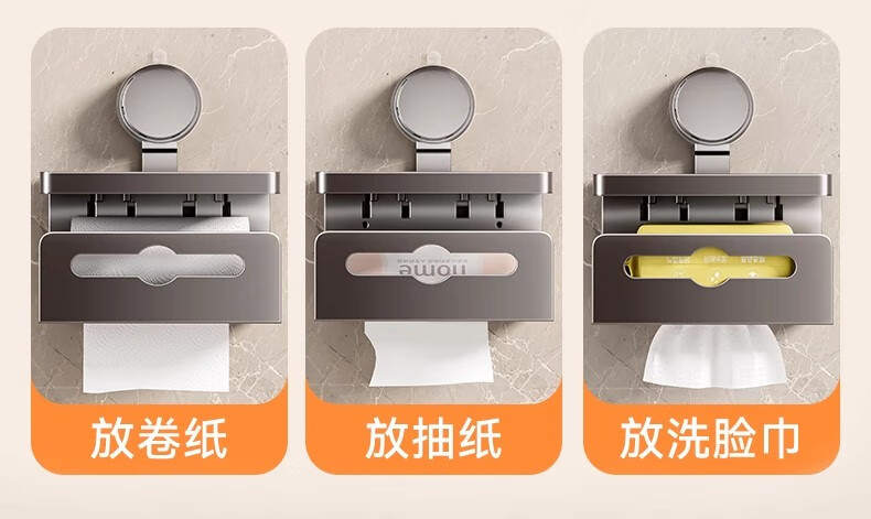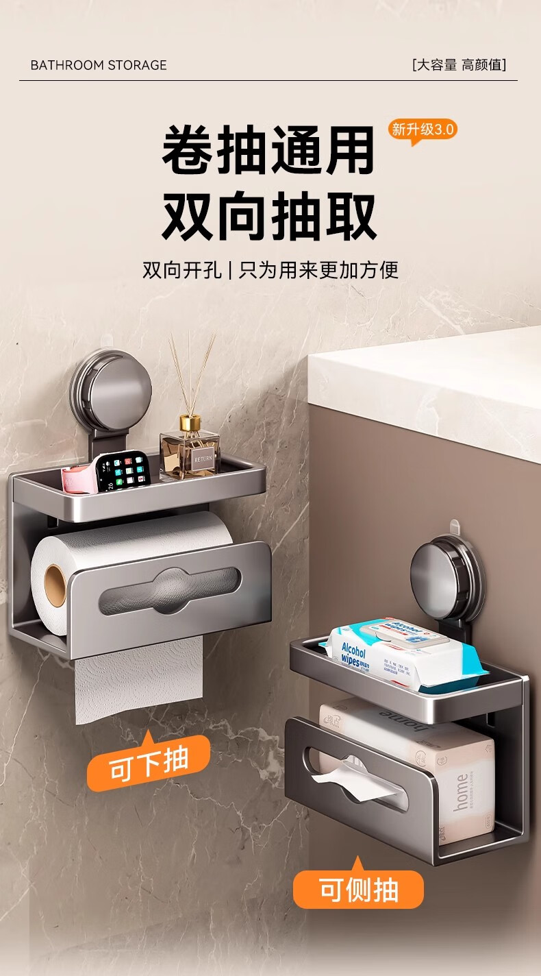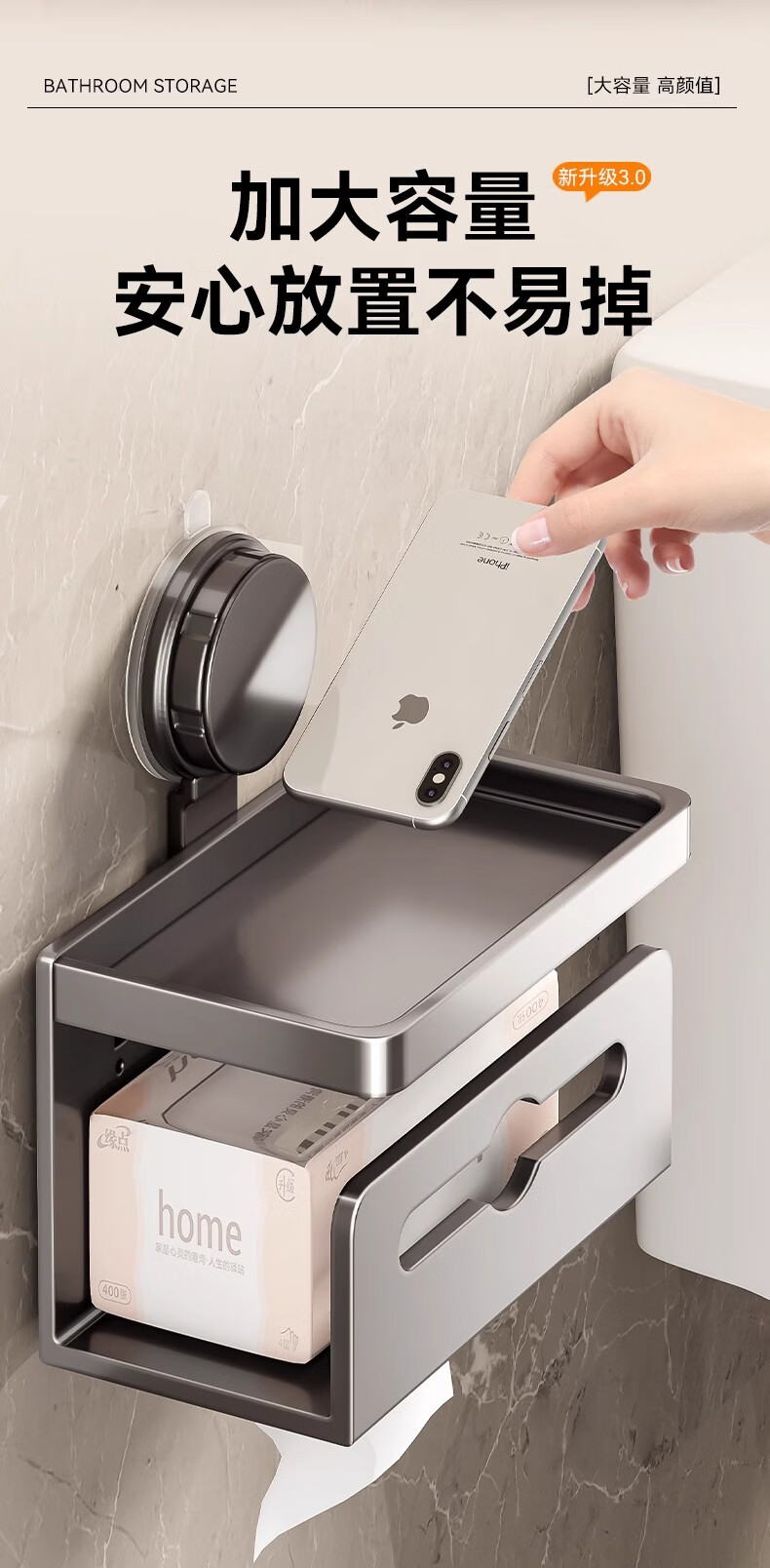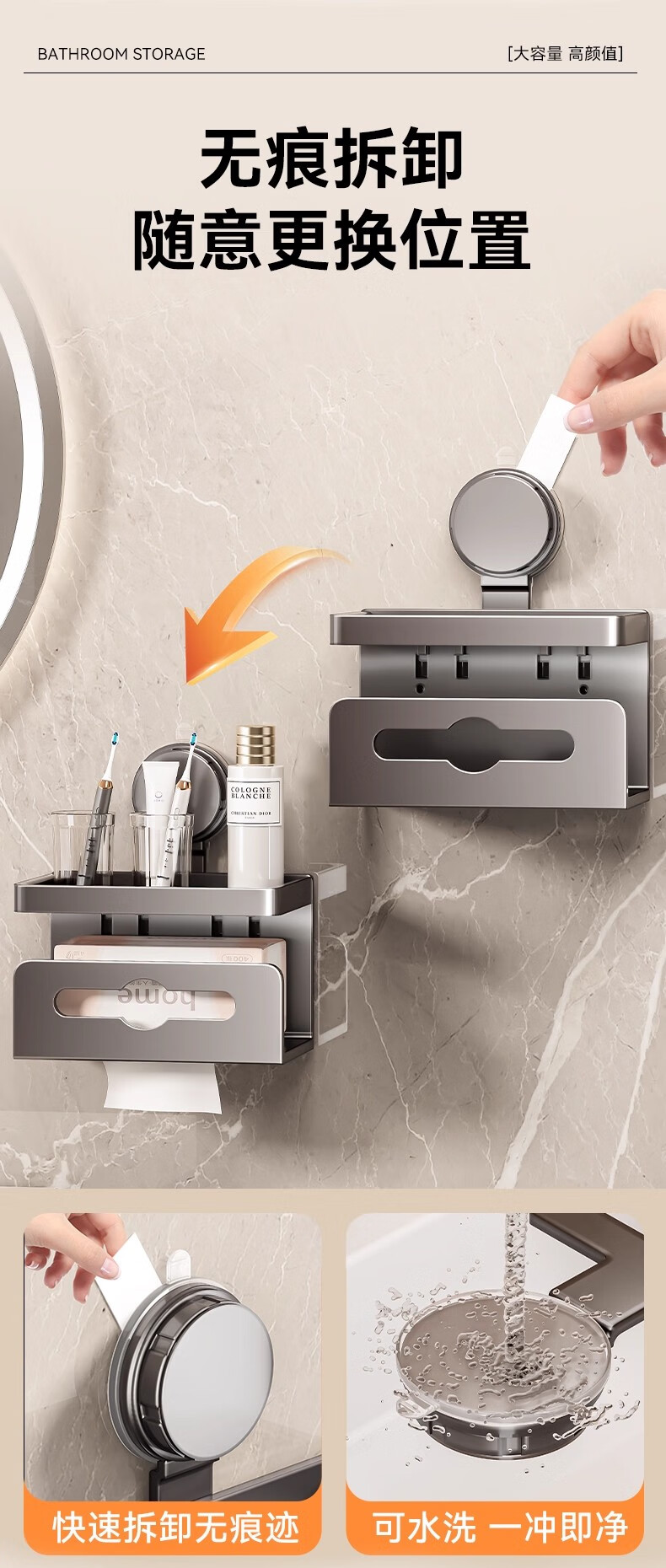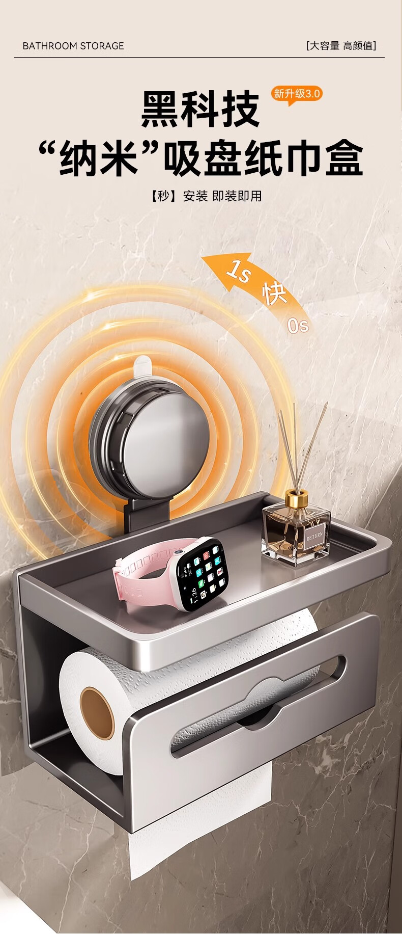 AILUKI日本卫生间吸盘纸巾盒洗手间浴室免打孔厕所卷纸置物架壁挂纸巾盒 枪灰吸盘纸巾盒 秋季上新