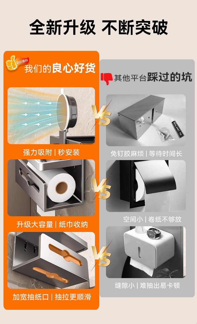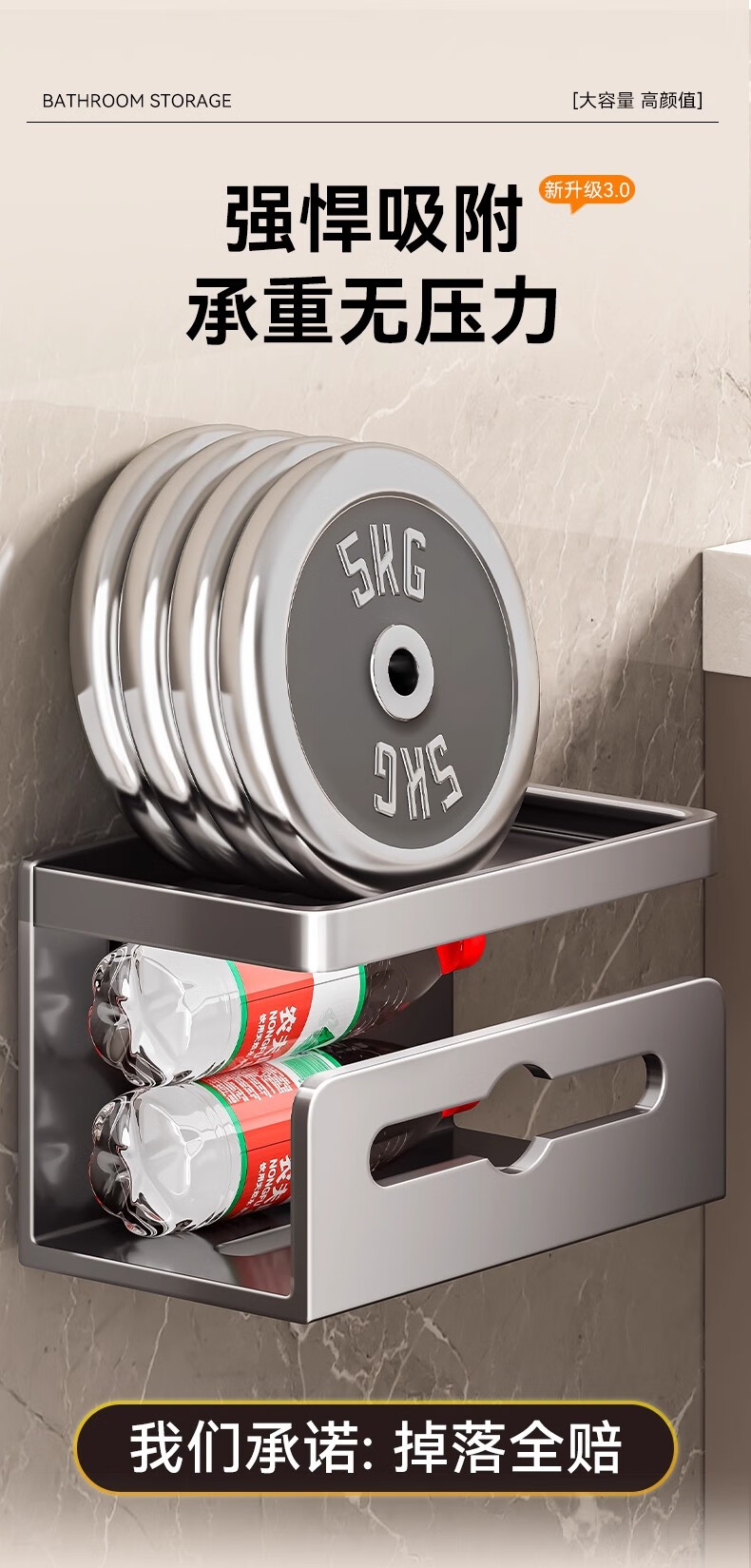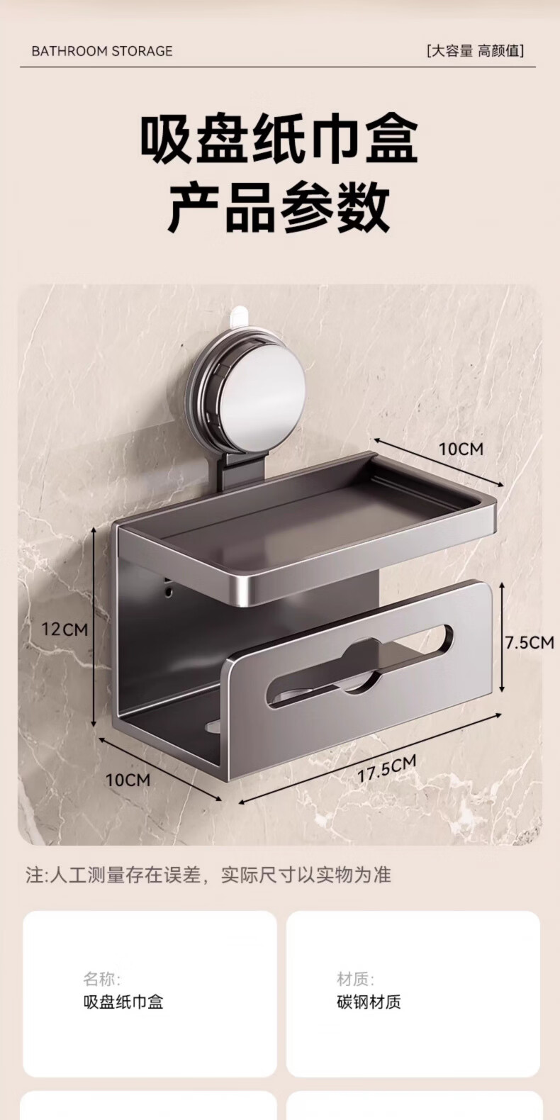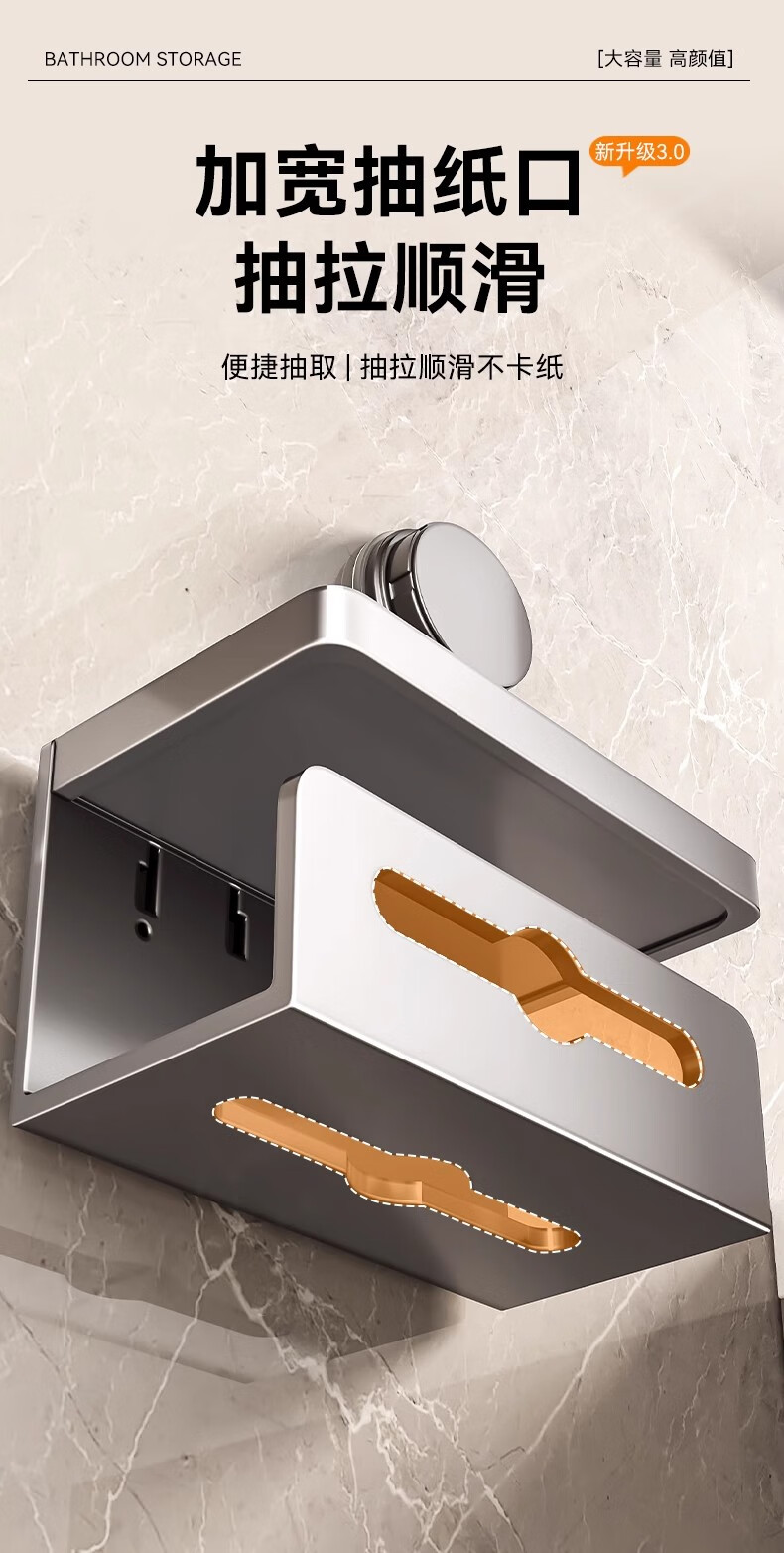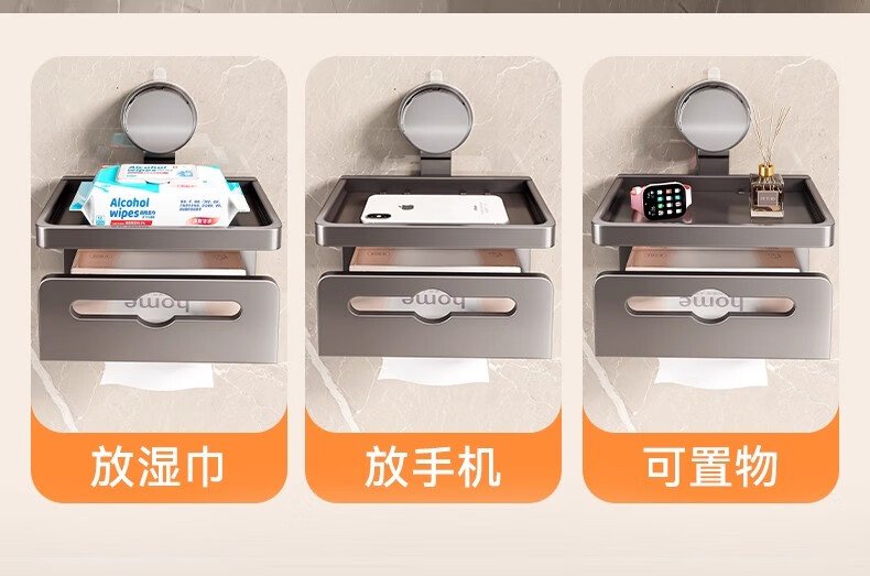 AILUKI日本卫生间吸盘纸巾盒洗手间浴室免打孔厕所卷纸置物架壁挂纸巾盒 枪灰吸盘纸巾盒 秋季上新