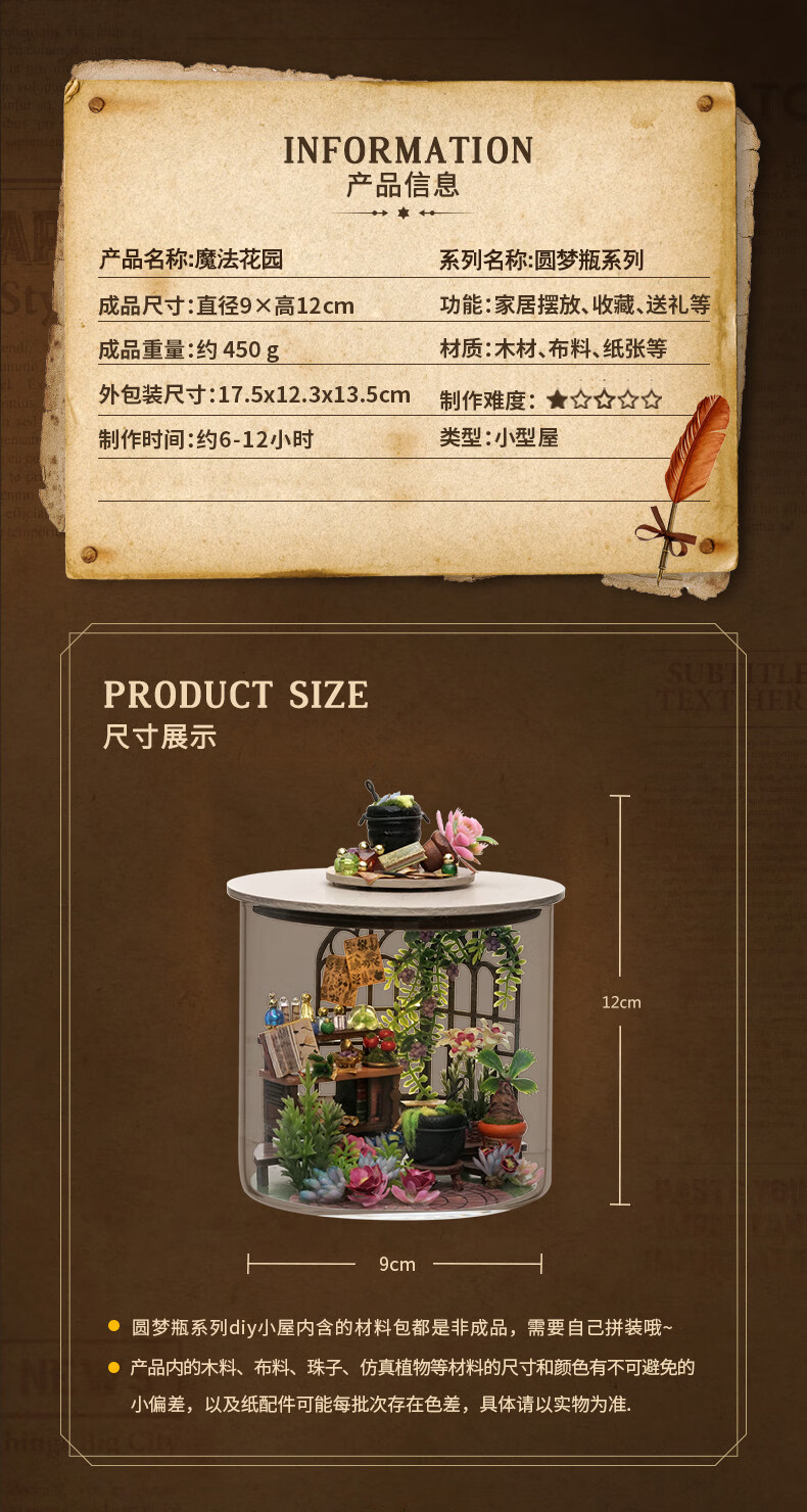 我の屋DIY小屋圆梦瓶哈利魔法花园手工制作玻璃瓶房子玩具生日礼物女友
