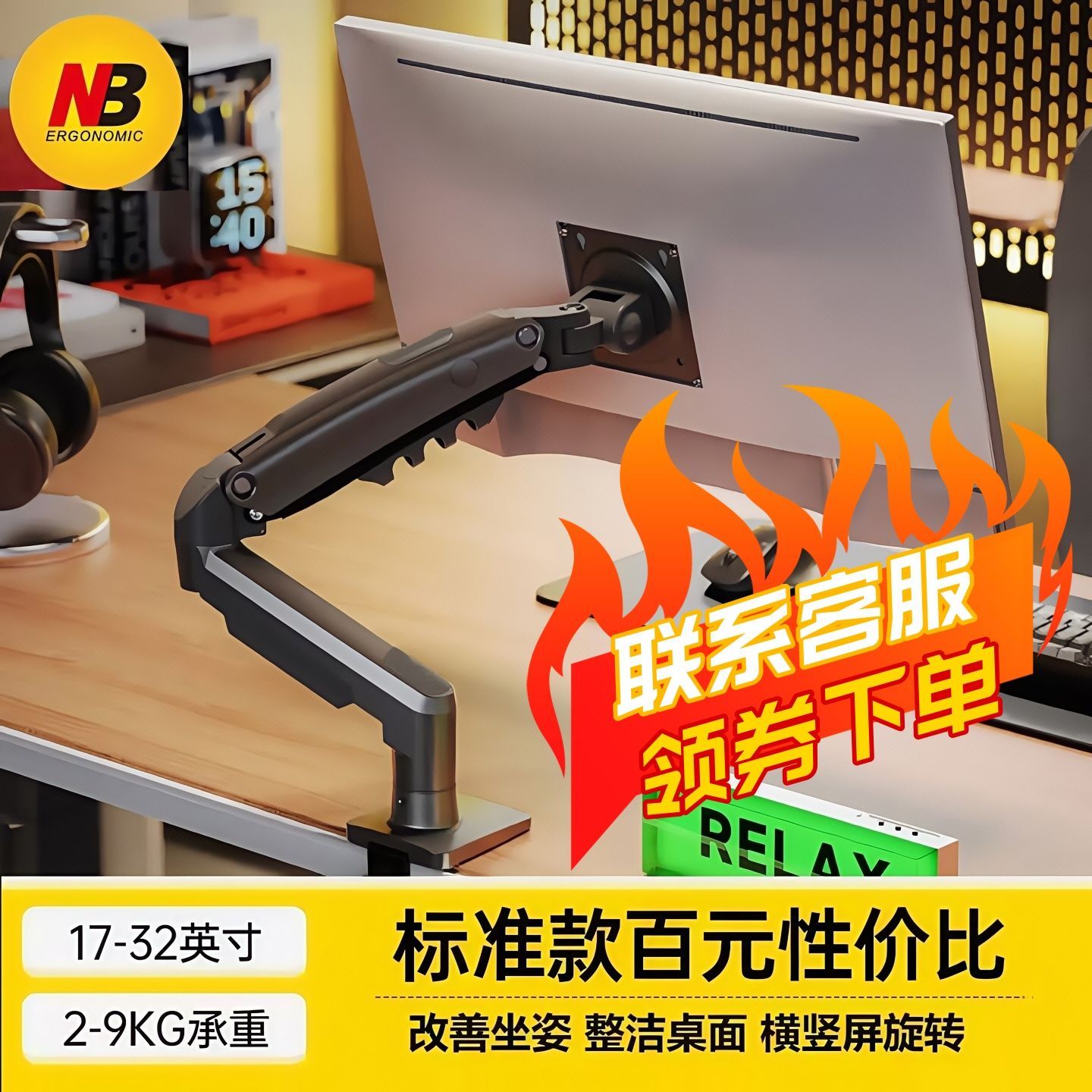 NB F80 显示器电脑支架机械臂免打孔桌面升降气压悬停旋转悬臂