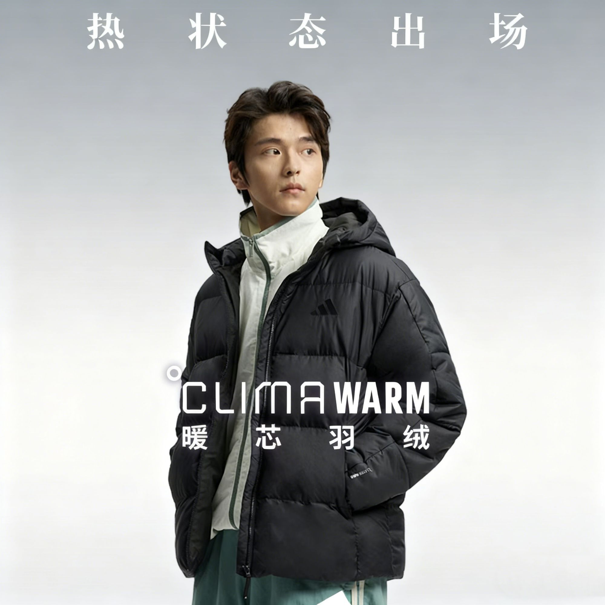 马年新年-adidas阿迪达斯男子户外保暖休闲连帽羽绒服外套KC2478