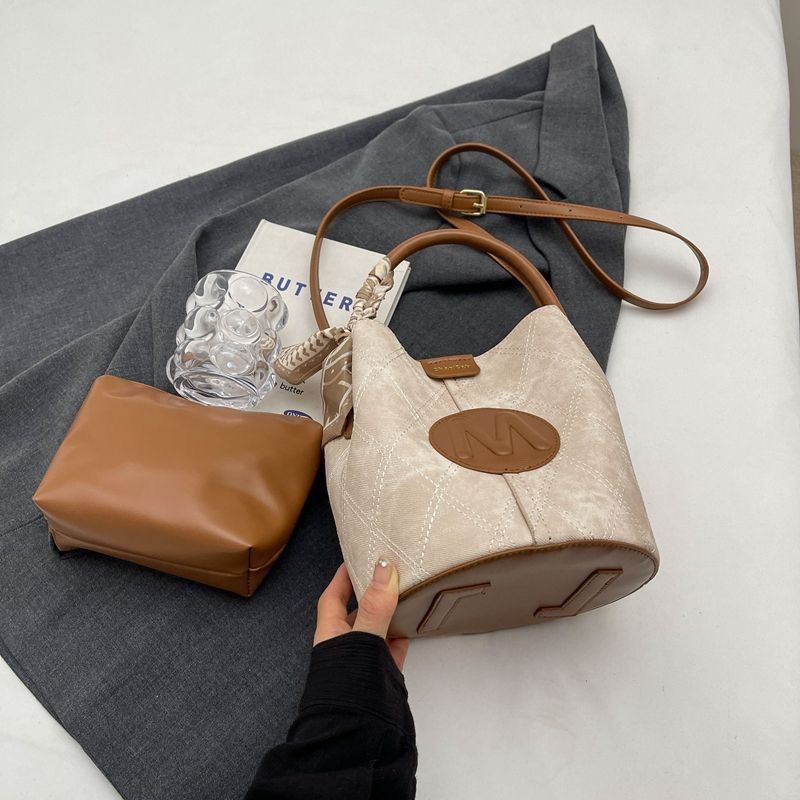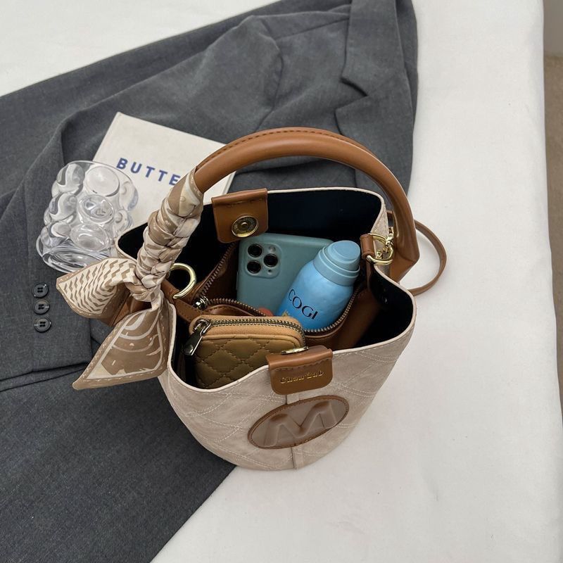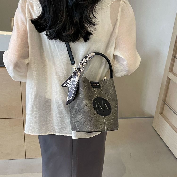 高级流行水桶包包2025新款单肩斜挎包时尚复古手提女包