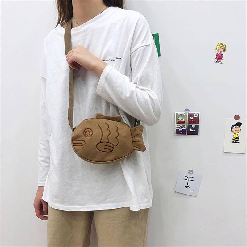 ins潮个性卡通日系鲷鱼烧斜挎包丑萌可爱小包包百搭迷你帆布包女