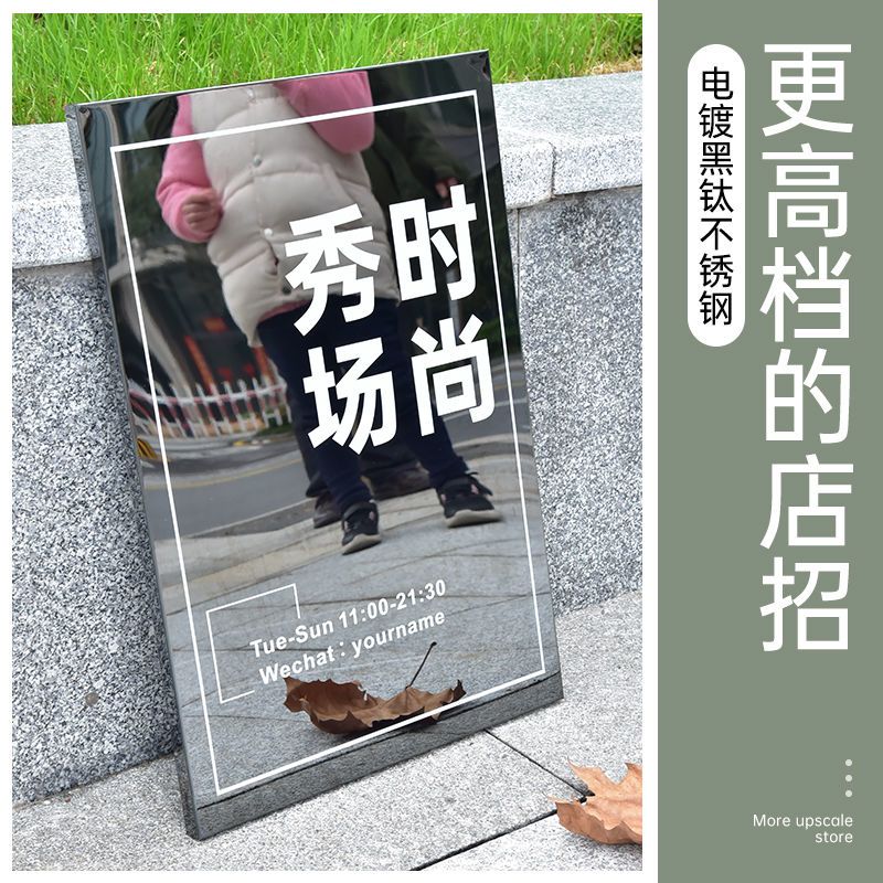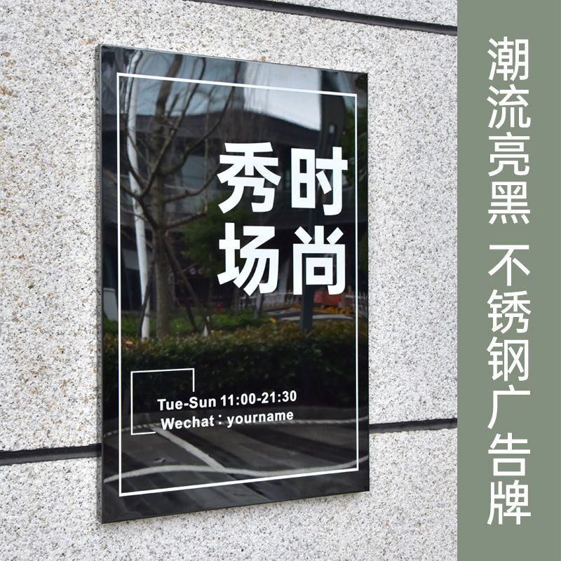 韩国ins风黑钢镜面不锈钢广告牌公司logo门头定制高档服装店招牌