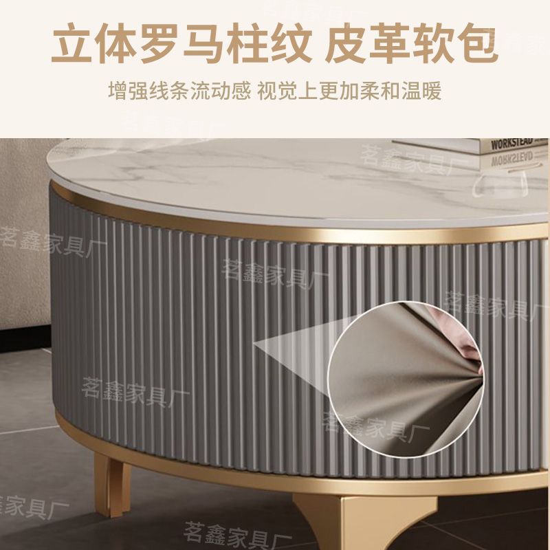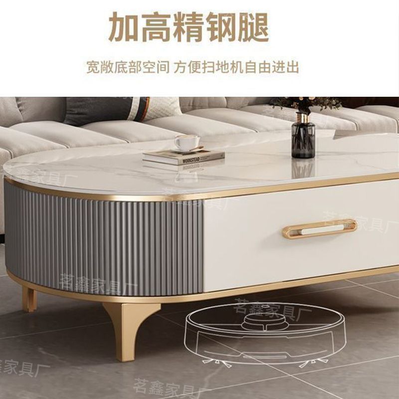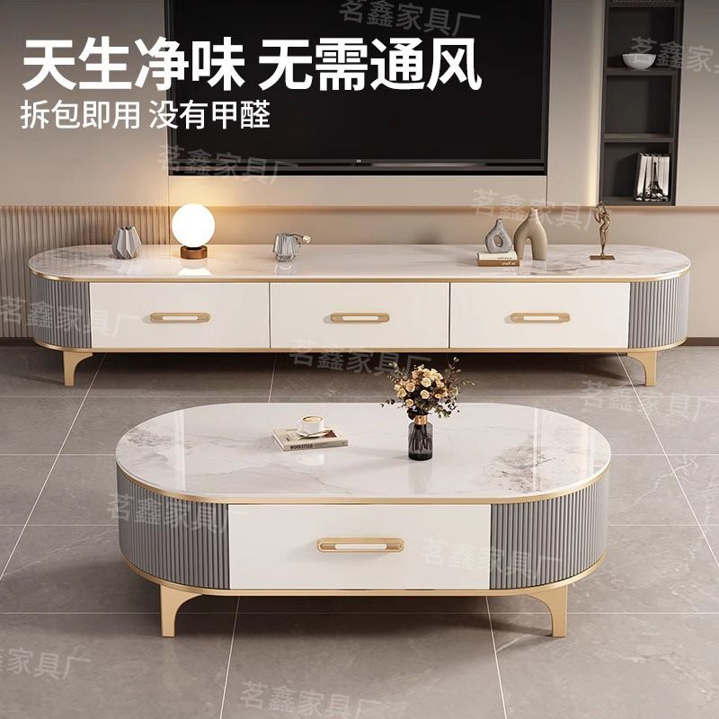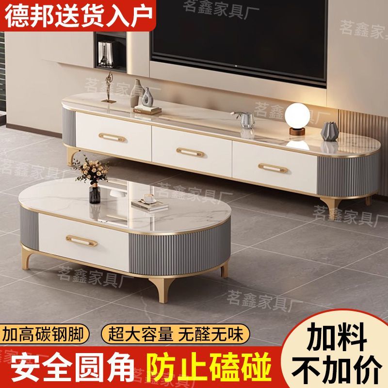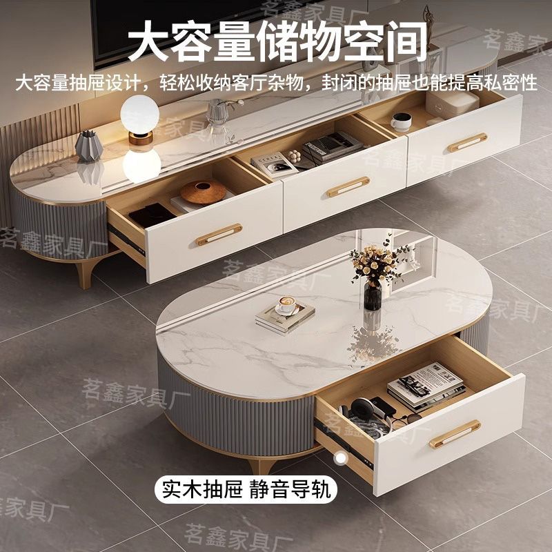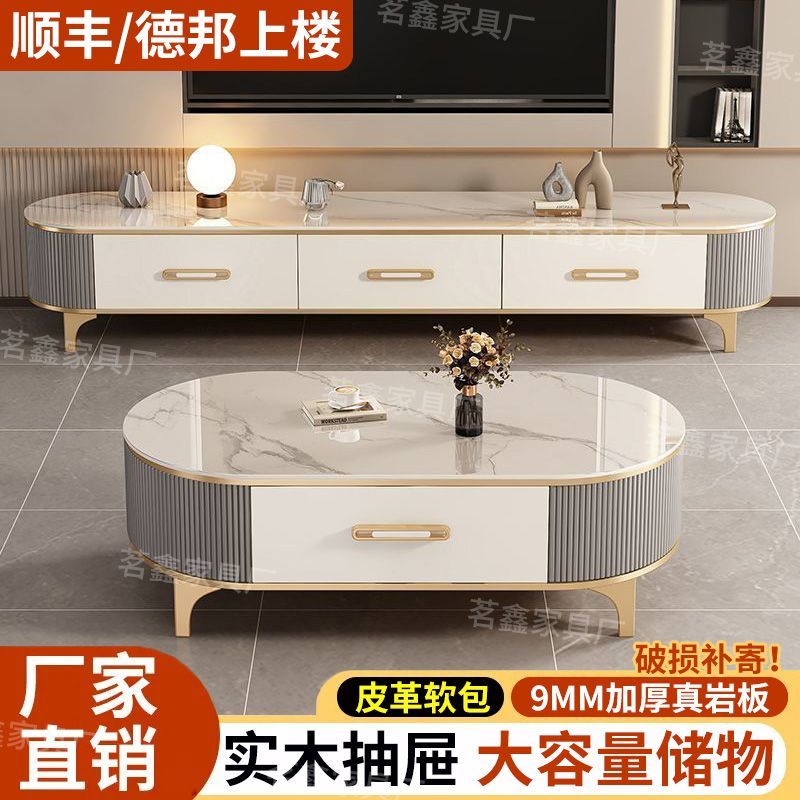 岩板茶几客厅家用实木2025新款小户型茶桌轻奢高级椭圆电视柜组合