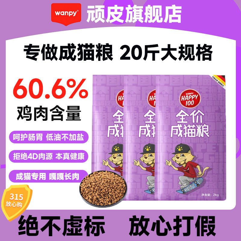 顽皮猫粮20斤成猫专用猫咪猫粮营养均衡德国大袋猫粮蓝猫清仓批发