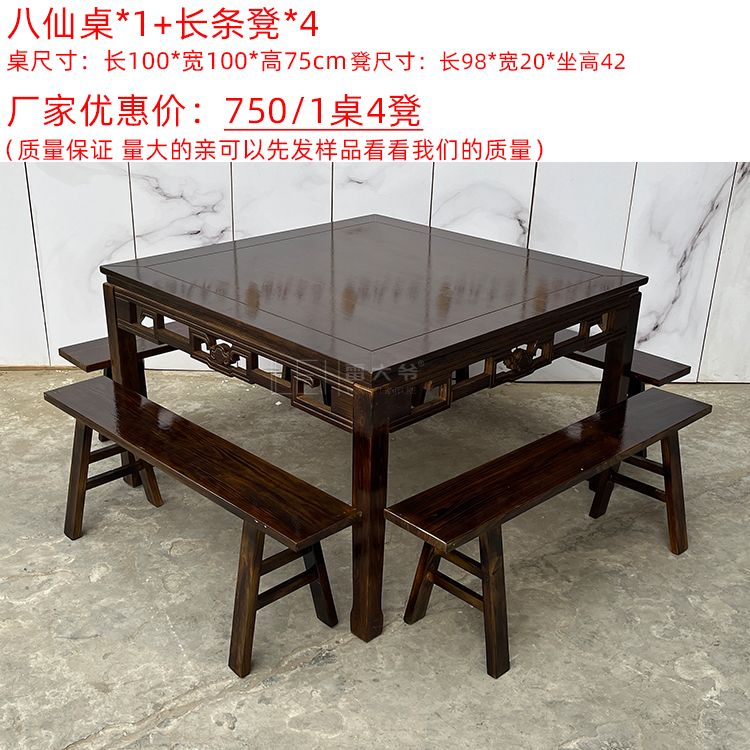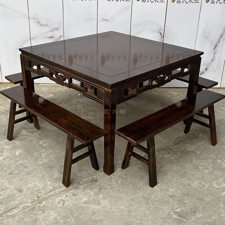 复古风八仙桌子正方形家用仿古四方桌饭店面馆桌椅组合商用桌子