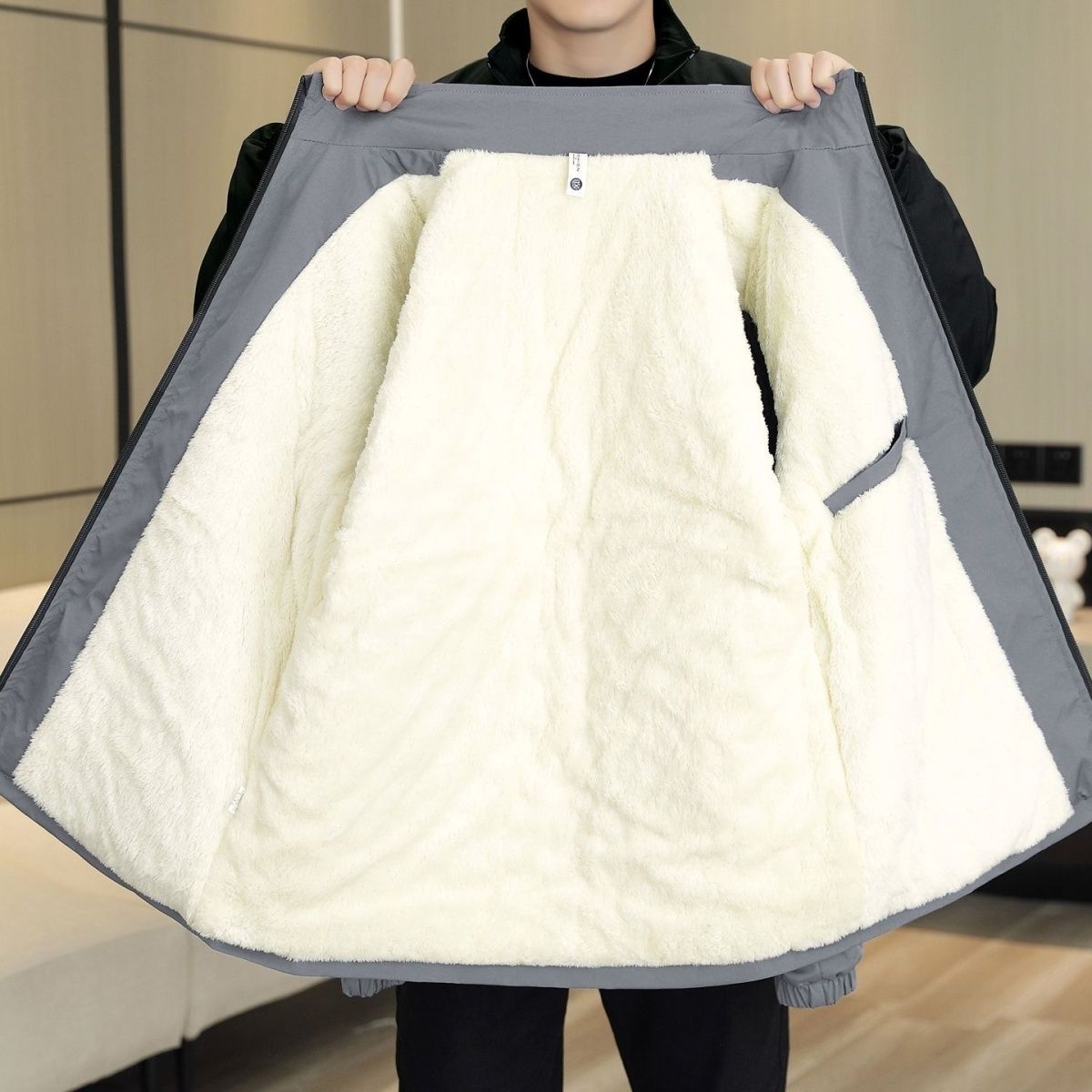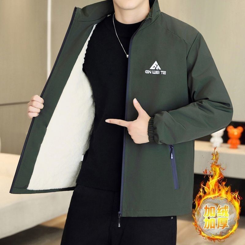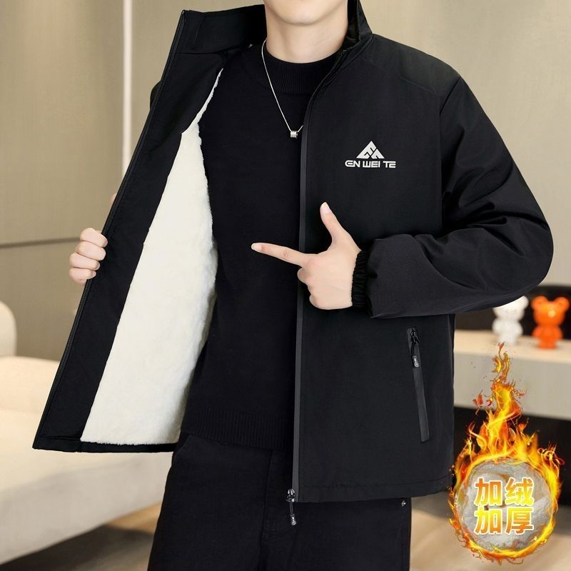 男士冬季棉衣加绒保暖夹克防风冲锋衣外套中青年立领休闲宽松上衣
