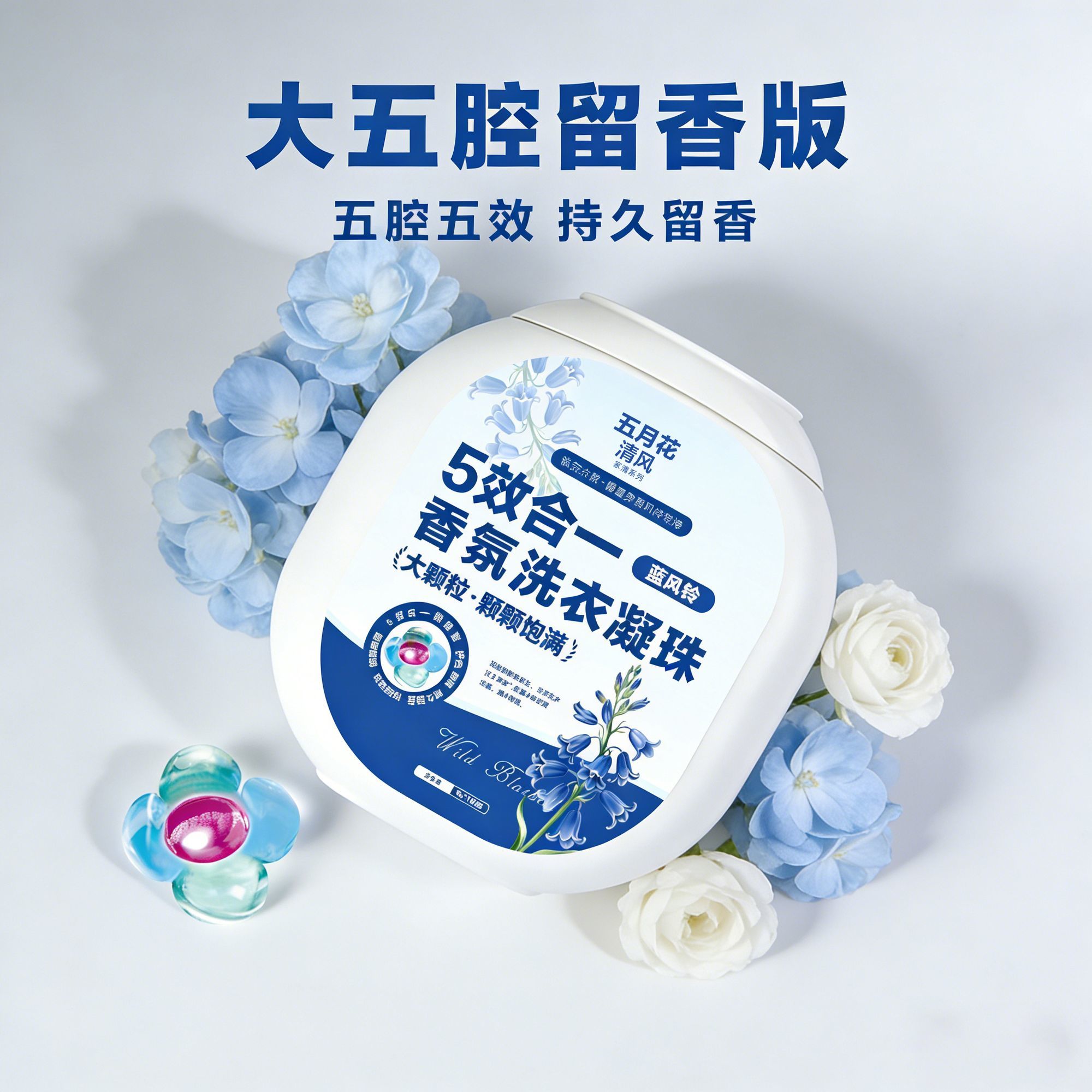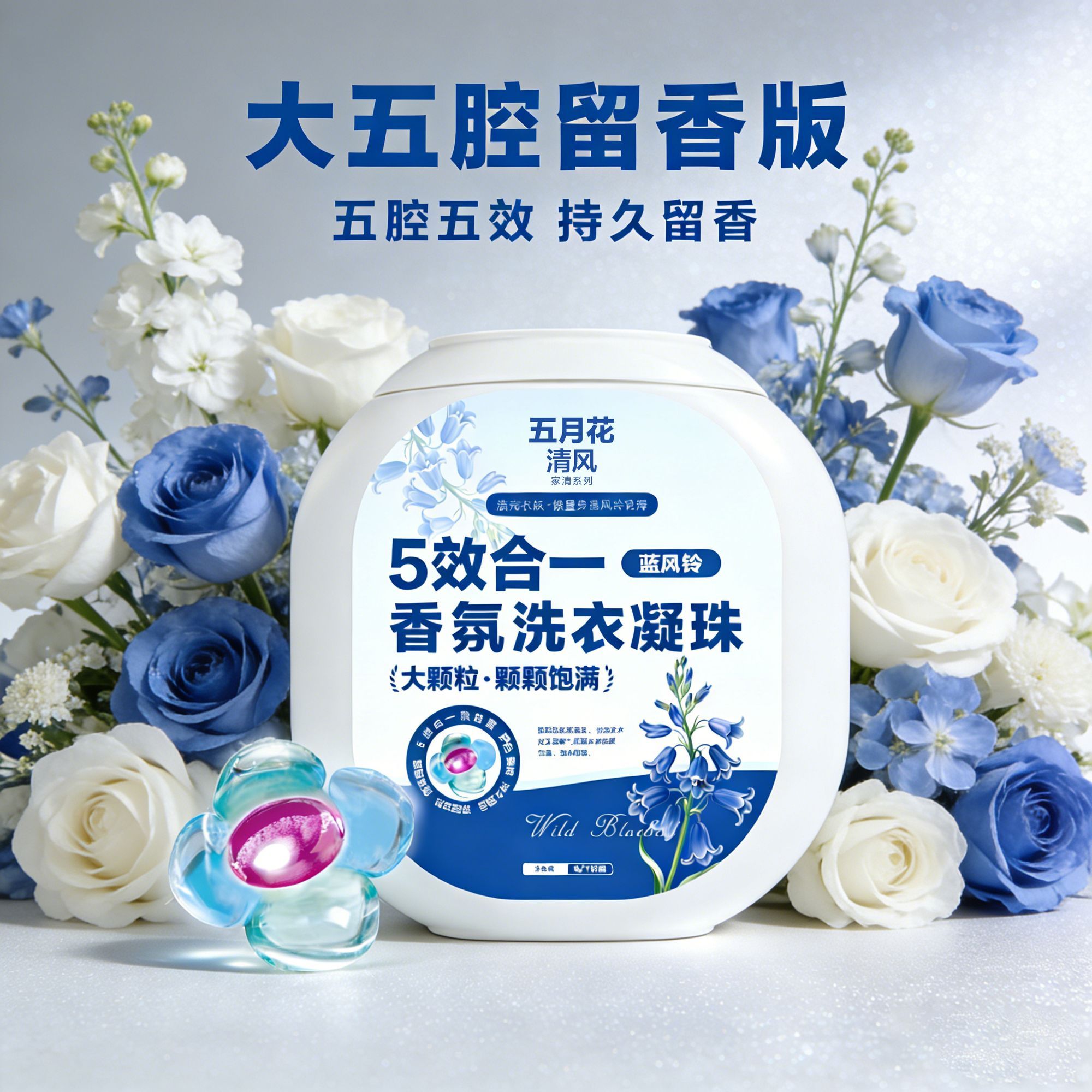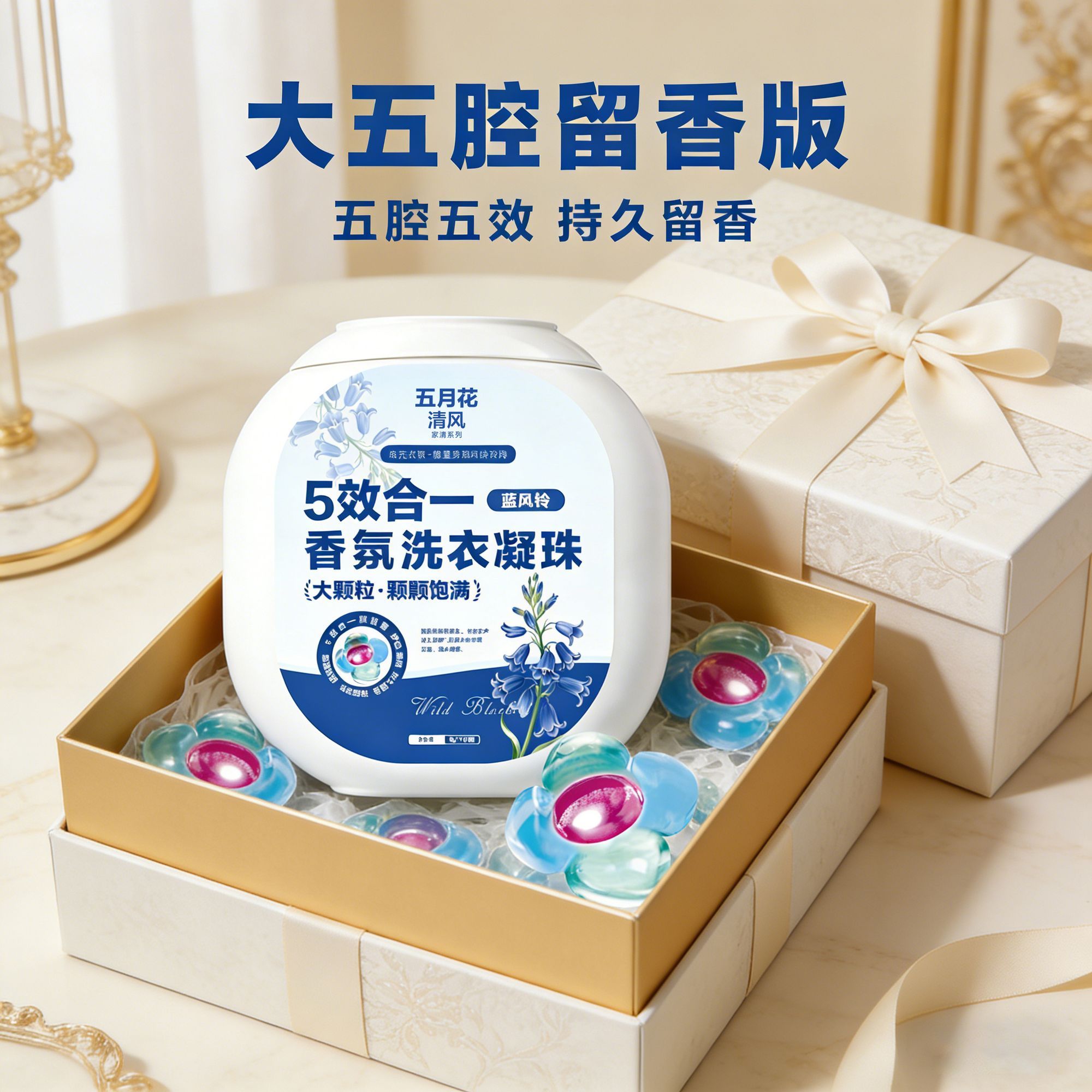 五月花清风【130颗】蓝风铃香水香氛留香去污五合一洗衣凝珠
